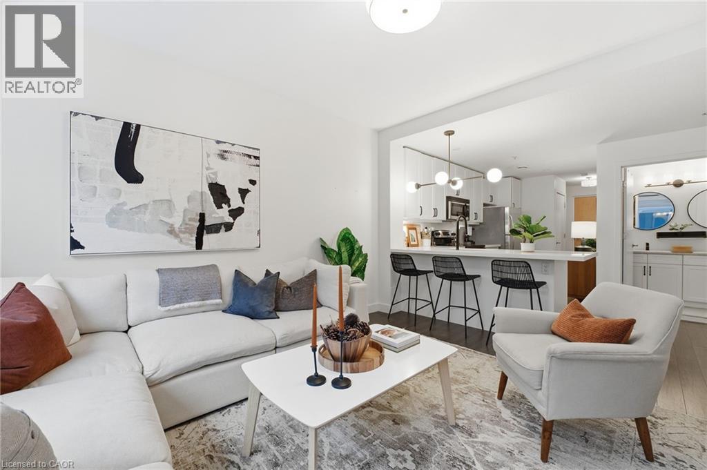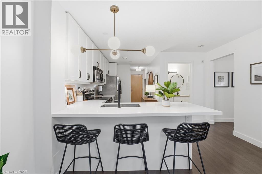Discover the perfect blend of modern sophistication and boutique charm in this oversized 1-bed plus den suite at 188 King St. S. Situated in one of Uptown Waterloo’s most sought-after mid-rise buildings, Unit 210 offers a refreshing alternative to high-density living. This home is designed for those who value space and quiet, featuring a layout optimized for both daily comfort and effortless entertaining. The heart of the home is a stylish, updated kitchen boasting crisp white cabinetry, a functional breakfast bar, and stainless appliances. Natural light pours through the living area, highlighting the contemporary finishes. The primary bedroom is a true standout, offering more square footage than standard condo layouts and a walk-in closet. For those working from home or hosting guests, the versatile den features a pocket door, providing instant privacy without sacrificing floor space. The bathroom serves as a spa-like retreat with a double vanity and sleek fixtures. Life at The Red is defined by effortless access. This unit is uniquely positioned on the same floor as the building’s gym, amenity room, and your private storage locker, eliminating the need for elevators during your daily routine. Parking is equally convenient in the above-ground garage, featuring EV charging access. Step outside and immerse yourself in the vibrant energy of Uptown Waterloo. You are within a 5-minute walk of Vincenzo’s, Mary-Allen Park, and the shops and restaurants Uptown. Also with the LRT stop directly at your doorstep, the entire region is accessible in minutes. Enjoy the peace of a quiet, well-insulated building with the luxury of being steps away from dining, summer pop-up markets, local events, and boutique shopping. Experience the quiet community feel of a mid-rise building with all the perks of a luxury urban residence. Most furnishings can also be included, making this a great option for someone looking for a fresh start. Schedule your private viewing today. (id:4555)