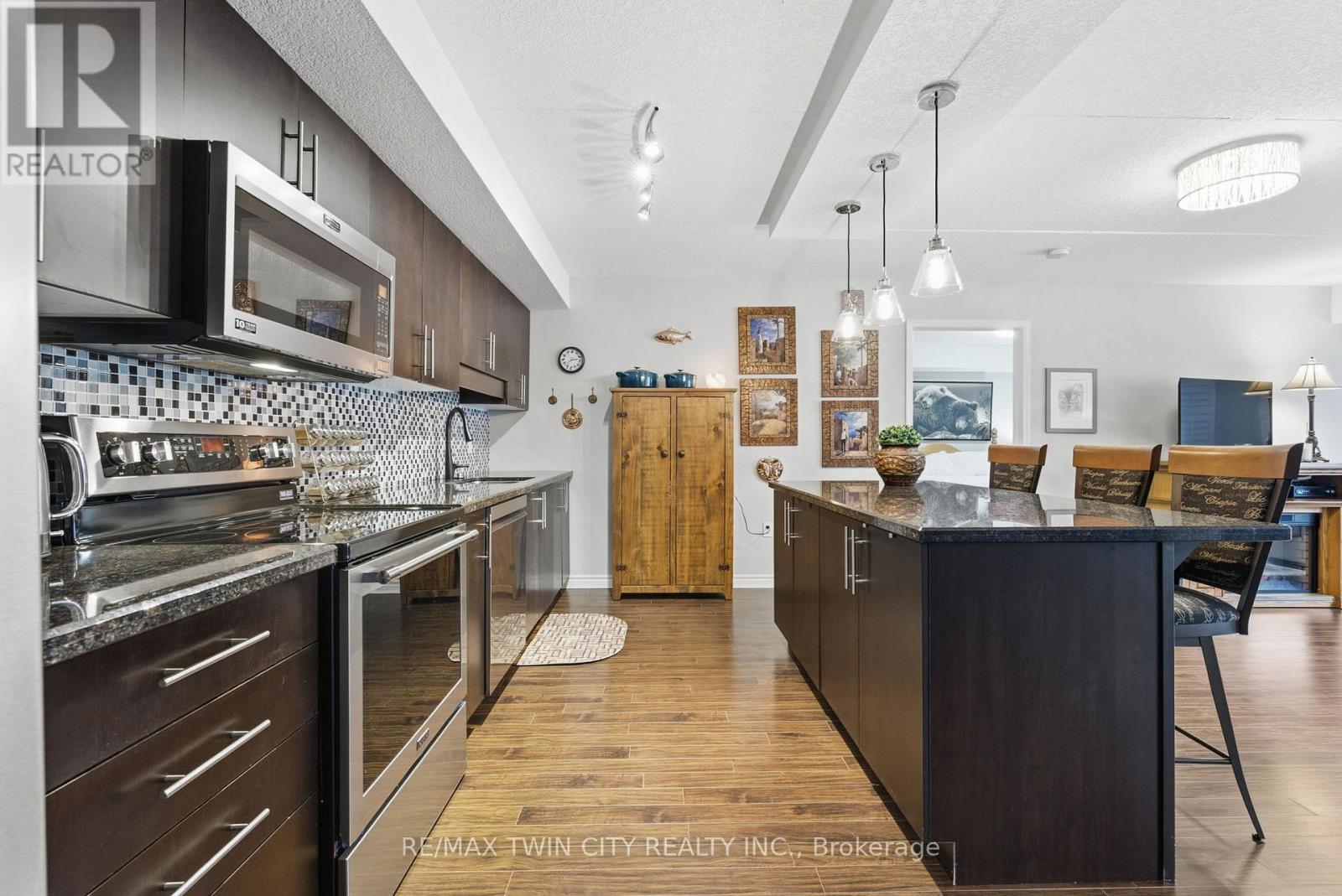 Welcome to Reflections, where elevated design and effortless living come together in this beautifully curated 2-bedroom, 2-bathroom residence. Featuring a spacious open-concept layout, this home is thoughtfully designed for both elegant entertaining and comfortable everyday living. The chef-inspired kitchen showcases granite countertops, upgraded stainless steel appliances, and a large island with seating - a striking focal point and the perfect space to gather. The living and dining areas flow seamlessly and extend onto a private 17' balcony, ideal for relaxing mornings or evening escapes. The primary suite offers a serene retreat with an ensuite bath, walk-in closet, and an additional closet offering ample storage. A second generously sized bedroom provides versatility for guests, family, or a sophisticated home office. Additional highlights include in-suite laundry, custom California shutters, a storage locker, and the rare convenience of two parking spaces - one underground and one surface. Residents enjoy access to premium amenities including a resident lounge, theatre room, and bike storage. An exceptional opportunity to own a stylish and well-appointed home in one of the area's most sought-after buildings (id:4555)
