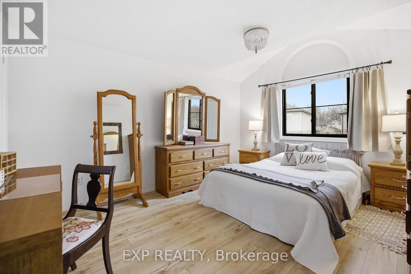 Welcome to 733 Breakwater Cres, a beautifully updated family home tucked into one of Waterloo's most connected and community-focused neighbourhoods. Offering just over 1,600 sq ft of thoughtfully designed living space, a finished basement, and a distinctive exterior, this home blends style, comfort, and functionality. From the moment you arrive, you'll notice that no other home in the subdivision looks quite like this one, thanks to the custom front entrance and inviting porch. In the spring, the porch sits beneath a fragrant canopy of lilacs, creating the perfect place to sit and enjoy the neighbourhood. The landscaped gardens are designed for easy maintenance with Boston ivy and flowering periwinkle ground cover, while the backyard's yellow trumpet creeper often attracts hummingbirds. Inside, the home welcomes you with soaring ceilings at the front entrance and warm natural light throughout. Morning sun fills the kitchen and living room, highlighting the beautifully updated farmhouse-inspired kitchen (2017) with quartz countertops, furniture-style cabinetry with crown moulding, an apron sink, double oven, and hidden range hood. The raised west-facing family room is the perfect place to relax while enjoying sunset views. Upstairs you'll find three comfortable bedrooms and an updated main bathroom with a practical low-profile tub ideal for kids or pets. The finished basement features a theatre room with surround sound and sound-absorbing panels, perfect for movie nights. Updates include roof (2019), black-framed windows (2024), heat pump (2025), dishwasher (2021), and oven (2023). Poured concrete patios at the front and back add outdoor living space. Located steps from walking and biking trails connecting to RIM Park, this neighbourhood is known for its strong community with a neighbourhood garden, winter skating rink, and seasonal gatherings. With a dbl car garage, modern finishes, and a welcoming community, 733 Breakwater Cres is a place you'll love to call home. (id:4555)