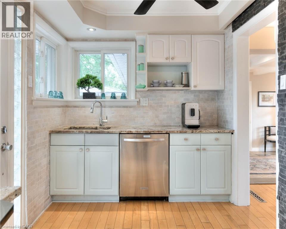 Perfect in every season this stylish bungalow on a .40-acre lot embodies mid-century modern charm. Professionally landscaped the backyard feels like a secluded private country retreat yet in the heart of the city. The outdoor space is designed for entertaining, with newer fencing, a three-tier deck, and two expansive granite patios on off the foyer and one off the walkout basement. From the steel roof with leaf guards, to the landscape lighting and the gas line for the BBQ, every detail has been carefully considered. The grand foyer showcases a coffered ceiling and provides easy access to both the garage and the yard. Quality is evident throughout the bright home, with 3 gas fireplaces, smart-lighting, stone and hardwood flooring, crown moldings, and California shutters. The upgraded kitchen boasts tumbled marble, classic white and antique green cabinetry, stainless steel appliances, and a built-in bar-height peninsula for an ideal workstation. The dining area features a dry bar with matching stone countertops and built-ins. The primary suite is complete with a gas fireplace, a walkout to the 12 x 12 composite deck, dual closets, and a spa-inspired ensuite. This 5 piece bathroom hosts the fully customized walk-in closet, a large glass shower, a standalone soaker tub, and an exposed angel stone wall. A second bedroom and a guest powder room complete the upper level. The walkout basement offers over 900 square feet of beautifully finished living space, including large windows, a gas fireplace, a full bathroom, and a contemporary kitchenette, ideal for extended family. The granite patio from the walkout basement hosts stone retaining walls. The home is protected by a security system and a 50-year warranty on the steel roof. The heated and insulated oversized double garage with workshop space is a dream for hobbyists. This property lets you live as if you’ve already escaped the city, without ever leaving the comfort of your own home. Only a 15 min walk to Uptown. (id:4555)