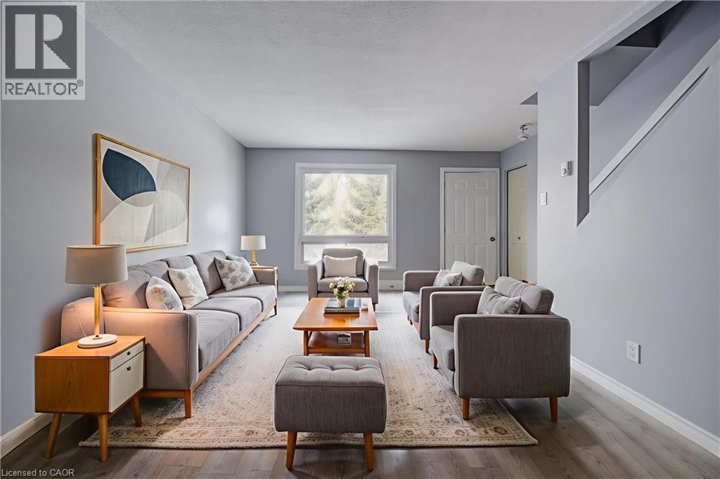 FANTASTIC STARTER HOME OR INVESTMENT IN A PRIME WATERLOO LOCATION. Welcome to #18 -249 Cedarbrae Avenue, Waterloo, an excellent opportunity to enter the real estate market as a first-time buyer or investor. The main floor features a spacious living room and an updated galley-style kitchen with plenty of freshly refreshed cabinetry, open to the dinette for easy everyday living. Upstairs, you’ll appreciate the generous primary bedroom with a walk-in closet, along with a 2nd spacious bedroom and a beautiful 4pc bathroom completing the upper level. The partly finished basement offers additional space ready for your personal finishing touches, with a rough-in for a bathroom, and a separate entrance to a common hallway provides direct access to the basement, a unique and valuable bonus. Ideally located close to both universities, Sobeys, Conestoga Mall, public transit, and the LRT, with easy access to the Expressway. The public library, Columbia Lake, Laurel Creek Conservation Area, parks, shopping, and restaurants are all nearby, making this an incredibly convenient and desirable location. Perfect for a first home or investment property, this condo townhouse also includes exterior maintenance in the condo fees and one dedicated parking space. Virtually staged. (id:4555)