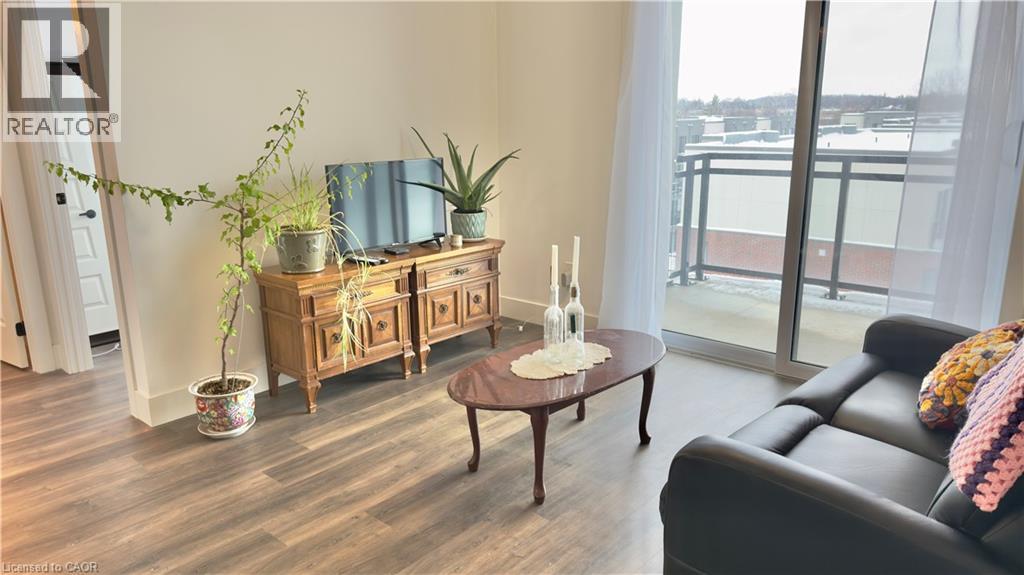 Discover comfortable and convenient living in this bright, well-maintained one-bedroom apartment on the 5th floor, offering abundant natural light. Ideally located just minutes from Uptown Waterloo, the University of Waterloo, Wilfrid Laurier University, Google headquarters, and Grand River Hospital, this unit places you close to everything the Waterloo Region has to offer. The thoughtfully designed open-concept layout features a spacious kitchen with quartz countertops, stainless steel appliances, and a breakfast bar that flows seamlessly into an inviting living area. The generous bedroom includes a large window that fills the space with light. Additional highlights include a stylish three-piece bathroom with updated fixtures, in-suite laundry, and a private balcony-perfect for enjoying fresh air. (id:4555)