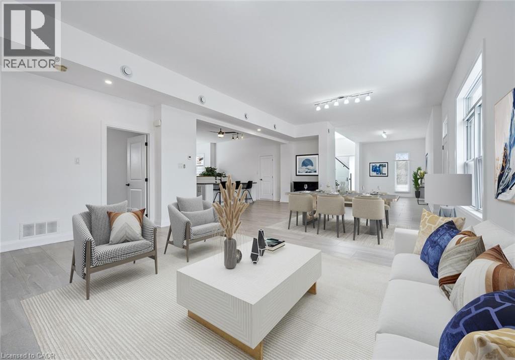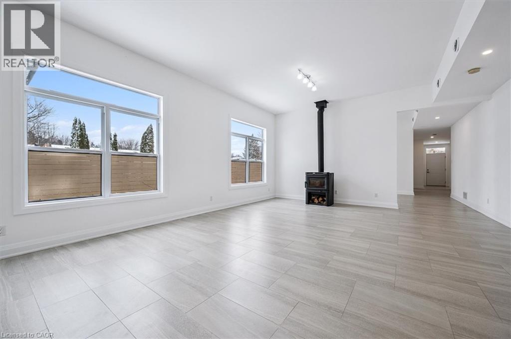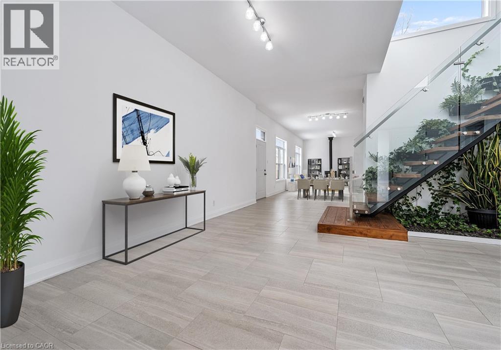 Welcome to 149 Woolwich Street, a truly one-of-a-kind custom home offering over 3,600 sqft of thoughtfully designed living space, with 5 bedrooms and 5 bathrooms, all on one level. From the moment you step inside, the bright, welcoming foyer sets the tone, complete with a cozy sitting area, a powder room, and a private guest suite with its own ensuite bath and outdoor patio with a pergola. A floating staircase creates an impressive architectural focal point, with modern glass railings, natural wood treads, and a stunning live wall. Upstairs, the loft offers an inspiring space for an office, studio, or creative retreat, with panoramic views and abundant natural light. At the heart of the home, the open-concept kitchen, dining, and living areas feel spacious and airy, highlighted by 10 ft. ceilings, expansive windows, and a charming wood-burning stove. The kitchen features a large island, granite countertops, stainless steel appliances, and a gas range with a chimney hood. Around the corner, you’ll find a convenient laundry area and patio doors leading to a side terrace with a natural gas hookup for easy outdoor grilling. Designed for both comfort and efficiency, the home features multi-zone in-floor heating throughout. A separate family room at the centre of the home provides a private, versatile gathering space tucked away from the main living area. The primary suite is a luxurious retreat, complete with its own wood-burning stove, built-in closets, walkout to the deck, and a spa-inspired ensuite with a double vanity and a full-width shower. Each additional bedroom has been carefully designed for flexible furniture placement and extra windows to maximize natural light and cross-ventilation. Outside, the private, fenced backyard is surrounded by beautiful mature trees and features a large deck with a pergola, ideal for relaxing or entertaining. The property also includes a single-car drive-through garage and two separate driveways, with parking for up to 6 vehicles. (id:4555)