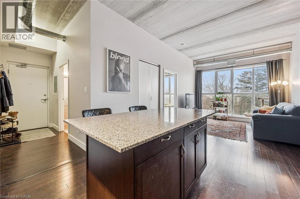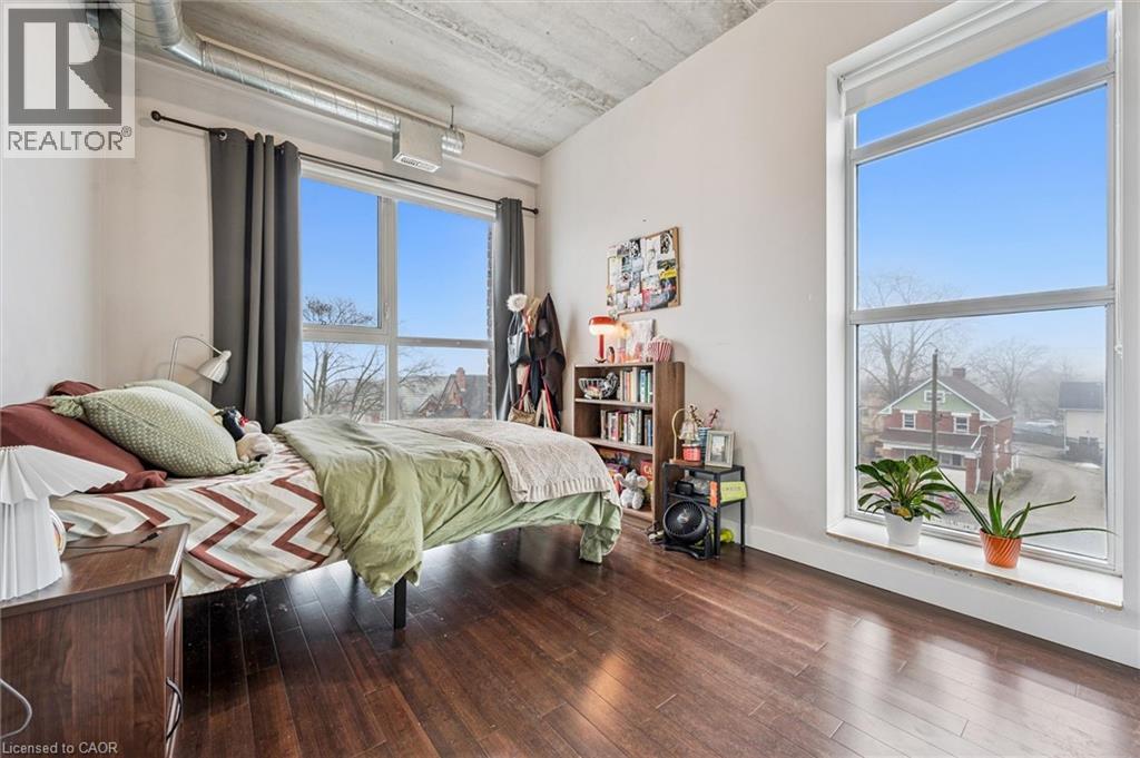 Affordable Uptown Waterloo condo living — without sacrificing space, style, or location. This bright corner unit at BPR Lofts in Uptown Waterloo offers a rare opportunity to own a 2-bedroom, 2-bath condo in one of the city's most walkable neighbourhoods. Inside, you’ll find exposed 10-foot ceilings and large East & South-facing windows that fill the open-concept living space with natural light and peaceful, tree-lined views of Princess Street. The well-designed layout includes a spacious kitchen with stone countertops and a large island, a bright primary bedroom with walk-in closet and ensuite bathroom access, a second full bathroom, and convenient in-suite laundry. This home is ideal for young professionals, first-time home buyers, or students who want to pay themselves instead of landlords - located just steps from Uptown Waterloo's restaurants, cafes, shops, festivals, and everyday amenities! Cycling enthusiasts will appreciate the building’s bike storage & nearby cycling trails that connect easily across the city. Prefer transit? The nearby ION LRT provides quick connections to both universities, while drivers will appreciate being just 5 minutes from the expressway. Condo fees include heating, cooling, water, and parking - you only pay hydro & internet. If you’ve been searching for an affordable condo in Uptown Waterloo, this bright and well-located BPR Lofts unit offers the perfect blend of urban convenience and comfortable living. Book your showing today, and move in just in time for patio season! (id:4555)