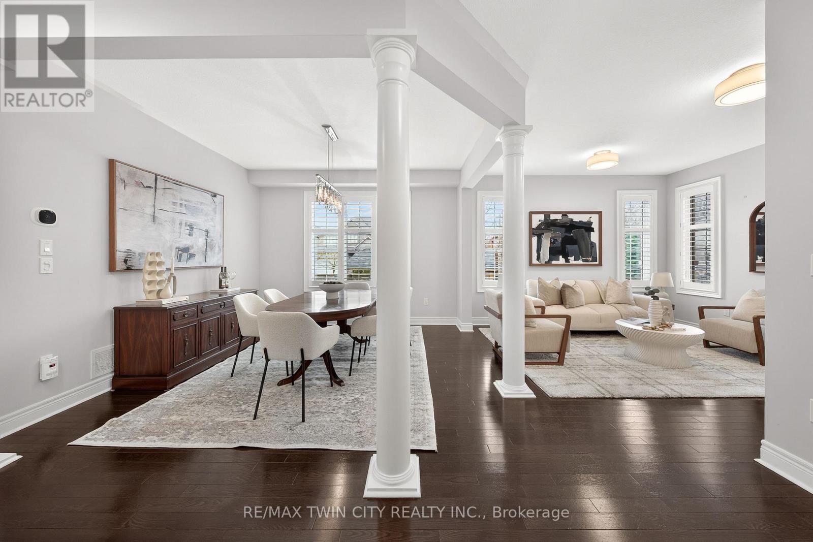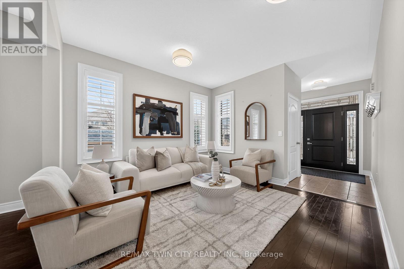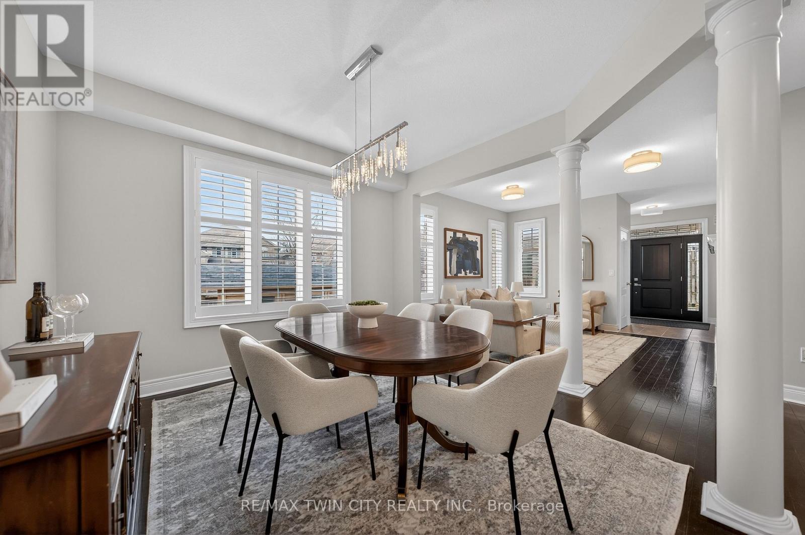 Beautifully updated executive family home in Waterloo's highly sought-after Conservation Meadows, offering 3,840+ SF of finished living space with 4+1 bedrms & 5 bathrms. Thoughtfully designed with a bright, spacious, open-concept layout & functional flow throughout, this home is ideal for both everyday family living & entertaining. The main flr features a welcoming foyer, formal living rm or main flr office, & a separate dining rm, perfect for hosting, & enhanced by hardwood flring throughout the living, dining, & family rms. The kitchen is well-appointed with premium appliances, breakfast bar, granite counters, under-cabinet lighting, & backsplash, & seamlessly connects to a bright breakfast area with access to the backyard & patio. The adjacent family rm offers a warm & comfortable space with a gas fireplace. Completing the main level-an updated laundry/mudrm & a 2-pc bathrm. Upstairs, are 4 spacious bedrms, a dedicated home office, & multiple full bathrms. The luxurious primary suite with double door entry features a walk-in closet & 5-pc ensuite with dual sinks, tiled-glass shower, & whirlpool tub. 2 bedrms offer semi-ensuite access to a 4-pc bathrm, & an additional 5-pc bathrm serves the remaining spaces. A versatile bedrm with an attached sitting area offers flexibility as a reading nook, study space, or lounge. The finished basement extends the living space with a lrg rec rm with electric fireplace, 5th bedrm, 3-pc bathrm, & ample storage-ideal for guests, teens, or multi-generational living. Thoughtful updates throughout: refreshed bathrms & laundry, enhanced by pot lights, designer light fixtures, California shutters, & laminate flring across the upper level & basement. Step outside to the oversized, fenced backyard complete with an expansive patio & shed. Close to schools, neighbourhood parks, walking trails, universities, shopping, Laurel Creek Conservation Area, St. Jacobs Farmers' Market, & all everyday amenities, with convenient access to major HWYs. (id:4555)