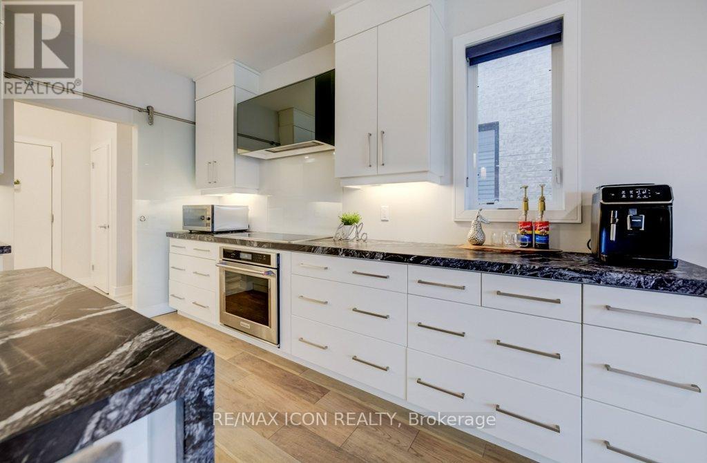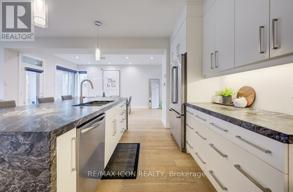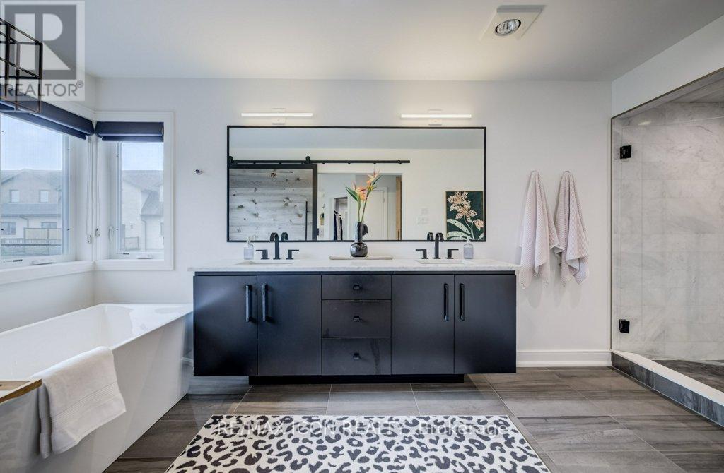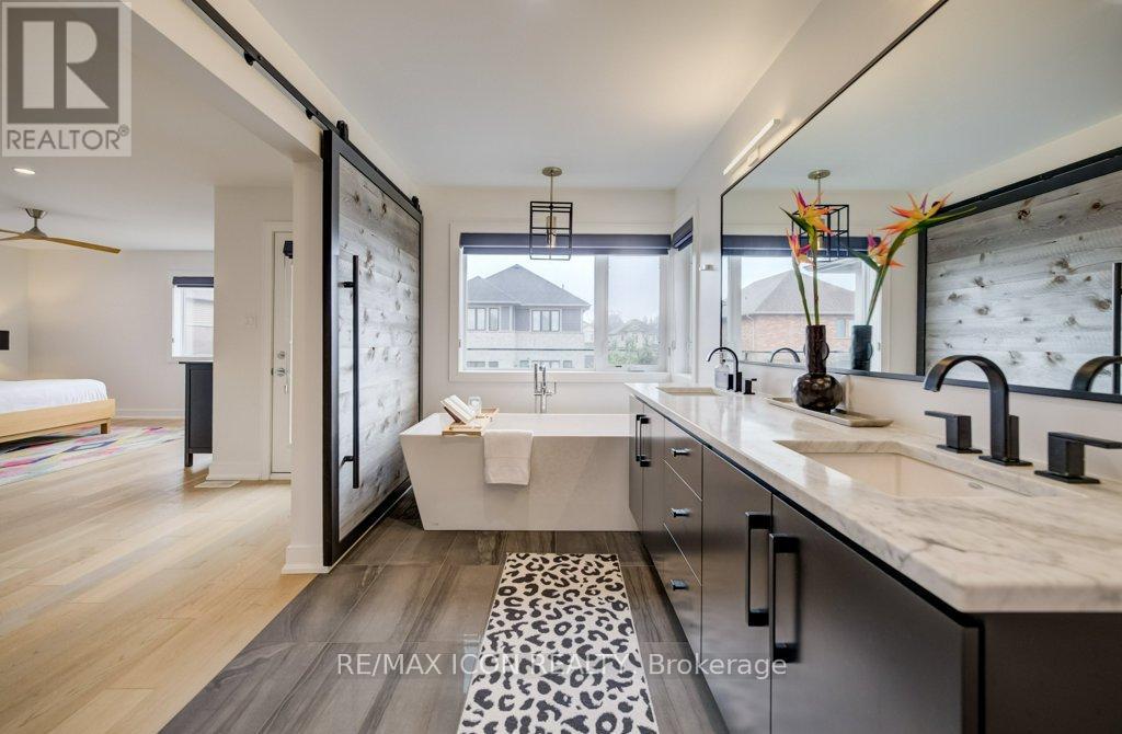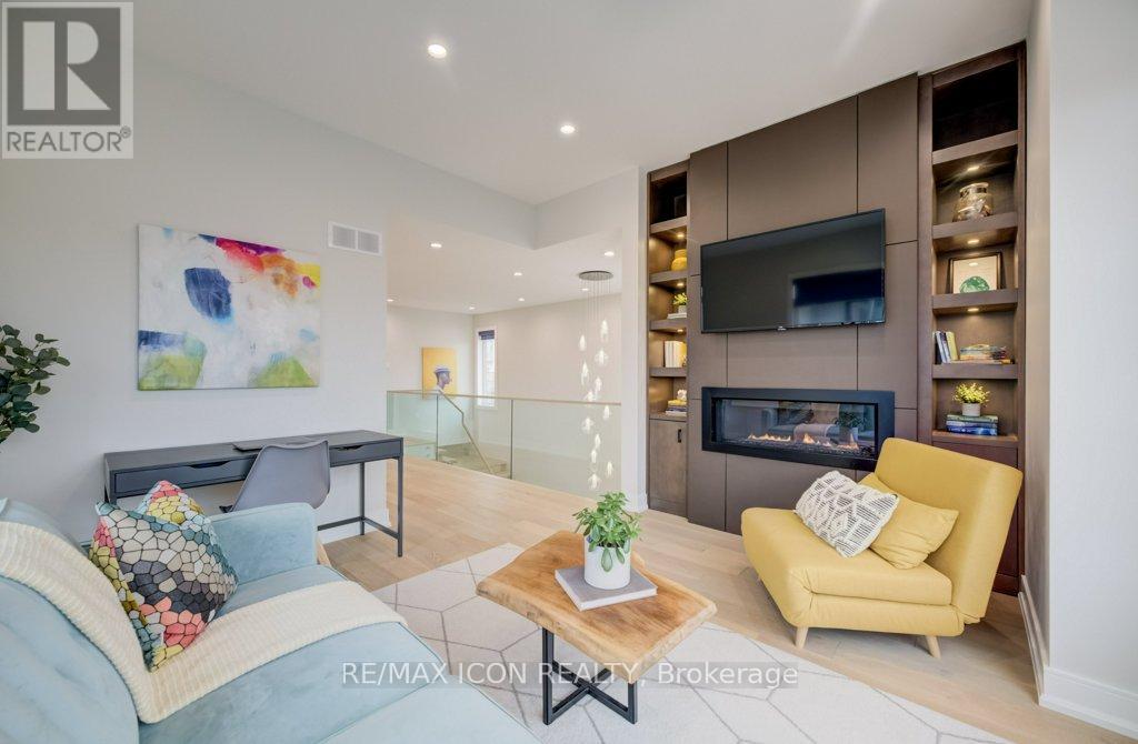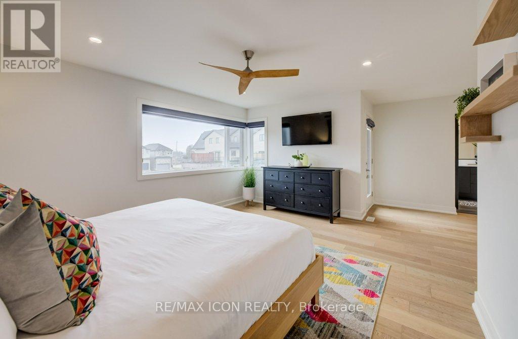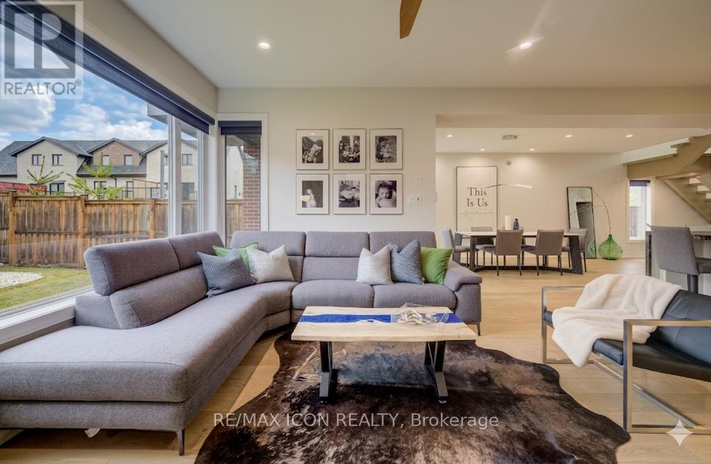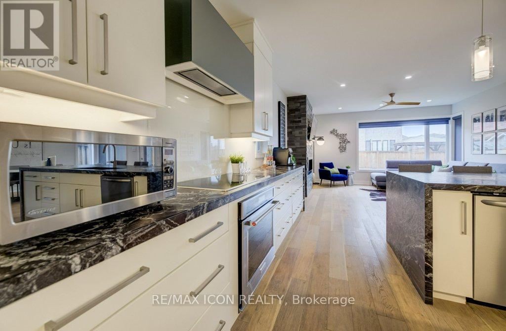 Custom-built by award winning custom home builder John Welton of Sunvale Homes this modern masterpiece in Waterloo's prestigious Kiwanis Park neighborhood offers a lifestyle defined by luxury and convenience. Located just minutes from Highway 85 and premium amenities, the home greets you with a sophisticated open-concept design with seamless flow. The breathtaking foyer features a soaring ceilings and a striking floating staircase with custom glass railings. The home's open-concept heart flows into a chef-inspired kitchen anchored by leathered granite waterfall countertops, a sensor-activated faucet, and stainless appliances. Adjacent, a sleek laundry suite with garage access is cleverly tucked behind a custom glass sliding door. The living room, anchored by a gas fireplace, serves as a gathering hub that transitions seamlessly to the dining room and covered outdoor porch with privacy screen. Enter the primary suite through a custom oversized wooden swing door to find a retreat featuring a private balcony, a sprawling walk-in closet, and a spa-inspired 5-piece ensuite boasting a massive three-shower-head walk-in shower, a deep soaker tub, and elegant marble finishes. A loft, complete with gas fireplace, custom built ins and tinted privacy-glass balcony, offers a secondary lounge or office/flex space while two additional plush bedrooms provide ample comfort for family or guests. The finished basement serves as the ultimate entertainment hub, complete with a projector and screen, a full bathroom, and a spacious fourth bedroom with walk in closet and custom storage. No detail was spared in the finished garage which functions as a showroom or gym with integrated heating, an EV charger, recessed pot lights, and rubber flooring. From the sleek architectural lines to the trails of the Grand River, Kiwanis park with outdoor pool, dog park and more just steps away, this 4 bed, 3.5 bath home represents a rare opportunity to own a work of art in a premier community. (id:4555)