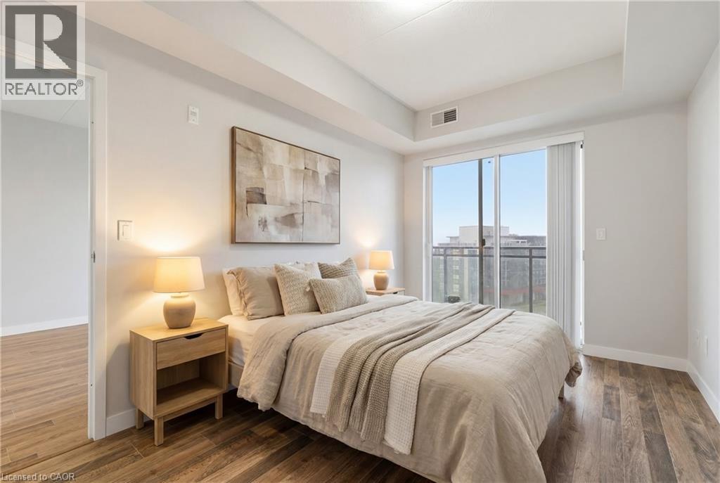 Welcome to an exceptional offering at 62 Balsam Street, Unit H505, a residence that seamlessly blends modern design, convenience, and outstanding investment potential in one of Waterloo’s most sought after locations. Perfectly positioned just steps from Wilfrid Laurier University and within walking distance to University of Waterloo, this is a rare opportunity for both end users and investors seeking strong long term value in a high demand rental market. Inside, you are welcomed by a bright and thoughtfully designed space offering 877 square feet of refined living. Soaring 9 foot ceilings and contemporary finishes create an open and upscale atmosphere throughout. The layout is both functional and stylish, featuring a spacious primary bedroom, an expansive den filled with natural light, and two full bathrooms, an uncommon and highly desirable combination. The kitchen is beautifully appointed with granite countertops, stainless steel appliances, double sinks, and custom cabinetry with soft close detailing, offering the perfect balance of elegance and everyday practicality. One of the most impressive features of this home is the oversized private terrace. This outdoor space is rarely found in condo living and offers two separate walkouts along with sweeping city views. It is the perfect setting for morning coffee, entertaining guests, or simply relaxing above it all. Adding further value and convenience, the unit includes two underground parking spaces and a dedicated storage room, features that are increasingly rare in this prime location. Residents enjoy access to premium building amenities including high speed internet, collaborative study spaces, and a well appointed social lounge. This is more than just a condo. It is a lifestyle opportunity in the heart of Waterloo, where everything you need is just moments away. (id:4555)