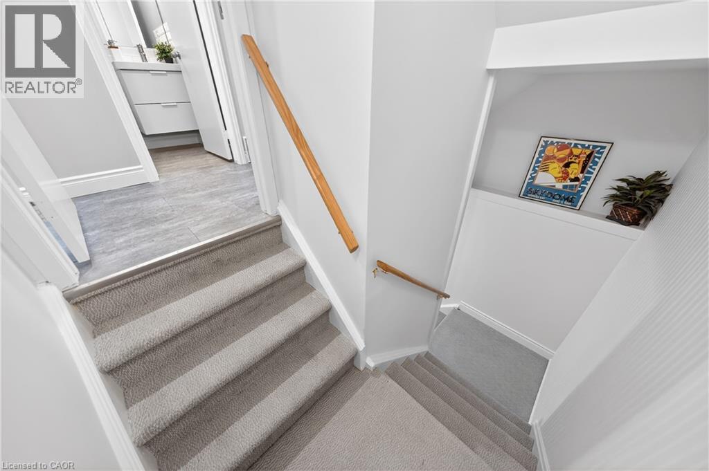 Welcome to this beautiful updated condo townhouse in the desirable area of Colonial Acres, Waterloo. Located in a quiet neighbourhood, this unit is tucked away at the back of the complex, with ample visitor parking and close to the park. This 3 bedroom, 3 bathroom home has been completely transformed, with modern updates, such a a white kitchen and backsplash (2020), vinyl flooring (2020), freshly painted (2026), updated baseboards on the main floor (2026). Upon entering the home you are greeted with a large foyer with access to the garage and a closet with newly installed mirror doors (2026). To the right is your dinette and galley style kitchen. At the back of the home you have beautiful hardwood floors in your dining room/living room with access to your backyard which is private and spacious. A fresh and updated powder room rounds out the main floor. Upstairs you will find beautiful hardwood floors, 3 bedrooms including a large primary bedroom with a walk-in closet and a renovated 5 piece bathroom (2020). The basement is fully finished with a 3 piece bathroom. This home is perfectly situated directly across from Conestoga Mall, public transit and all the amenities. (id:4555)