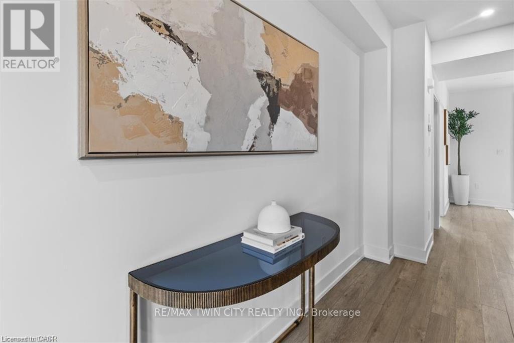 The purchase price set out above is net of HST. How HST will be addressed will be determined at the time the Purchaser enters the agreement of purchase and sale, based on the status of the existing and proposed HST Rebates announced by the provincial and federal governments. - Welcome to this stunning 2-bedroom, 2-bathroom condo-townhouse, perfectly situated in the heart of Uptown Waterloo - where style, convenience, and location come together effortlessly. Just minutes from the University of Waterloo, Wilfrid Laurier University, LRT transit, restaurants, downtown Kitchener, Grand River Hospital, and the popular Spur Line Trail, this home places you in the center of it all. Inside, you'll find a thoughtfully designed space featuring beautiful vinyl plank flooring throughout and oversized windows that fill the home with natural light. The modern kitchen shines with elegant quartz countertops, stylish backsplash tile, and quality finishes that make it both functional and eye-catching. The layout offers excellent flexibility and privacy, with a spacious lower-level bedroom featuring a walk-in closet, and ensuite bathroom ideal for guests, roommates, or a home office. Step out onto your private balcony, perfect for enjoying your morning coffee or relaxing in the evenings. Whether you're a first-time buyer, professional, or investor, this property is a rare find in one of Waterloo Region's most walkable and desirable neighborhoods. (id:4555)