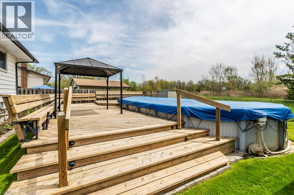 Charming 3-Level Backsplit – Perfect Family Home in a Quiet, Convenient Location! Welcome to this beautifully maintained 3-level backsplit offering a perfect blend of comfort, functionality, and outdoor enjoyment. Located in a quiet, family-friendly neighborhood with no rear neighbours, this home is ideal for families looking for privacy without sacrificing convenience. Step inside to discover a bright and spacious layout featuring 3 generously sized bedrooms and a full 4-piece bathroom. The original carport has been thoughtfully converted into a cozy family room with numerous windows and sliding door access to the backyard along with a gas fireplace, adding valuable living space perfect for entertaining or relaxing. The eat-in kitchen is a delight, complete with gas stove, tube lighting for natural brightness, and plenty of space for family meals. The fully finished basement offers even more room to grow, with a large rec room, home office, or guest space. Central vac rough-in adds future convenience. Freshly painted throughout, updated light fixtures and electrical switches. Outdoor living is a dream with this property! Enjoy a fully fenced large backyard, mature trees in the back, lots of wildlife, and a stunning above-ground pool with a spacious deck featuring built-in seating — professionally opened and closed every year. You'll also find a large shed and two additional storage sheds to keep everything organized. The triple-wide interlock driveway offers ample parking for multiple vehicles. All this is located close to parks, shopping, and public transit, making everyday life a breeze. Don’t miss your chance to own this lovingly cared for home in a peaceful setting with all the right features! Some photos are virtually staged. (id:4555)