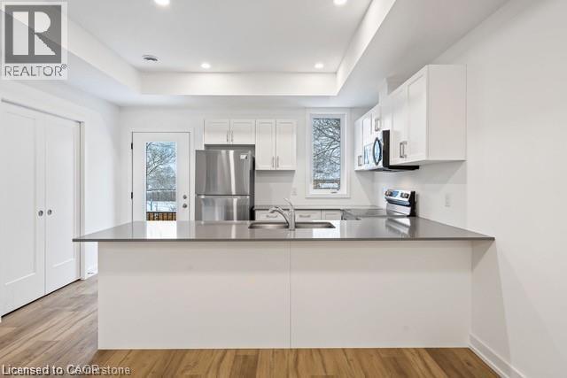 Welcome to Clarewood Towns, this bright and modern 3 bedroom, 3 bath end unit townhouse has been beautifully finished with everything you will need for the easy stress-free lifestyle you've been looking for. The main floor features open connect kitchen, dining and living areas with access to dec. The kitchen offers high end finishes including large island, quartz counters & stainless steel appliances. There is private deck with westerly views for enjoying evening sunsets. The flooring throughout is a durable easy to clean luxury vinyl plank. The second floor features a large primary bedroom with full ensuite bath & large walk-in closet, 2 additional a bedroom share a 4 pce. bathroom. Bedroom level laundry make this a great family home. 2 ground level surface parking spaces #26 & #31. This townhouse is at the rear of the development set back off Clare Ave. Walking distance to Niagara College campus and Woodlawn Park. Close to shopping, hiking trails, golf courses, Highway 406 access. (id:4555)