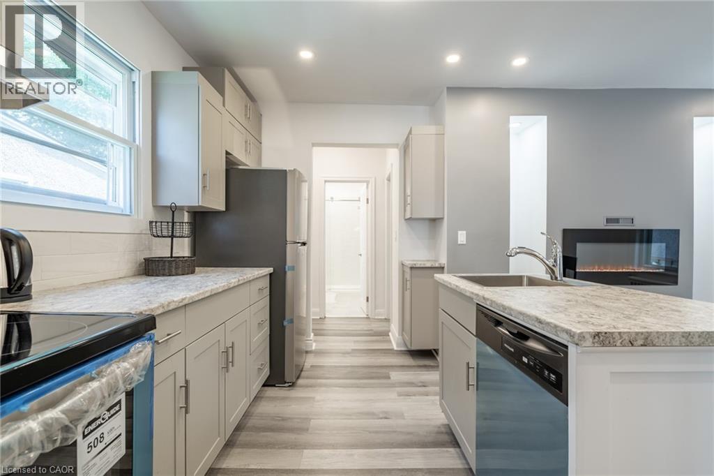 Welcome to 90 Margery Road, a beautifully renovated two-storey home in the heart of Welland, offering exceptional flexibility for homeowners and investors alike. Extensively updated in 2022, this property features both modern cosmetic upgrades and major big-ticket improvements, including enhanced insulation, new shingles, plumbing, and electrical. This 4-bedroom, 2-bathroom home offers a bright open-concept main floor with updated flooring, pot lights, custom blinds, and abundant natural light. The modern kitchen features premium countertops, white subway tile backsplash, sleek grey cabinetry, stainless steel appliances, and a functional island with a large sink. A formal dining area with an electric fireplace flows into the spacious living room, ideal for entertaining. The main floor includes a bedroom with built-in wardrobe and semi-ensuite access to a 3-piece bathroom with glass walk-in shower, offering in-law or secondary suite potential. Upstairs features three generous bedrooms, a second 3-piece bathroom, and a roughed-in kitchen, creating the opportunity to convert to a duplex or independent rental unit. Situated on a large lot with a covered front porch, private backyard, and one parking space. Conveniently located near schools, the Welland Canal, Highway 406, and Seaway Mall—perfect for first-time buyers, families, or investors seeking modern living with income potential. (id:4555)