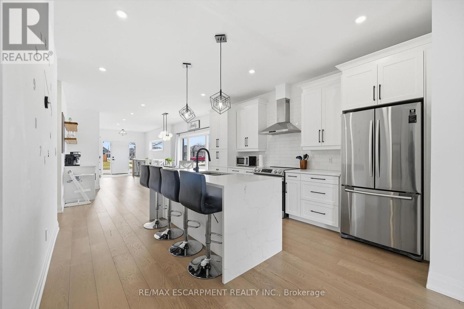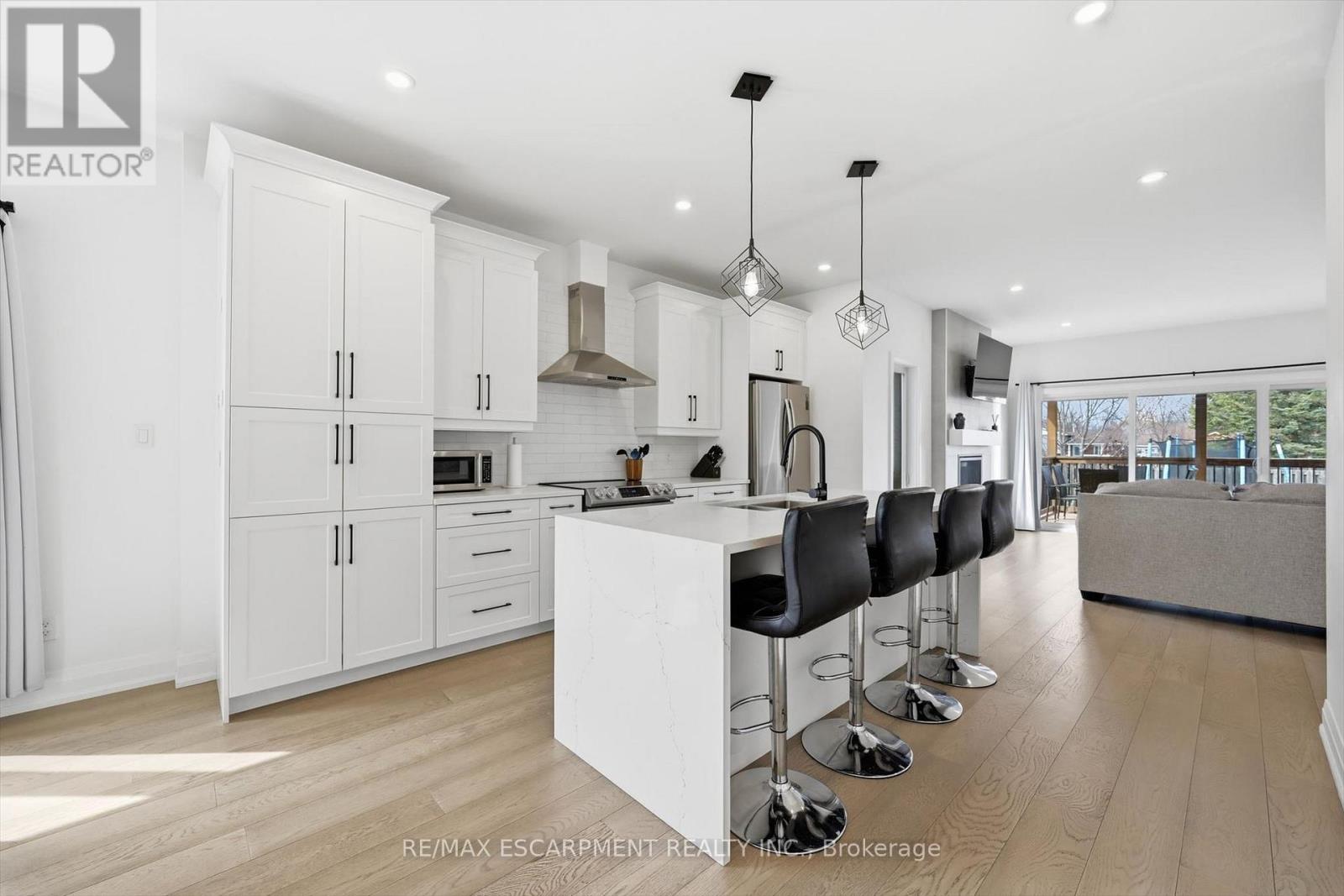 Nestled at the end of a quiet, family-friendly cul-de-sac in the Dain City area of Welland, this open-concept bungalow features 2 + 1 Bedrooms, a beautiful custom kitchen with a convenient coffee/bar nook, 3 full bathrooms, a professionally finished basement, 2 fireplaces, and a covered front & rear porch with a fully fenced yard, which is great for kids and pets. Double car garage w/inisde entry. Lovely concrete double wide driveway can accommodate up to 4 cars.Truly a perfect blend of suburban tranquility and modern convenience. Known for its proximity to the Welland Canal and recreational trails, Harvard Court is a sought-after area for those seeking a peaceful lifestyle without sacrificing access to city amenities. (id:4555)