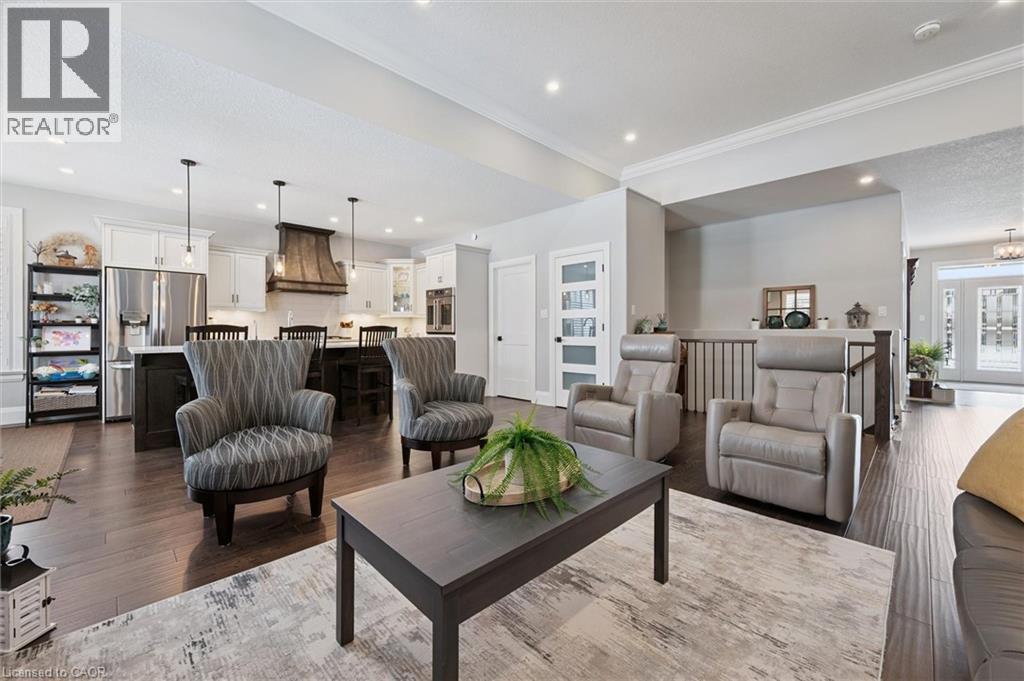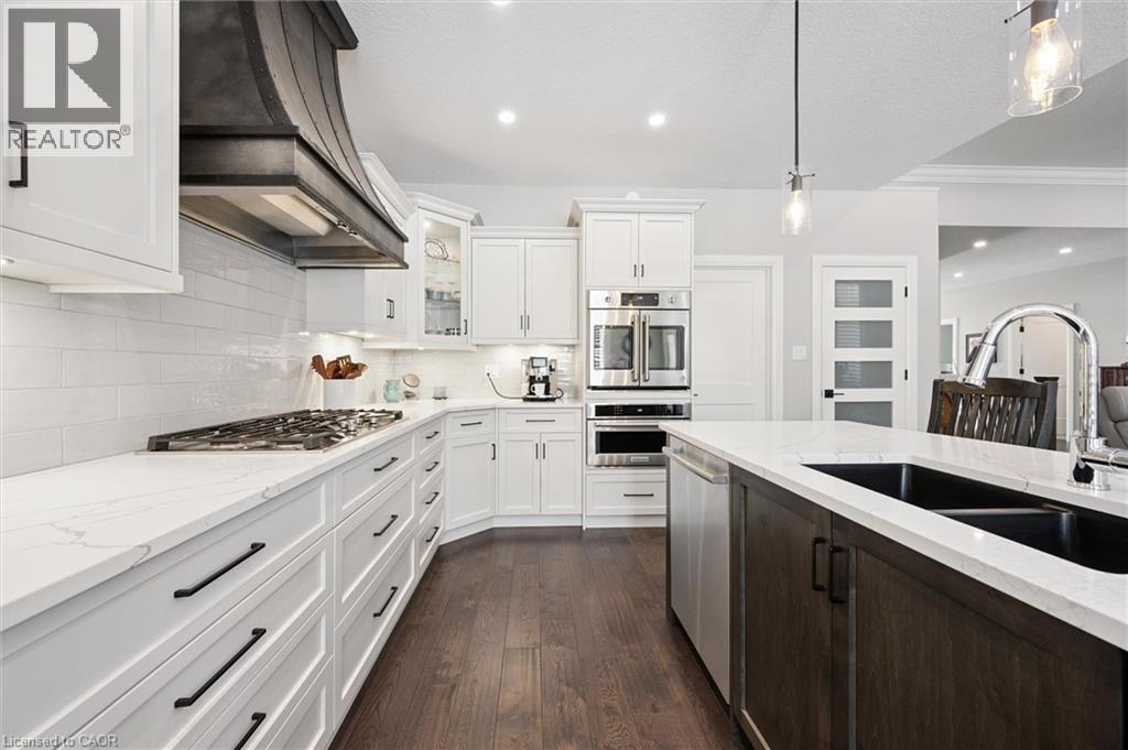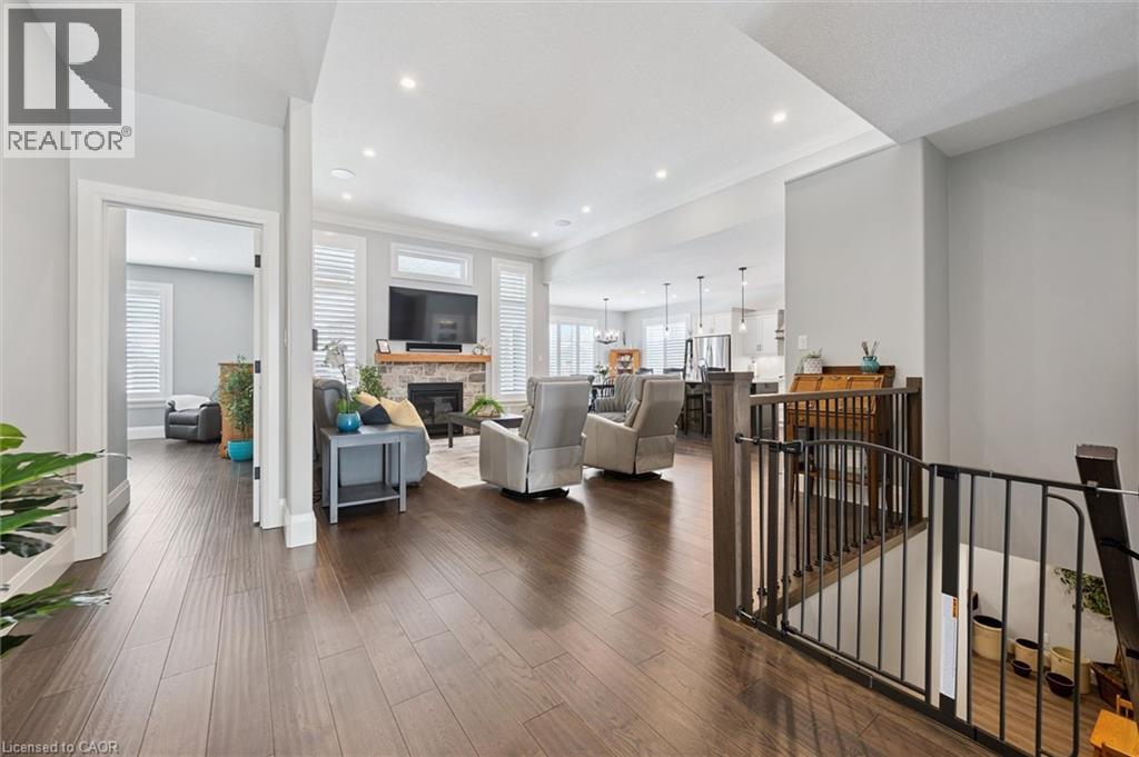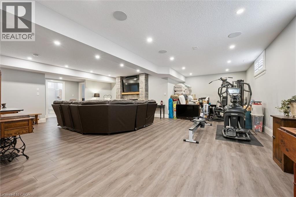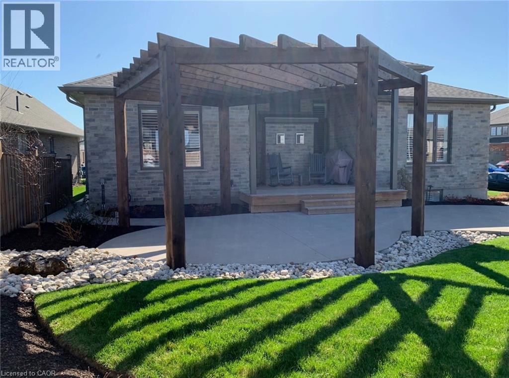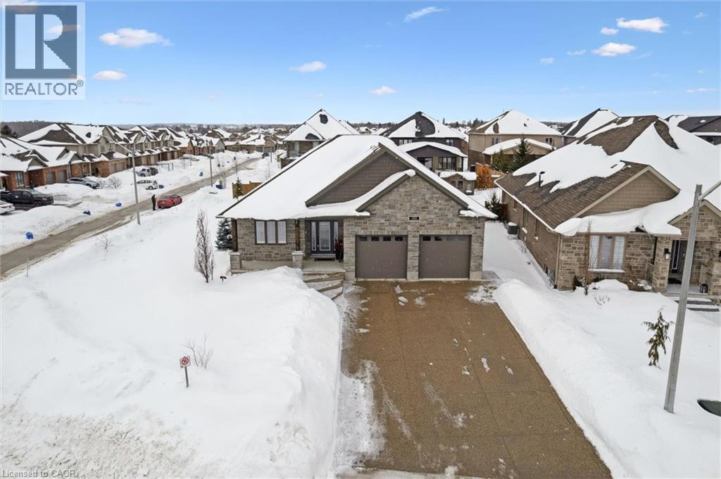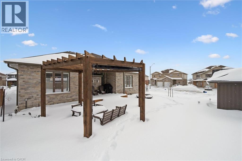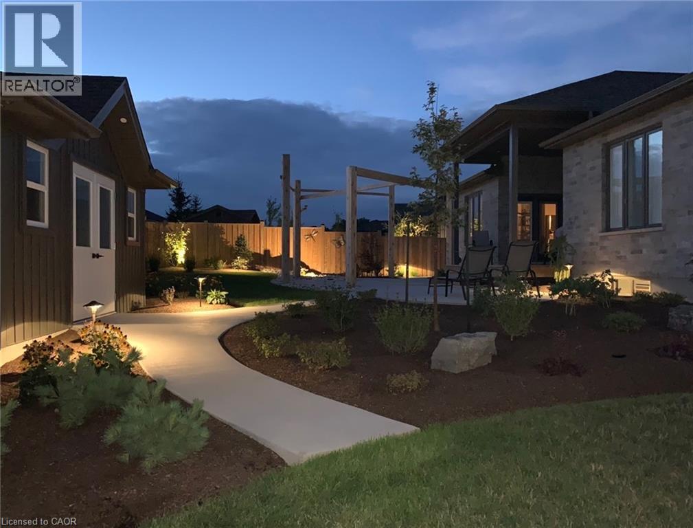 This CAPTIVATING custom- built bungalow is in immaculate condition and has been lovingly maintained and cared for by the original owners. You'll love the stunning kitchen with white cupboards, elegant creamy white quartz counter tops, custom range hood crafted by Thak Ironworks, lots of storage and workspace, a spacious walk-in pantry, and a huge center island in contrasting wood. Gracious entertaining can be yours in the elegant dining room with large windows to offer a romantic setting for special moments. Here you will also find the entrance to the back porch overlooking the tranquil yard. The welcoming great room boasts engineered hardwood floors, soaring ceilings and large windows flanking the cozy gas stone fireplace. Relax and unwind in the tranquil primary bedroom retreat with large walk-in closet and inviting primary spa bath with deep soaker tub and separate shower. You'll appreciate the convenience of the main floor laundry that you can access off the garage and the kitchen, a second main floor bedroom with spacious closet and an additional full bath. Be comfy-cozy by the rustic stone fireplace in the spacious rec room designed for informal gatherings and room for a pool table. The basement also features 2 roomy bedrooms, a full bath, loads of storage and staircase to insulated double garage! Enjoy cool summer evenings on the lovely back porch or under the pergola with a picturesque view of the lawn and gardens. Apollo Shade Screens on back patio and pergola and the fence can be extended along the side of the house. Ambient garden lights throughout. Custom 12' x 16' shed. Quality craftmanship by Stroh Homes! Desirably located close to the school, scenic walking trails, gently rolling hills and valleys and the meandering Nith River. HOUSE AND GARDEN! (id:4555)