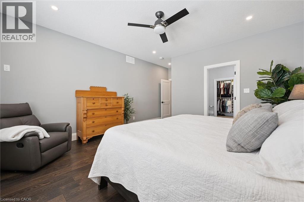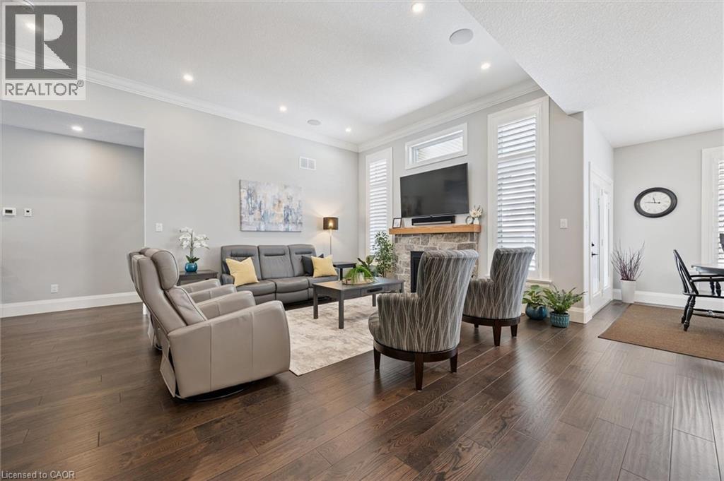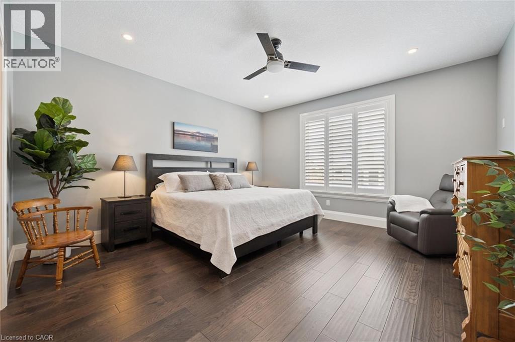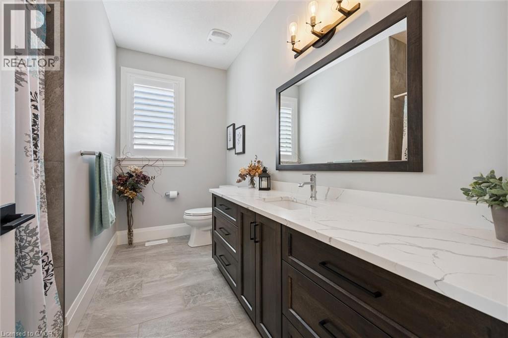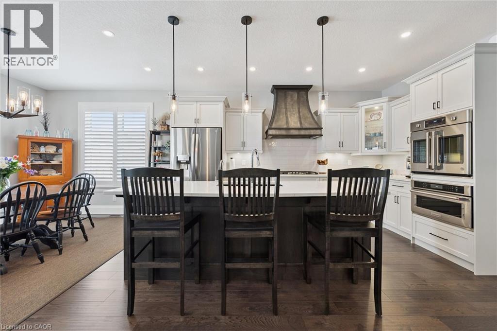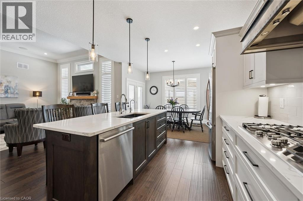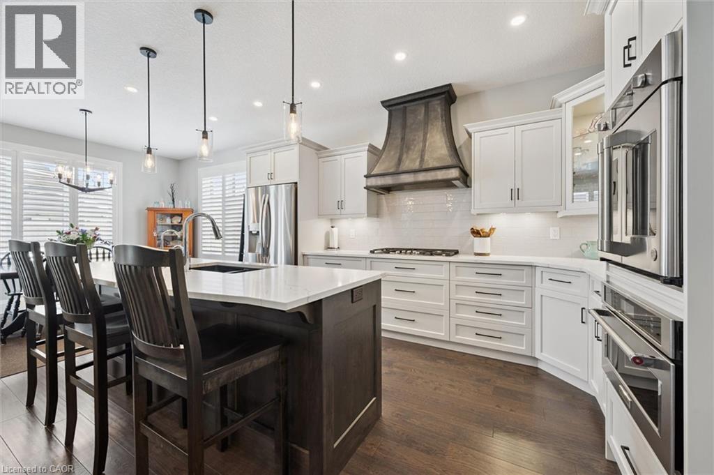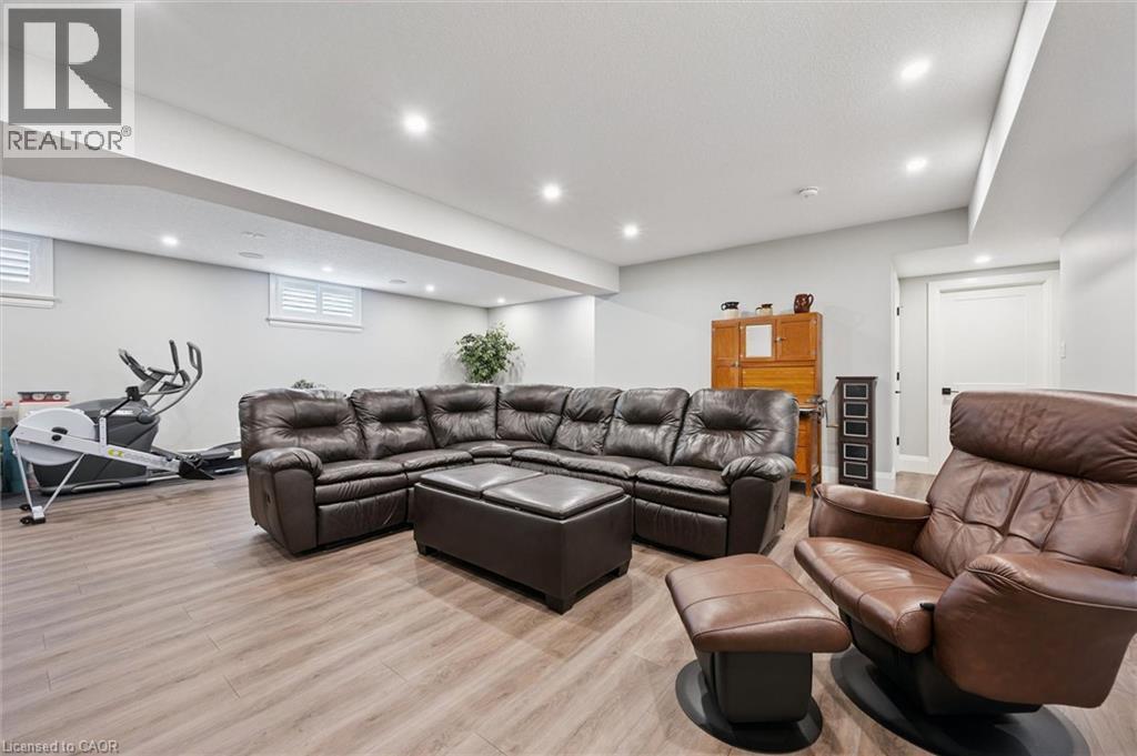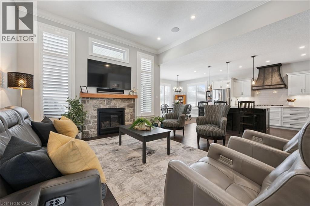 This CAPTIVATING custom- built bungalow is in immaculate condition and has been lovingly maintained and cared for by the original owners. You'll love the stunning kitchen with white cupboards, elegant creamy white quartz counter tops, custom range hood crafted by Thak Ironworks, lots of storage and workspace, a spacious walk-in pantry, and a huge center island in contrasting wood. Gracious entertaining can be yours in the elegant dining room with large windows to offer a romantic setting for special moments. Here you will also find the entrance to the back porch overlooking the tranquil yard. The welcoming great room boasts engineered hardwood floors, soaring ceilings and large windows flanking the cozy gas stone fireplace. Relax and unwind in the tranquil primary bedroom retreat with large walk-in closet and inviting primary spa bath with deep soaker tub and separate shower. You'll appreciate the convenience of the main floor laundry that you can access off the garage and the kitchen, a second main floor bedroom with spacious closet and an additional full bath. Be comfy-cozy by the rustic stone fireplace in the spacious rec room designed for informal gatherings and room for a pool table. The basement also features 2 roomy bedrooms, a full bath, loads of storage and staircase to insulated double garage! Enjoy cool summer evenings on the lovely back porch or under the pergola with a picturesque view of the lawn and gardens. Apollo Shade Screens on back patio and pergola and the fence can be extended along the side of the house. Ambient garden lights throughout. Custom 12' x 16' shed. Quality craftmanship by Stroh Homes! Desirably located close to the school, scenic walking trails, gently rolling hills and valleys and the meandering Nith River. HOUSE AND GARDEN! (id:4555)