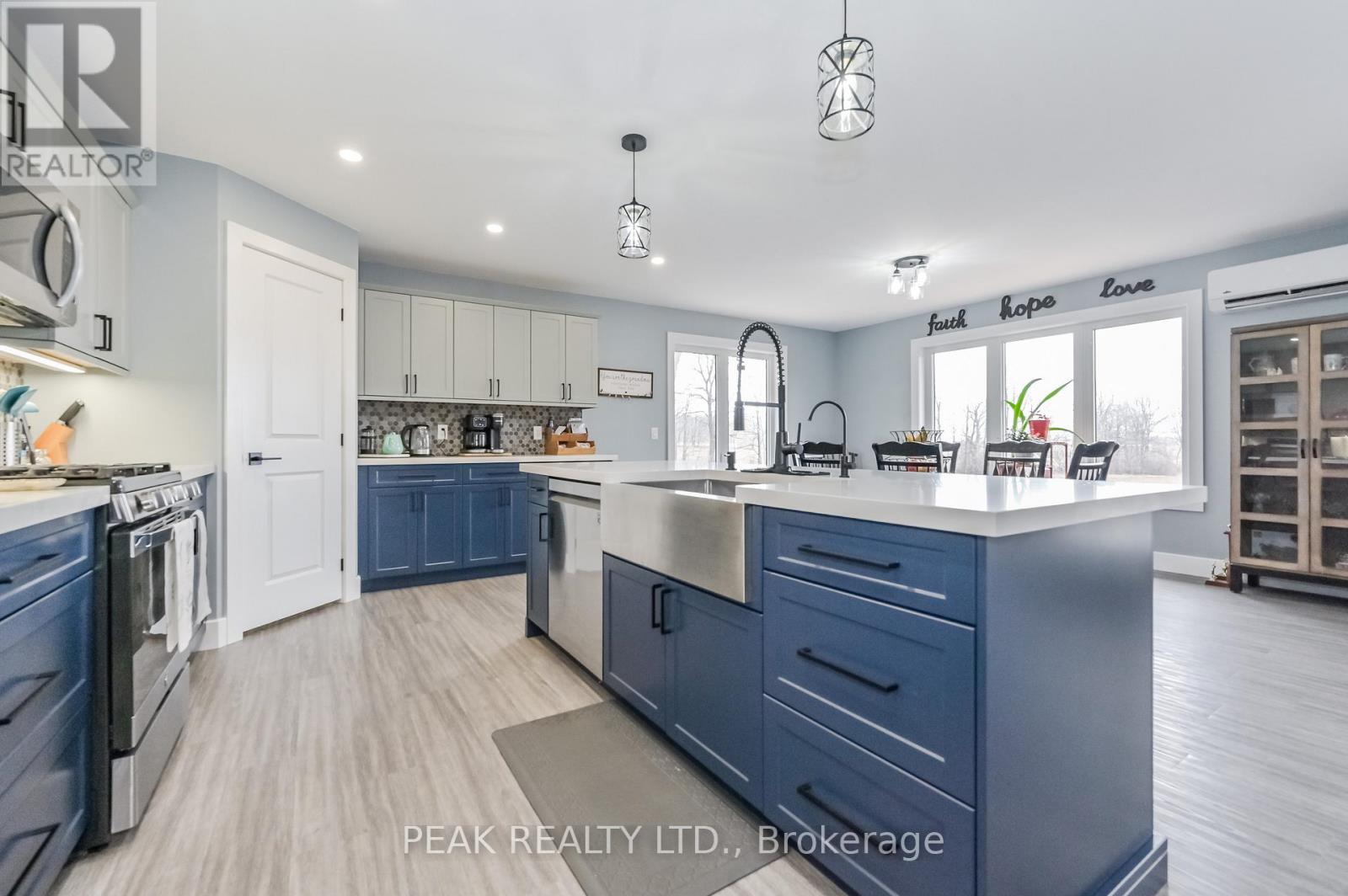 The perfect home for an extended family or simply a fantastic mortgage helper: with an 80% mortgage, your basement tenant would cover approximately 58% of your mortgage cost. This super raised bungalow could be the home for you with a ground floor in-law suite/apartment ideal for extended family or rental income. The main floor starts with a great bright open concept foyer, kitchen, dining room, living room space with sliders opening out to a composite deck with a beautiful view of the countryside. The Kitchen boasts new appliances a propane gas stove, large Centre Island and granite countertops. The master has a spacious 3-piece ensuite and the 3rd bedroom is currently used as an office. Now let's move to the basement, again an open spaced kitchen living area with another great view of the countryside, 3 more bedrooms and laundry room with stackable appliances. The home is a legal duplex, this apartment will be a great mortgage helper or a super space for an extended family. The main floor heat runs on a a very efficient low cost tankless water heater and combo boiler with ductless A/C. (id:4555)