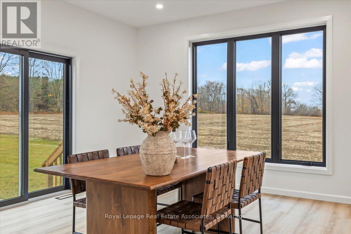 Welcome to this stunning brand-new custom home located on 2.6 acres between Hanover and Durham. Offering over 3,000 square feet of thoughtfully designed living space, this modern 4-bedroom, 4-bath home is truly turn-key with every detail carefully considered.Step inside and be greeted by a bright, open-concept layout featuring a soaring cathedral ceiling and a striking fireplace in the living room. The main floor boasts luxury vinyl flooring and recessed lighting throughout. The contemporary kitchen includes stainless steel appliances, a large centre island, propane stove with pot filler, and ample counter space-perfect for family gatherings and entertaining. The adjoining dining area walks out to the backyard, ideal for enjoying the scenic countryside views.A large mudroom with built-in storage connects to the double car garage, and the main floor laundry adds convenience to everyday living. The primary suite offers his-and-her closets, a walkout to the backyard, and a luxurious ensuite with a glass shower and double-sink vanity.Upstairs, sleek glass railings lead to a spacious loft-an ideal office or family lounge. Three additional bedrooms complete the upper level, including one with a private 3-piece ensuite and another full 4-piece bath.The lower level offers a partially finished space with a 3-piece rough-in and cold room, ready for your personal touch. Outside, enjoy the expansive lot and the added bonus of a 40 x 60 detached shop with a 14 x 14 overhead door-perfect for hobbyists, storage, or a home business.A rare opportunity to own a new, modern country home that blends luxury, function, and space-just minutes to both Hanover and Durham. (id:4555)