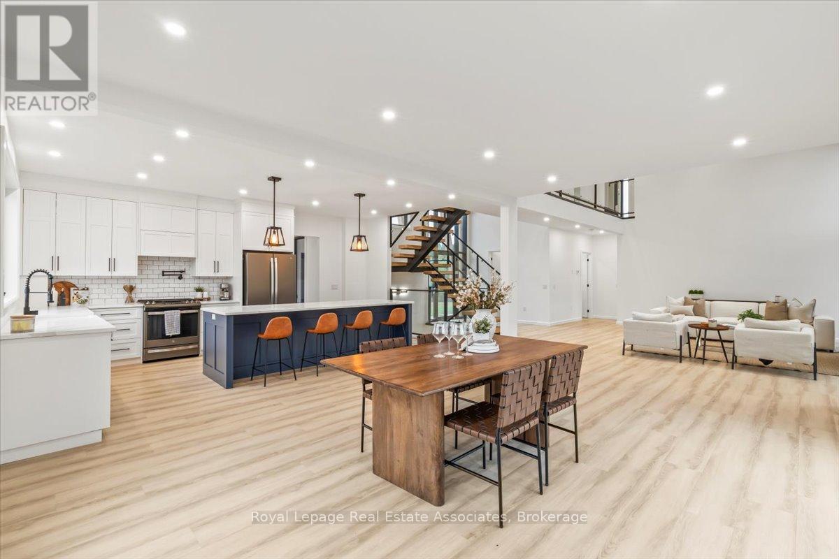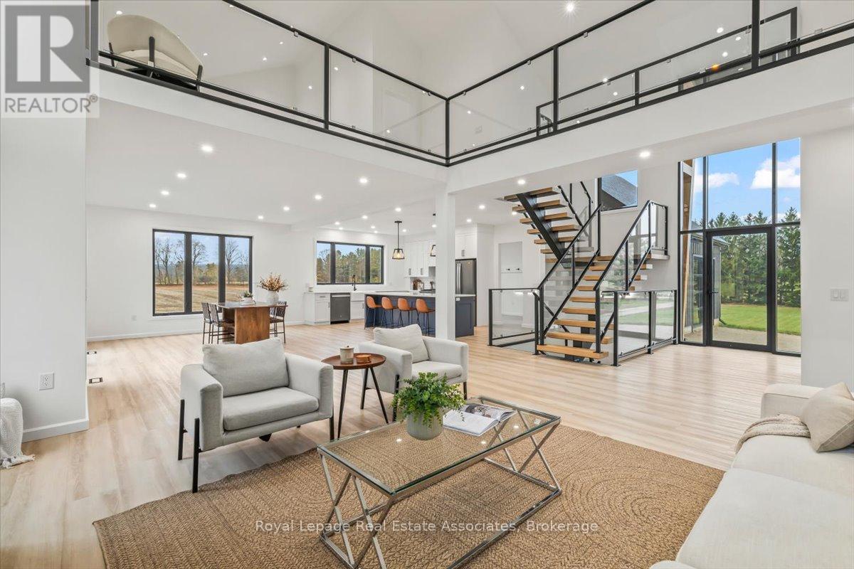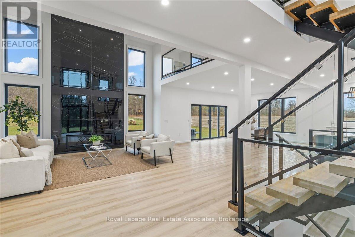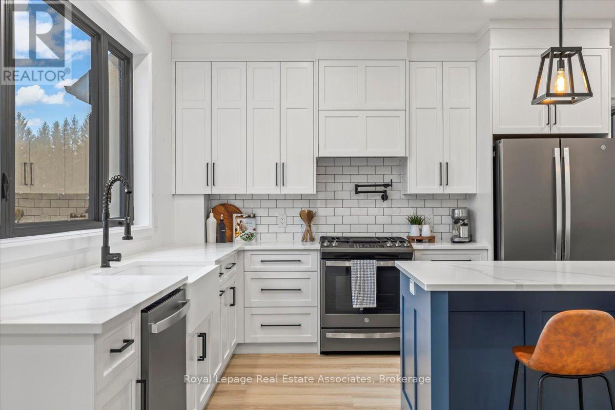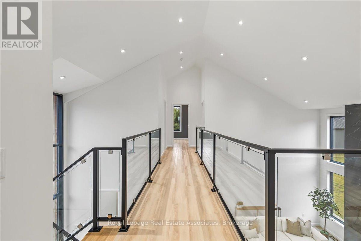 Welcome to this stunning brand-new custom home located on 2.6 acres between Hanover and Durham. Offering over 3,000 square feet of thoughtfully designed living space, this modern 4-bedroom, 4-bath home is truly turn-key with every detail carefully considered.Step inside and be greeted by a bright, open-concept layout featuring a soaring cathedral ceiling and a striking fireplace in the living room. The main floor boasts luxury vinyl flooring and recessed lighting throughout. The contemporary kitchen includes stainless steel appliances, a large centre island, propane stove with pot filler, and ample counter space-perfect for family gatherings and entertaining. The adjoining dining area walks out to the backyard, ideal for enjoying the scenic countryside views.A large mudroom with built-in storage connects to the double car garage, and the main floor laundry adds convenience to everyday living. The primary suite offers his-and-her closets, a walkout to the backyard, and a luxurious ensuite with a glass shower and double-sink vanity.Upstairs, sleek glass railings lead to a spacious loft-an ideal office or family lounge. Three additional bedrooms complete the upper level, including one with a private 3-piece ensuite and another full 4-piece bath.The lower level offers a partially finished space with a 3-piece rough-in and cold room, ready for your personal touch. Outside, enjoy the expansive lot and the added bonus of a 40 x 60 detached shop with a 14 x 14 overhead door-perfect for hobbyists, storage, or a home business.A rare opportunity to own a new, modern country home that blends luxury, function, and space-just minutes to both Hanover and Durham. (id:4555)