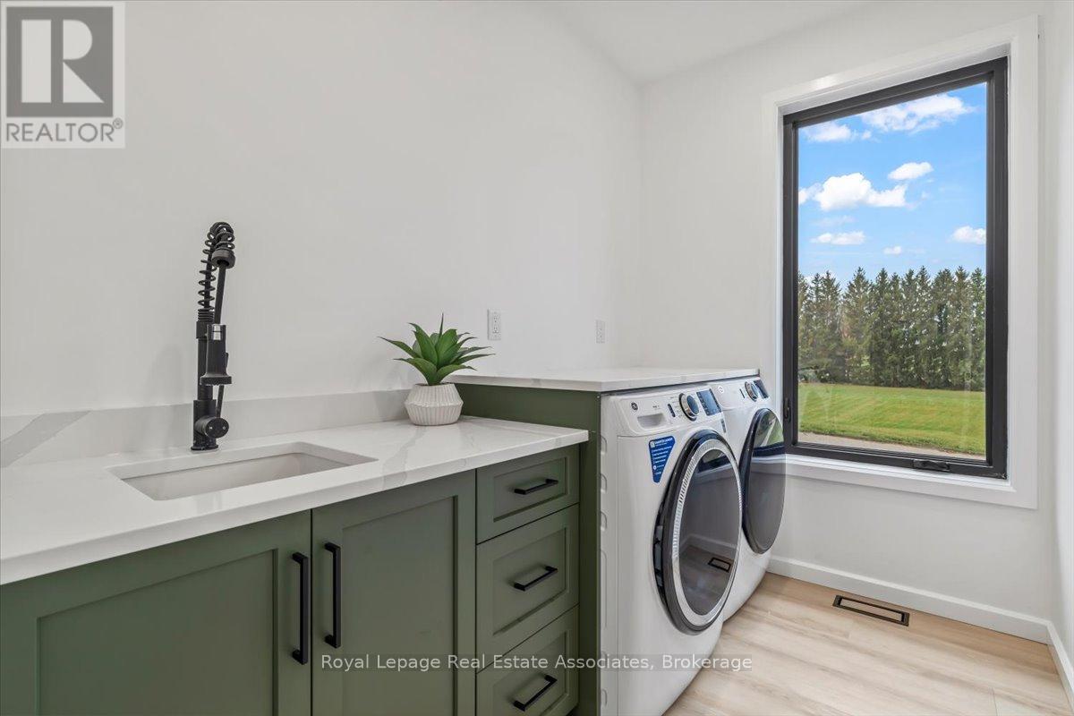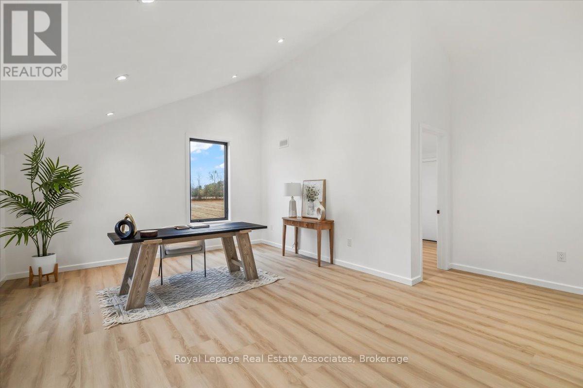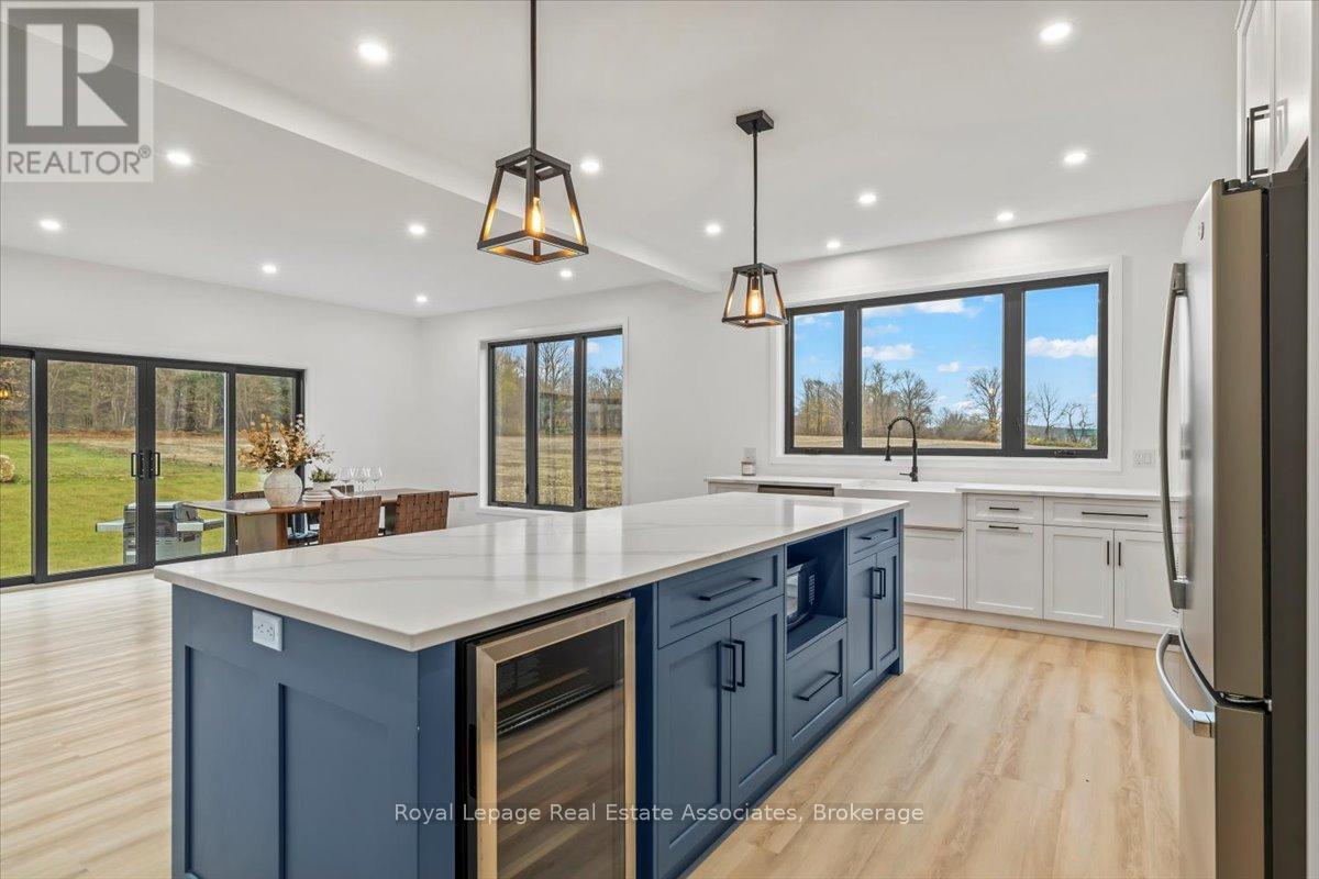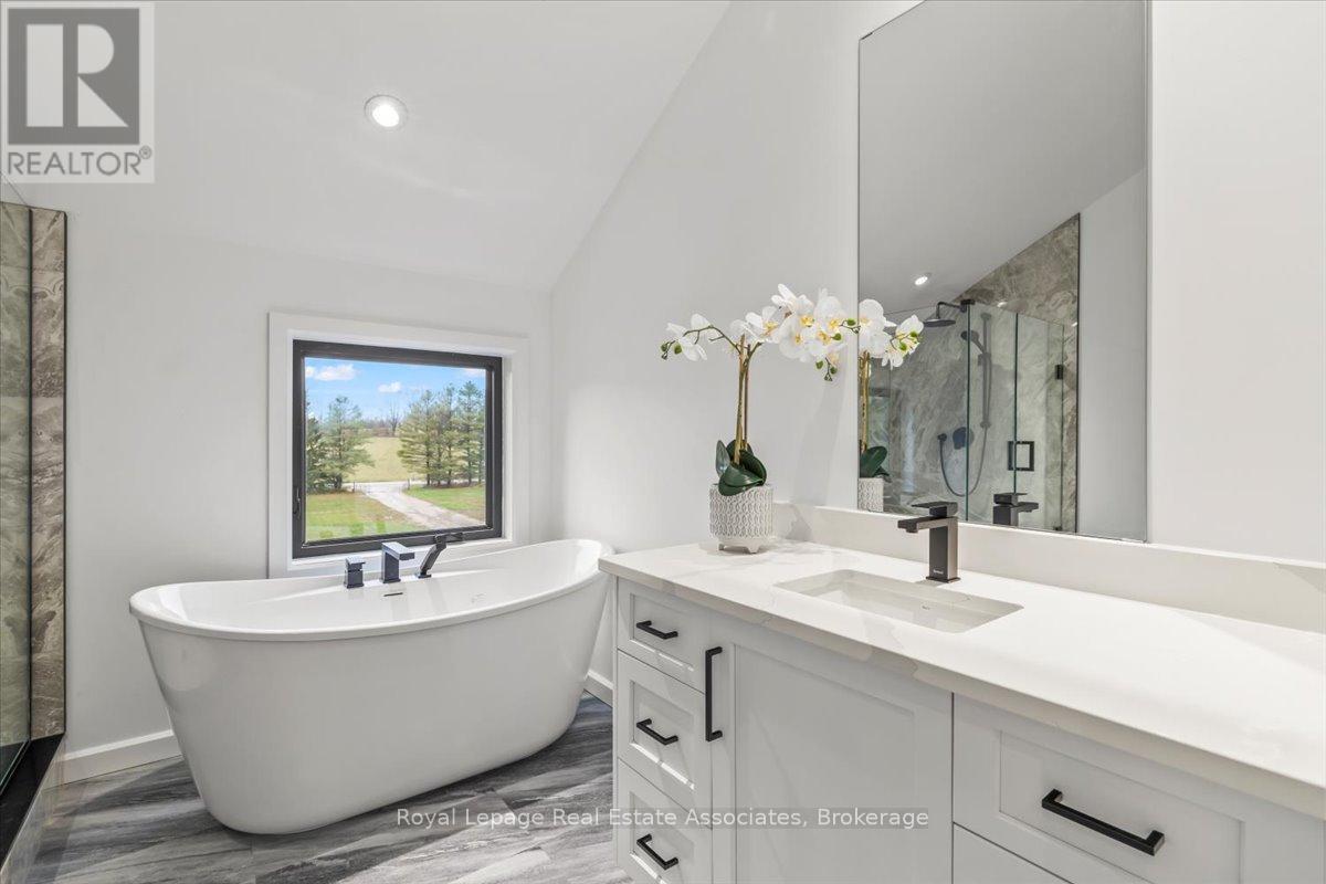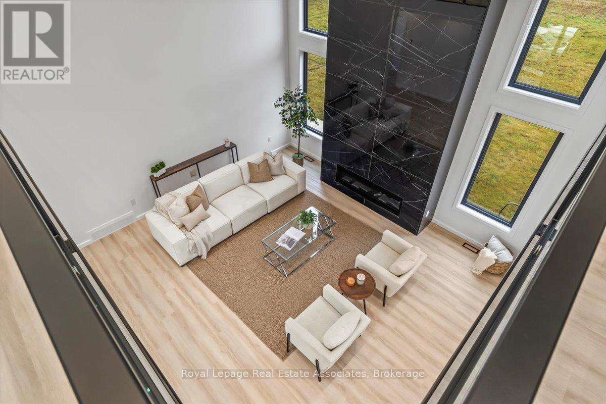 Welcome to this stunning brand-new custom home located on 2.6 acres between Hanover and Durham. Offering over 3,000 square feet of thoughtfully designed living space, this modern 4-bedroom, 4-bath home is truly turn-key with every detail carefully considered.Step inside and be greeted by a bright, open-concept layout featuring a soaring cathedral ceiling and a striking fireplace in the living room. The main floor boasts luxury vinyl flooring and recessed lighting throughout. The contemporary kitchen includes stainless steel appliances, a large centre island, propane stove with pot filler, and ample counter space-perfect for family gatherings and entertaining. The adjoining dining area walks out to the backyard, ideal for enjoying the scenic countryside views.A large mudroom with built-in storage connects to the double car garage, and the main floor laundry adds convenience to everyday living. The primary suite offers his-and-her closets, a walkout to the backyard, and a luxurious ensuite with a glass shower and double-sink vanity.Upstairs, sleek glass railings lead to a spacious loft-an ideal office or family lounge. Three additional bedrooms complete the upper level, including one with a private 3-piece ensuite and another full 4-piece bath.The lower level offers a partially finished space with a 3-piece rough-in and cold room, ready for your personal touch. Outside, enjoy the expansive lot and the added bonus of a 40 x 60 detached shop with a 14 x 14 overhead door-perfect for hobbyists, storage, or a home business.A rare opportunity to own a new, modern country home that blends luxury, function, and space-just minutes to both Hanover and Durham. (id:4555)