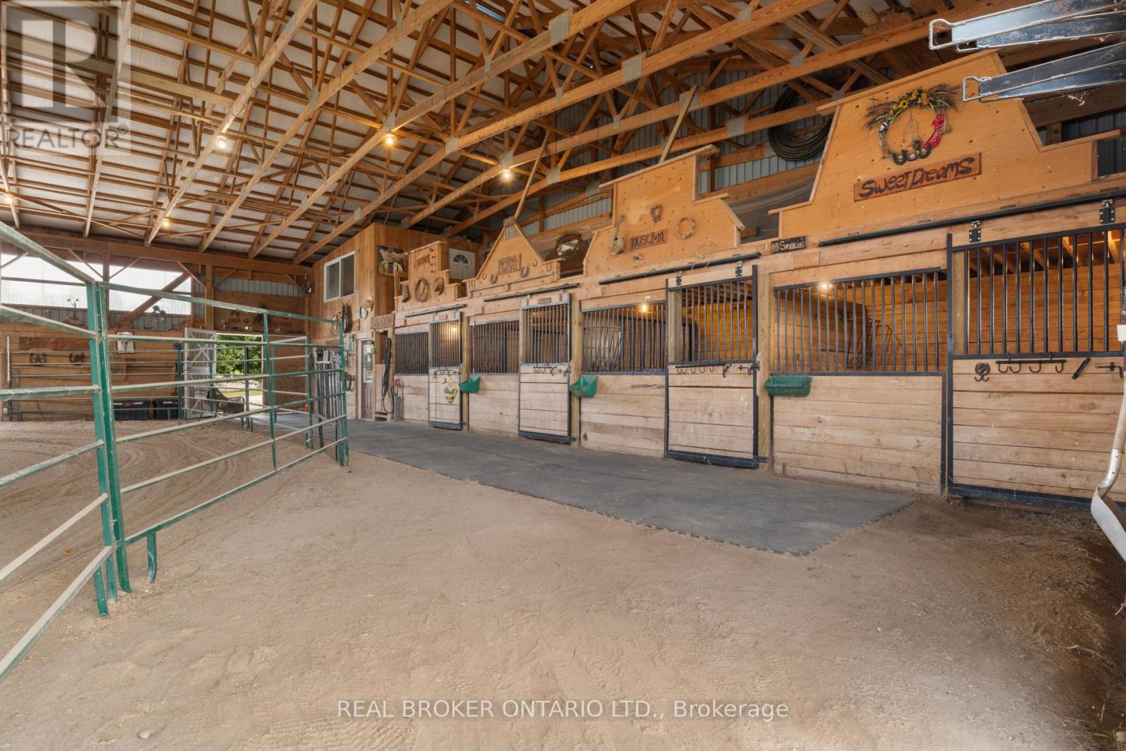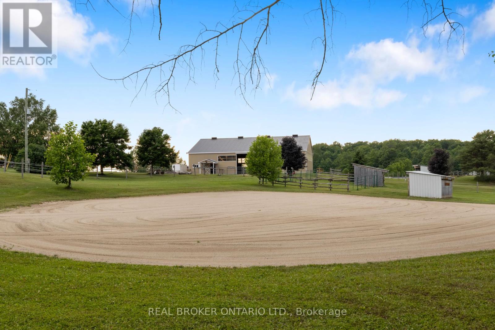 Beautiful 6.43-acre hobby farm offering peaceful country living with excellent equestrian facilities and stunning sunrise and sunset views. The standout feature is the 50' x 80' indoor riding arena with steel siding, four hardwood stalls, tack room, rubber-matted tack-up area, hay storage above stalls, and a viewing room or office overlooking the arena. Three exit points, including an oversized sliding door with motorhome clearance, provide easy access.Outside you'll find a 100' x 150' sand riding ring and three fenced paddocks with run-in sheds and electric fencing-perfect for horses or other animals. Water access is available at the arena, paddocks, and bunkie. The bunkie and stable both have electricity, and the bunkie offers flexible space for a workshop, studio, or guest accommodation.The custom addition of 1994 (Schwindt W Building & Sons Contractors) completes this 3-bedroom, 2-bath ranch bungalow offers approx. 1,885 sq ft of finished living space including a walk-out basement. Features include a wrap-around deck, bright kitchen with walkout to the deck and above-ground pool, spacious living/dining area with large windows, main-floor laundry (potential additional bedroom), and a primary bedroom with ensuite and skylight. Recently added mudroom provides a practical space for boots and riding gear.The finished basement includes a walkout to the backyard, rec room, bedroom, and storage. Outdoor highlights include an above-ground pool with newer heater (2022), new liner and pump (2024), a small pond, and a private road providing access to the back field. Several riding trails are located just minutes away.A rare opportunity for equestrians seeking a well-equipped property in a convenient rural location. (id:4555)