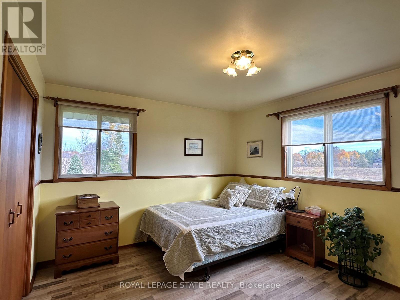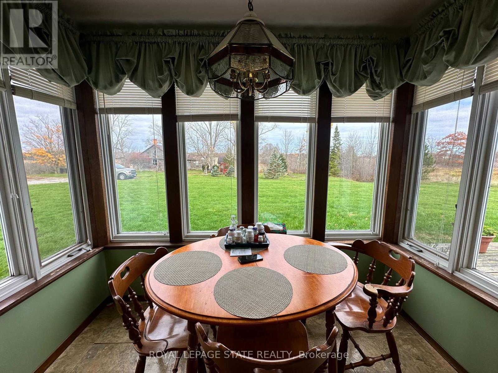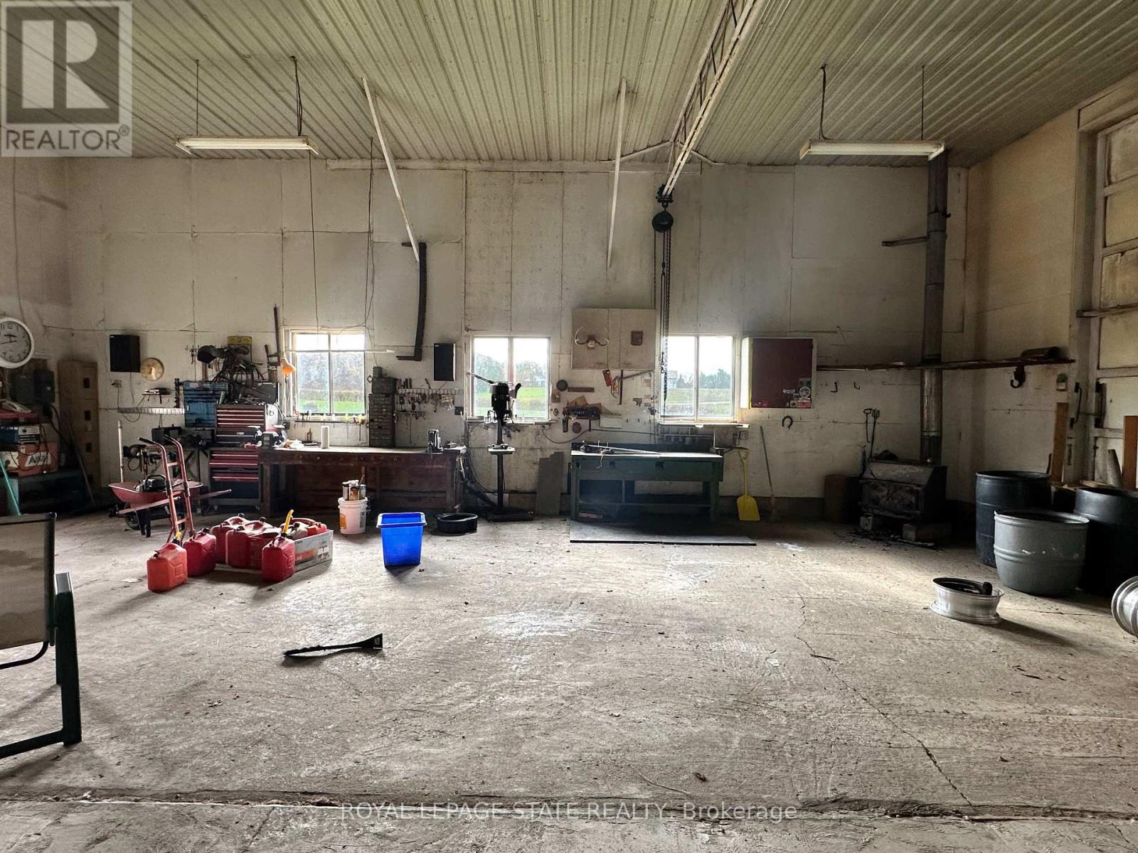 Exceptional 78-acre property, showcasing rolling farmland, creek, and forested area with sugar maples at the back of the property. 49 acres tillable / workable. The residence features an attached two-car garage, an inviting back deck, spacious 40 x 80 detached shop/ barn with hydro and ample parking. Inside, you'll find generous principal rooms, including a bright living room with large windows that flood the space with natural light and a wood-burning fireplace (AS IS). The separate dining area, main floor family room, and a large kitchen with dinette make entertaining effortless. The master bedroom boasts double closets, accompanied by two additional bedrooms, a welcoming front foyer, and a practical mudroom for convenience. The unfinished basement offers loads of potential. The original homestead, dating back to the early 1900s, offers character and charm overlooking the creek. This unique property presents an outstanding opportunity for those seeking privacy, space, and rural charm just minutes from town amenities. (id:4555)