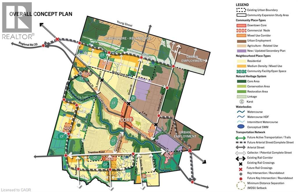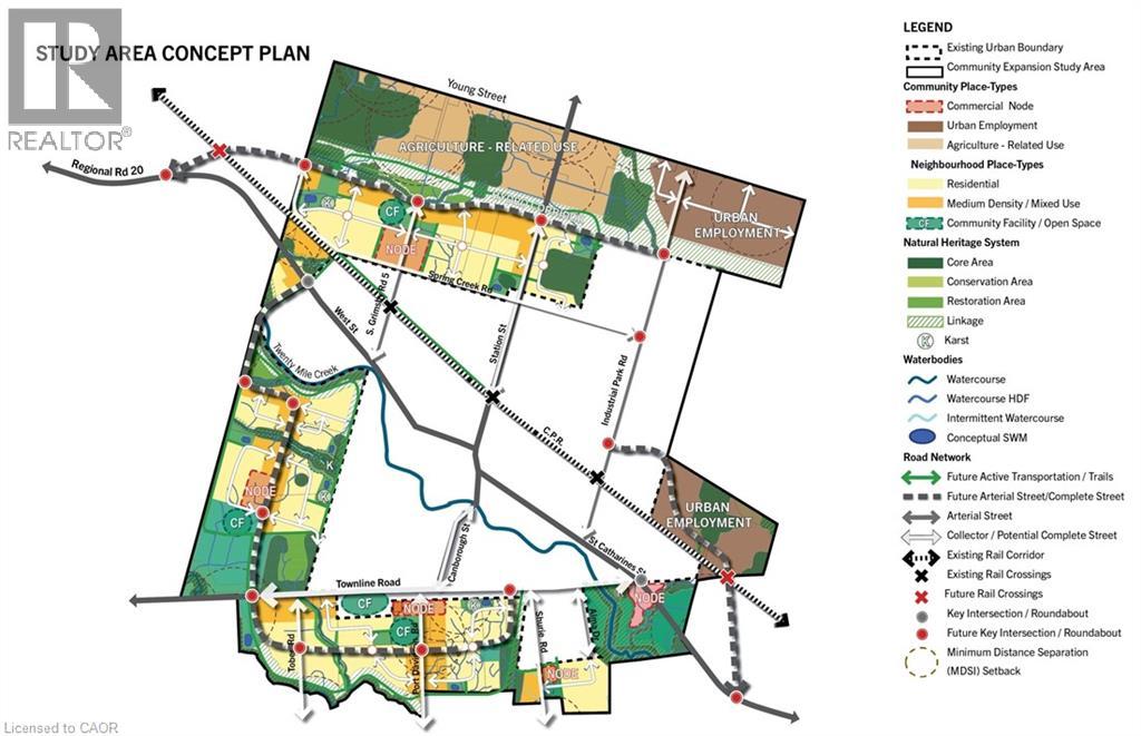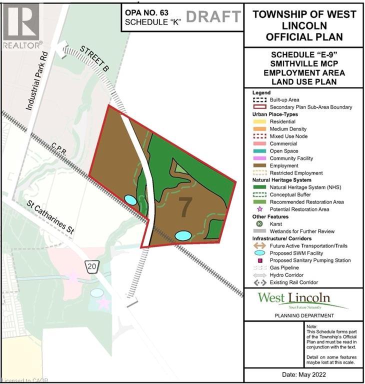 Rare opportunity to acquire approximately 128± acres of land in Smithville, Ontario, with a portion of the property located inside the expanded urban boundary and the balance outside the urban boundary, offering a unique blend of near-term and long-term strategic value. The Township of West Lincoln and the Region of Niagara have identified Smithville as the primary focus for long-term population and employment growth. The land base comprises approximately 60 acres of workable farmland and approximately 68 acres of forest and wetlands, allowing for interim agricultural use while maintaining long-term land banking potential as planning policies evolve. Official Plan Amendments OPA 62 and OPA 63 establish a framework for Smithville’s future growth, identifying approximately 540 hectares of new development lands, with projected growth of approximately 29,030 residents and 7,360 jobs by 2051. Planning documents contemplate a range of land uses within the broader growth area, including employment-related and urban-supportive uses, subject to further approvals. The subject property is identified within Block Plan 7, Phase 2A, with existing zoning and designations including Employment-related planned use, EC zoning, and A zoning. This offering represents a large-scale, well-suited for investors seeking exposure to Smithville’s long-term growth trajectory. (id:4555)