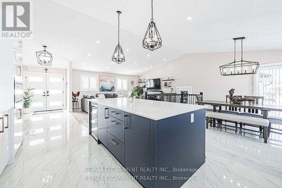 Welcome to this beautifully renovated bungalow nestled on a peaceful court, offering the perfect blend of country tranquility and urban sophistication. Situated on a sprawling 1.15-acre lot, this home boasts a modern design with an inviting open-concept layout, ideal for both relaxation and entertaining. Step inside to discover a bright and airy living space, highlighted by a large kitchen island, sleek finishes, and stylish fixtures. The main floor features three spacious bedrooms and two full bathrooms, providing comfort and convenience for the whole family. Downstairs, the fully finished basement offers additional living space with two more bedrooms, a cozy family room, a dedicated office space, and another full bathroom - perfect for guests or extended family. Outside, enjoy the best of both worlds with a heated 2-car garage, a large built storage shed, and a chicken coop providing fresh eggs daily. The property also features a picturesque small pond, adding to the serene outdoor setting. Located just minutes from urban amenities yet surrounded by nature. (id:4555)