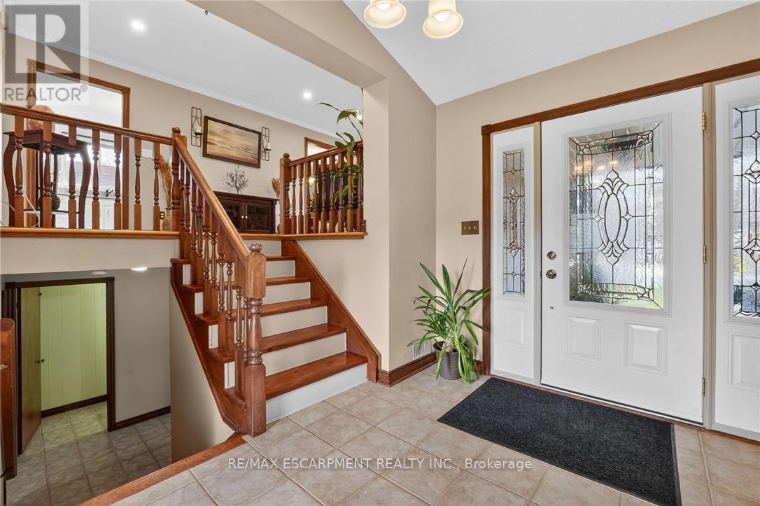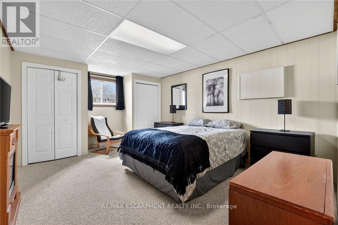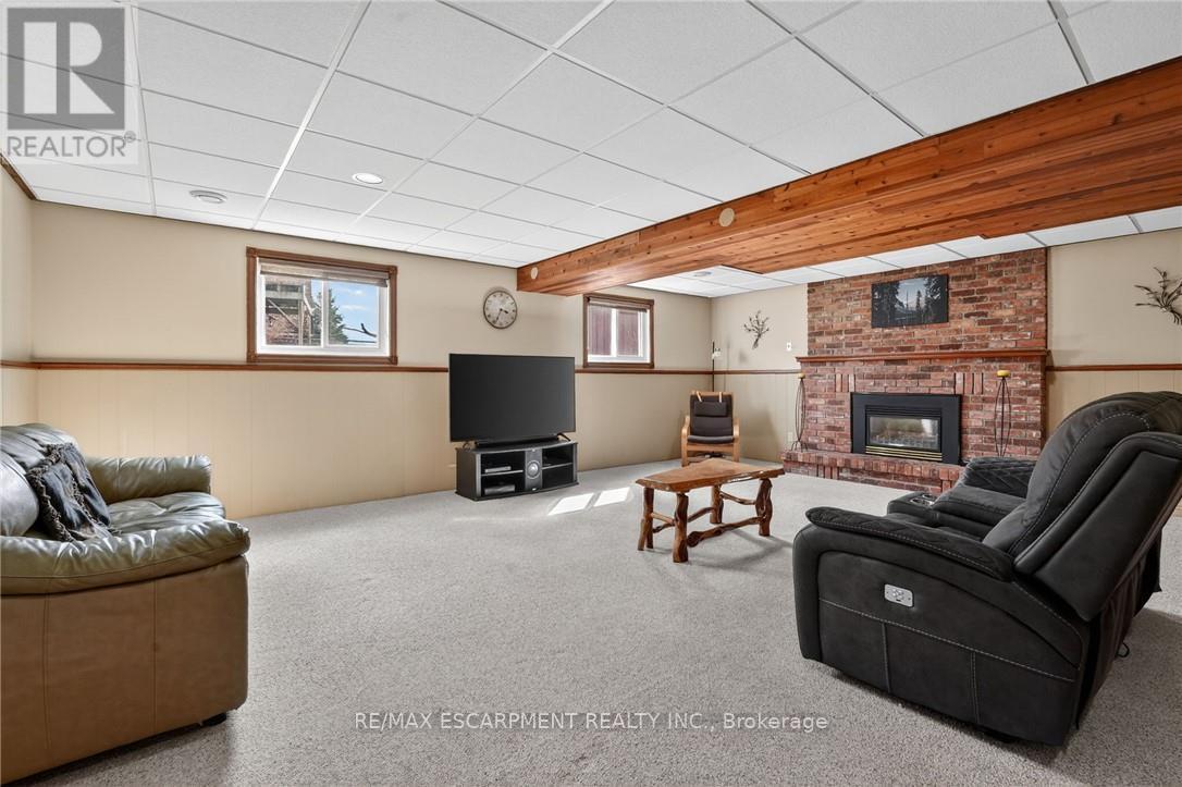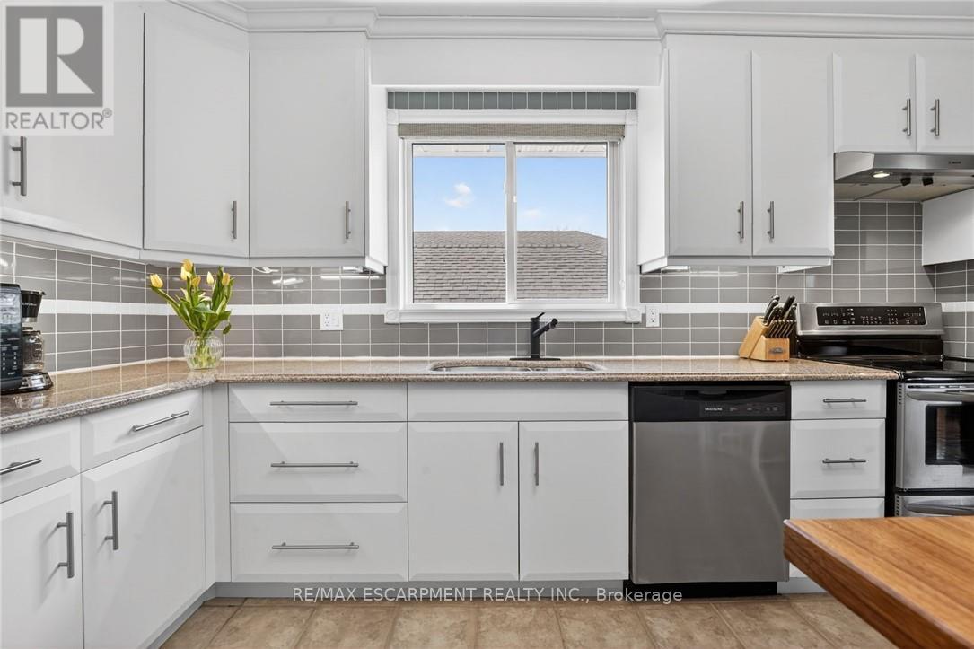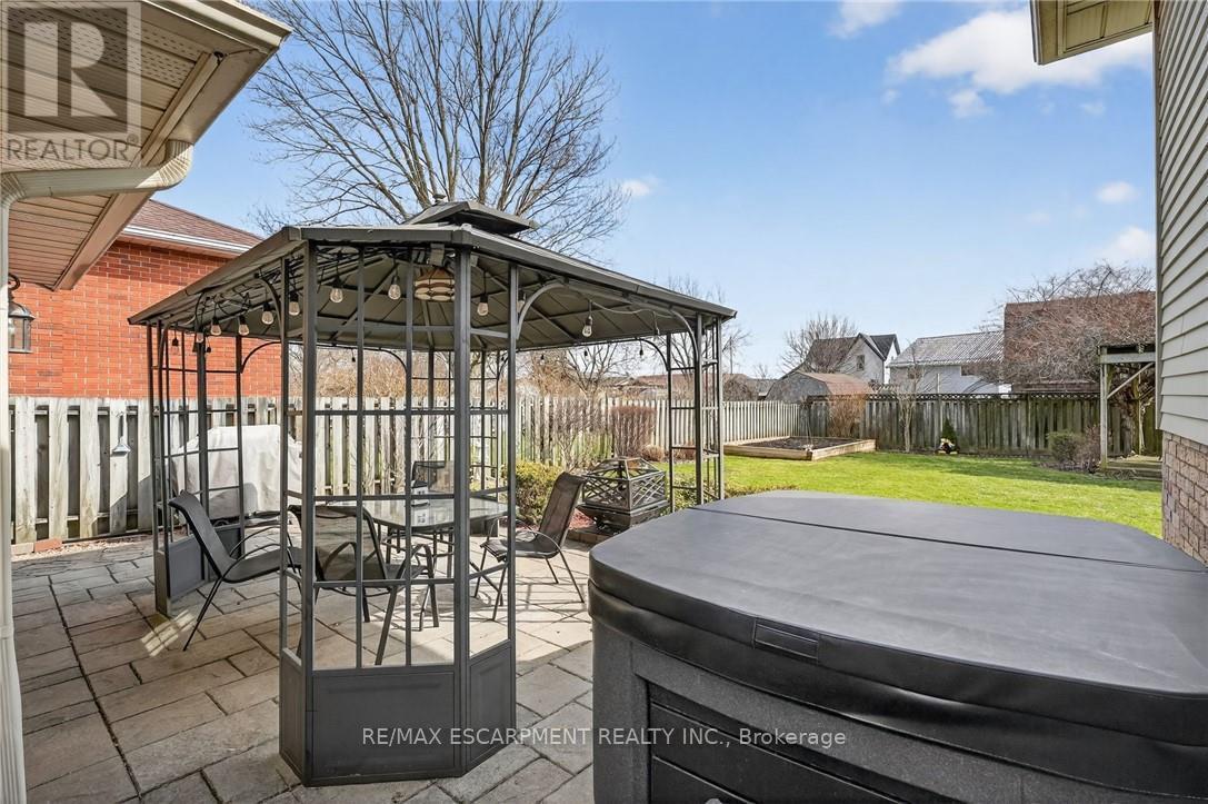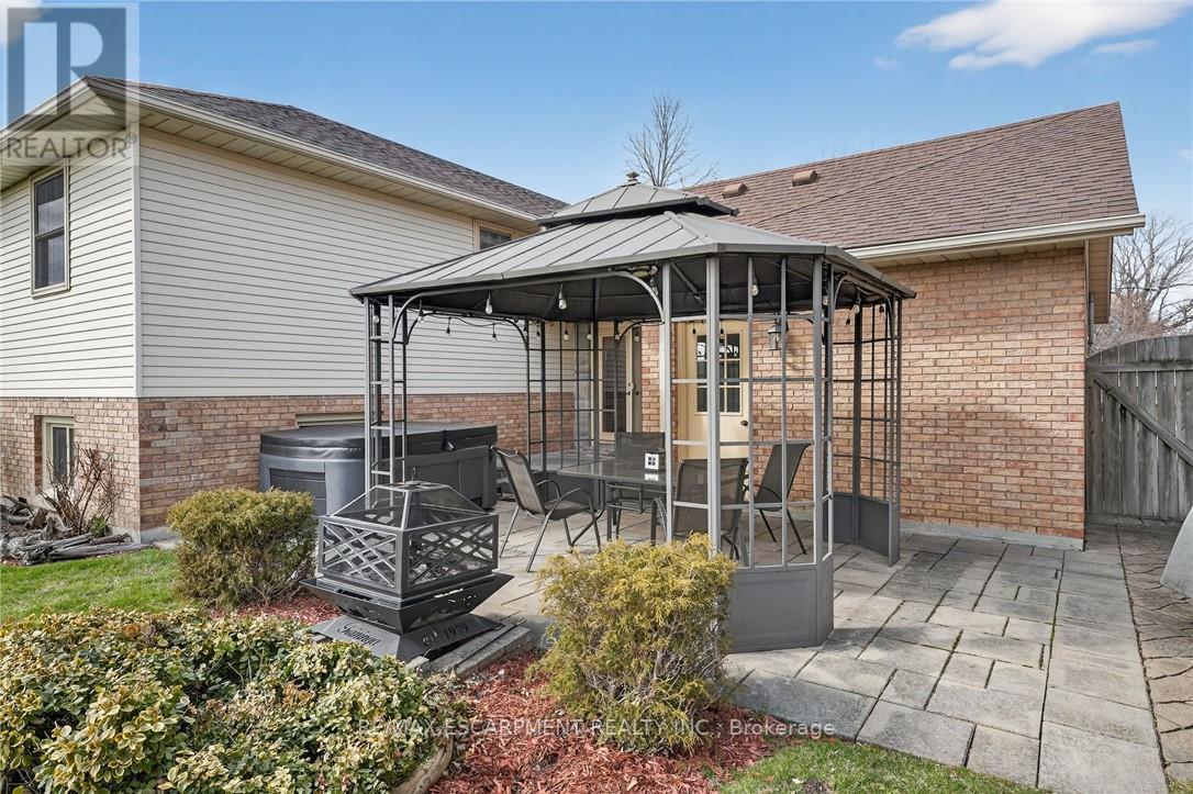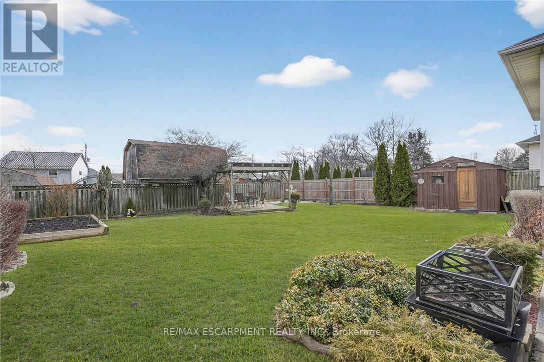 Welcome to this meticulously maintained 3+1 bedroom, 2 full bathroom raised bungalow on a quiet, family-friendly street in Smithville. Arriving at the property, you'll notice the excellent curb appeal with well manicured gardens, an all-brick front, and driveway parking for four vehicles plus an additional parking spot in the attached garage. The fully fenced backyard with fantastic privacy is a great spot to host family and friends - featuring a professionally landscaped patio, two gazebo structures, a soothing water feature, a shed with hydro, and vibrant gardens. Inside, a bright and spacious foyer with a double closet and loads of natural light welcomes you. The main floor showcases hardwood flooring and a professionally renovated kitchen (2021) with granite countertops, stainless steel appliances, soft-close cabinetry, and under-cabinet lighting. Updated vinyl thermal windows throughout enhance comfort and efficiency. Down the hall you'll find three main floor bedrooms and a spacious 4-piece bathroom with a shower/tub combination. The fully finished basement features large above-grade windows for loads of natural light. The basement includes a spacious rec room with a natural gas fireplace, a fourth bedroom, an additional full bathroom, and a laundry area. This immaculate home is ideally located within walking distance to schools and parks, minutes to downtown Smithville, and a 10 minute commute to the QEW! (id:4555)