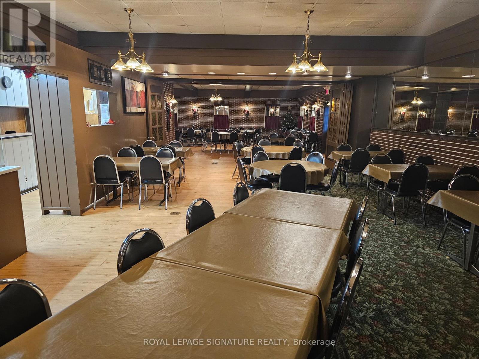 Gervais Restaurant & Tavern is a substantial multi-use property located in the heart of downtown Sturgeon Falls. This impressive commercial and residential complex totals 28,237 sq ft and includes three separate restaurants, three commercial retail units, and sixteen residential apartments. All restaurant businesses are owner-operated and include Gervais Restaurant, Gervais Tavern, and a Country Style location, creating a well-established and diversified income stream. Gervais Restaurant is one of the busiest dining destinations in town, serving popular North American and Chinese cuisine. Gervais Tavern operates as a classic neighbourhood pub complete with pool tables, while the Country Style - no longer paying royalties - remains a central meeting spot for the community's coffee drinkers. A massive shared kitchen services all three restaurants and features four hood systems totaling 42 ft (16 + 16 + 6 + 4), three walk-ins, and even a drive-thru window. The combined liquor license covers an impressive capacity of 441. The three commercial units and all residential apartments are fully tenanted and generating rental income, offering strong stability for ownership. With its scale, location, and diversified revenue, this property presents an exceptional opportunity for both continued operation and future redevelopment potential. Please do not go direct or speak to staff. (id:4555)