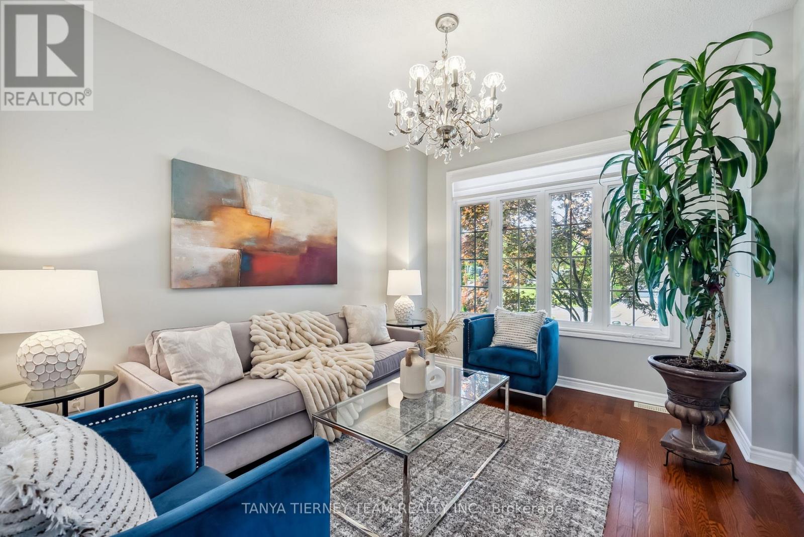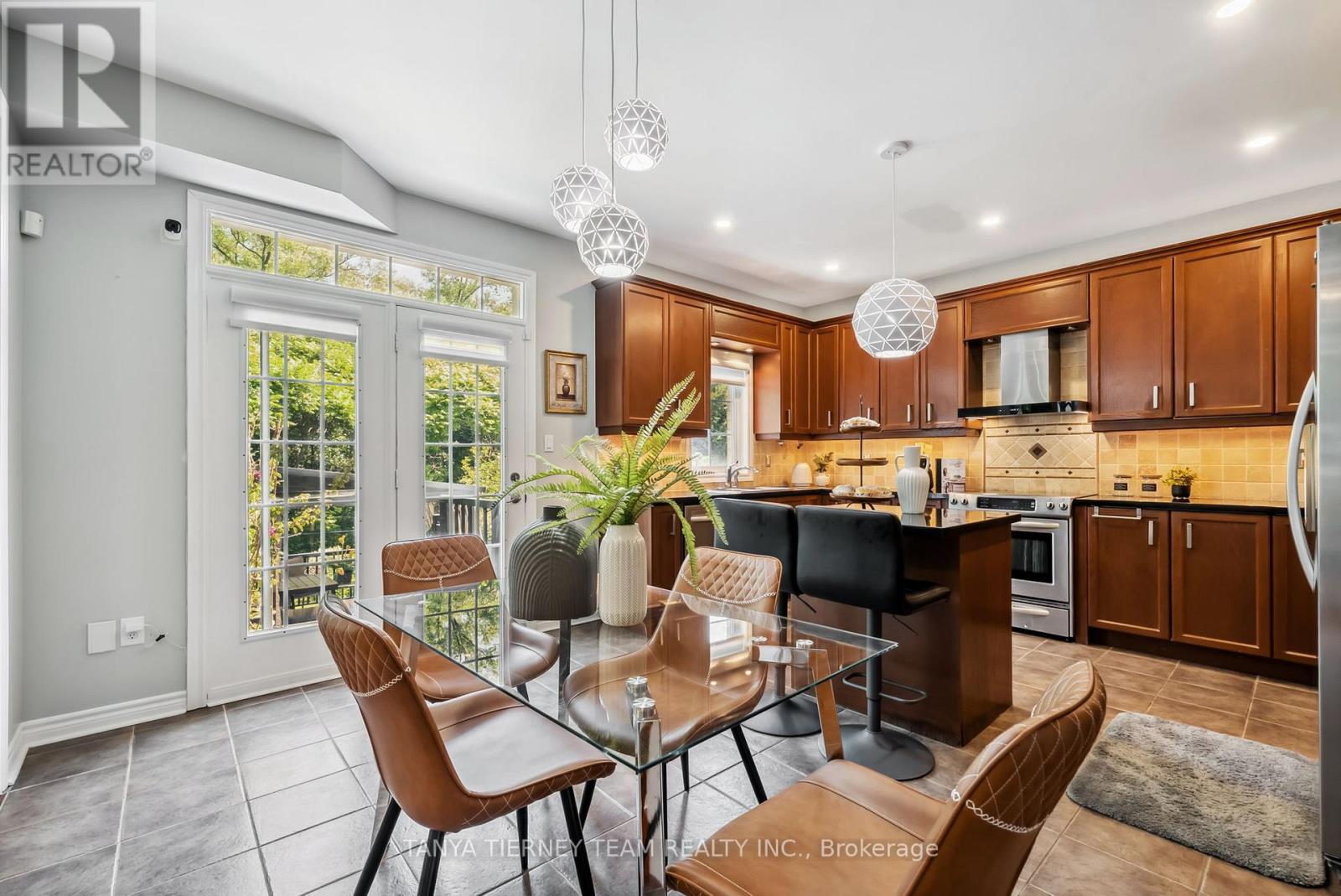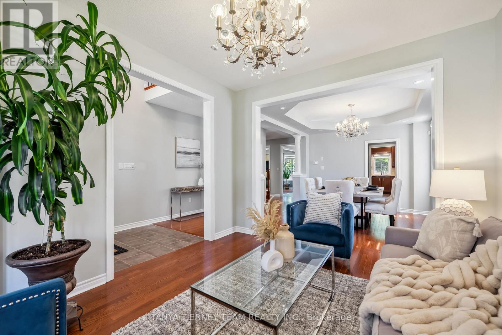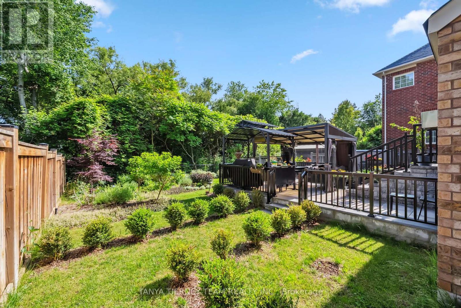 Prestigious executive home on a premium treed ravine lot, offering unparalleled privacy and resort-style living. This luxurious 4+1 bedroom home showcases manicured perennial gardens, gated access on both sides, and a serene wooded pond - your own private sanctuary! Step inside to a grand cathedral-ceiling foyer and an elegant open-concept main floor appointed with rich hardwood, pot lights, wrought-iron staircase, and 9 ft ceilings. Entertain in the sophisticated formal living and dining rooms with coffered ceiling, or relax in the refined family room featuring a custom gas fireplace. The gourmet chef's kitchen impresses with quartz counters, ceramic backsplash, centre island with breakfast bar, pantry, and dedicated servery with walk-out to the tranquil backyard oasis. Main floor laundry offers granite counters, sink and garage access. The upper level boasts four generous bedrooms - each with it's own ensuite. The lavish primary retreat offers coffered ceiling, his & hers walk-in closets with organizers, and a spa-inspired 5-pc ensuite with a deep soaker tub. The fully finished lower level provides exceptional versatility showcasing a bright in-law suite complete with above-grade windows, full kitchen, large rec room with built-ins and surround-sound wiring, 5th bedroom, dining area and 3-pc bath. Nestled steps from top schools, parks, trails, major retailers, and highway access - this is luxury living at it's finest! (id:4555)