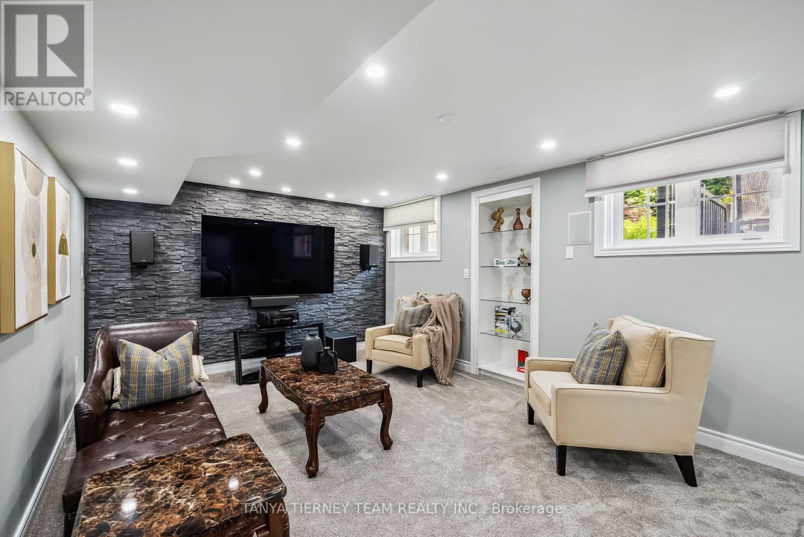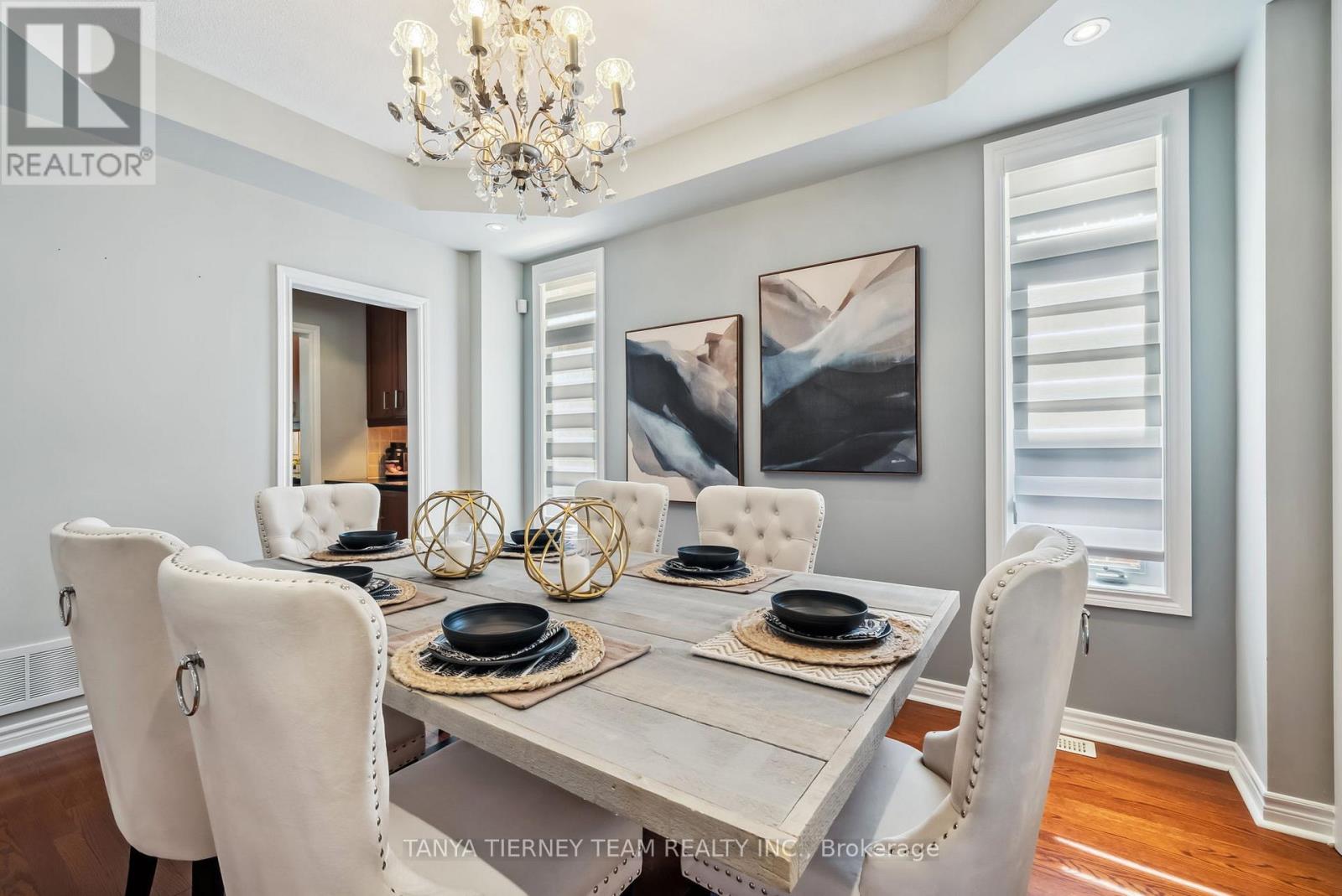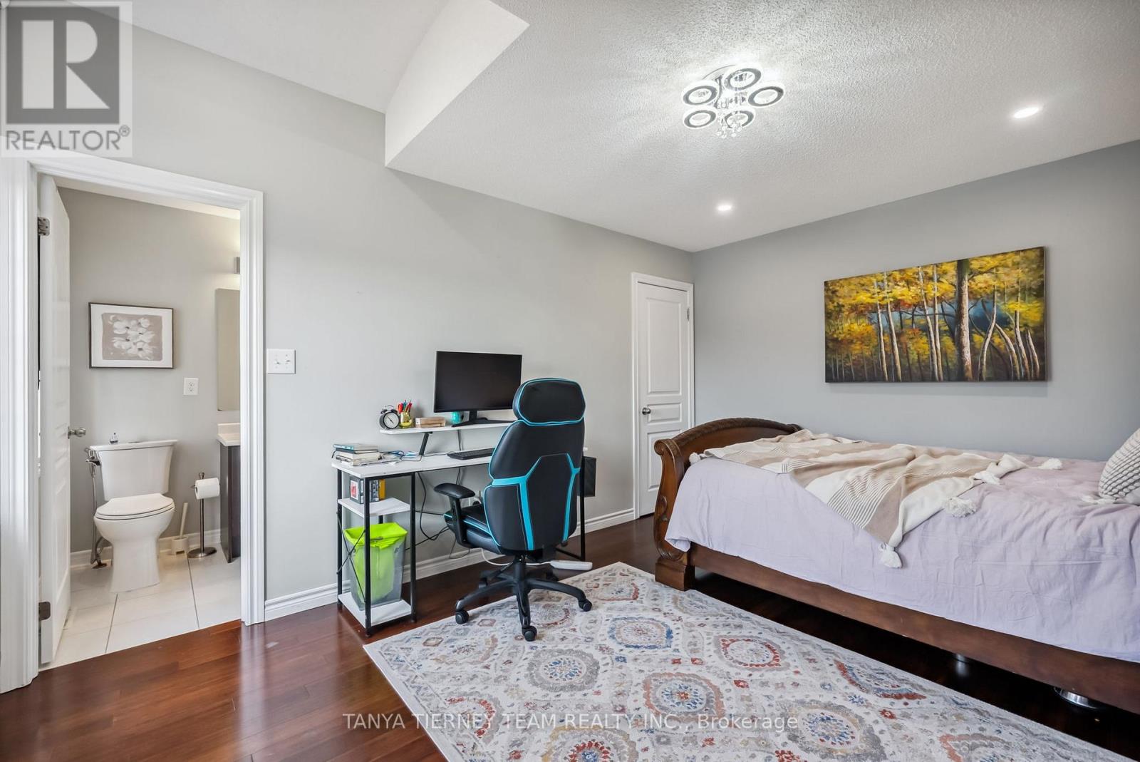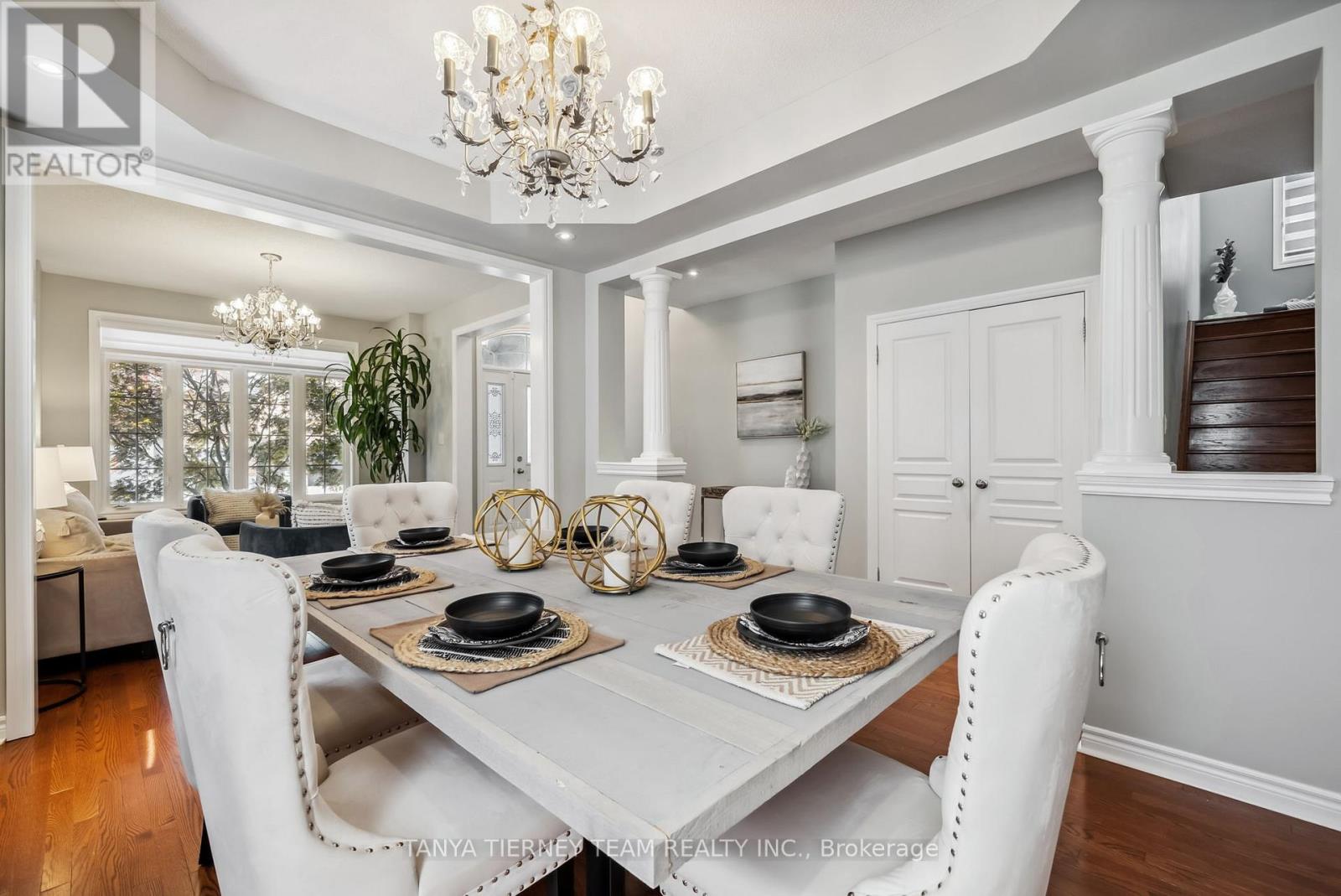 Prestigious executive home on a premium treed ravine lot, offering unparalleled privacy and resort-style living. This luxurious 4+1 bedroom home showcases manicured perennial gardens, gated access on both sides, and a serene wooded pond - your own private sanctuary! Step inside to a grand cathedral-ceiling foyer and an elegant open-concept main floor appointed with rich hardwood, pot lights, wrought-iron staircase, and 9 ft ceilings. Entertain in the sophisticated formal living and dining rooms with coffered ceiling, or relax in the refined family room featuring a custom gas fireplace. The gourmet chef's kitchen impresses with quartz counters, ceramic backsplash, centre island with breakfast bar, pantry, and dedicated servery with walk-out to the tranquil backyard oasis. Main floor laundry offers granite counters, sink and garage access. The upper level boasts four generous bedrooms - each with it's own ensuite. The lavish primary retreat offers coffered ceiling, his & hers walk-in closets with organizers, and a spa-inspired 5-pc ensuite with a deep soaker tub. The fully finished lower level provides exceptional versatility showcasing a bright in-law suite complete with above-grade windows, full kitchen, large rec room with built-ins and surround-sound wiring, 5th bedroom, dining area and 3-pc bath. Nestled steps from top schools, parks, trails, major retailers, and highway access - this is luxury living at it's finest! (id:4555)