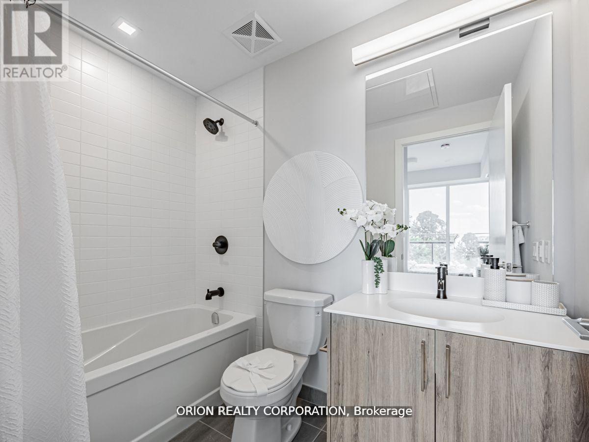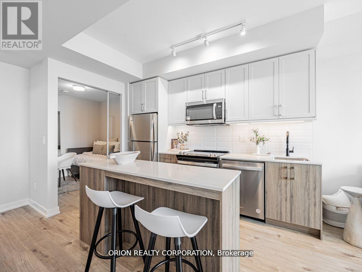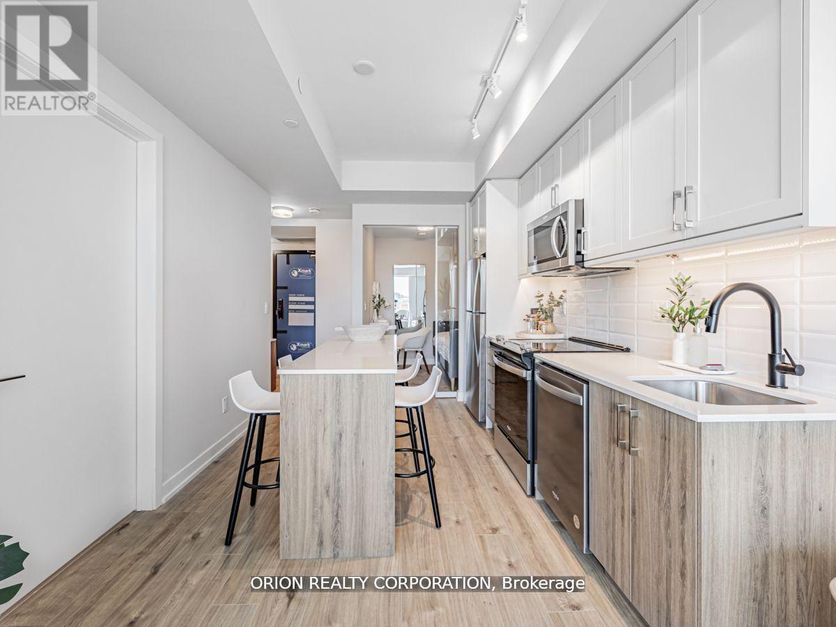 You will not be disappointed once you step into the well-designed "Brock" suite at Station No 3. This open-concept 625 sq. ft. suite offers 1-bedroom + spacious den with glass door, and 2 washrooms. Floor-to-ceiling windows provide maximum natural light throughout, with walk-out to your balcony from the living room.Do not miss your opportunity to own at Station No 3. Modern living in the heart of charming downtown Whitby. Brand new boutique building by award winning builder Brookfield Residential. Take advantage of over $100,000 in savings now that the building is complete & registered. Enjoy beautiful finishes including kitchen island, quartz countertops, soft close cabinetry, ceramic backsplash, upgraded black Delta faucets, 9' smooth ceilings, wide-plank laminate flooring & Smart Home System. Fantastic location with easy access to highways 401, 407 & 412. Minutes to Whitby Go Station, Lake Ontario & many parks. Steps to several restaurants, coffee shops & boutique shopping. Immediate or flexible closings available. 1 parking & 1 locker included. State of the art building amenitiesinclude, gym, yoga studio, 5th floor party room with outdoor terrace, BBQ & fire pit, 3rd floor south facing courtyard with additional BBQ's & loungers, co-work space, pet spa, concierge & guest suite. (id:4555)