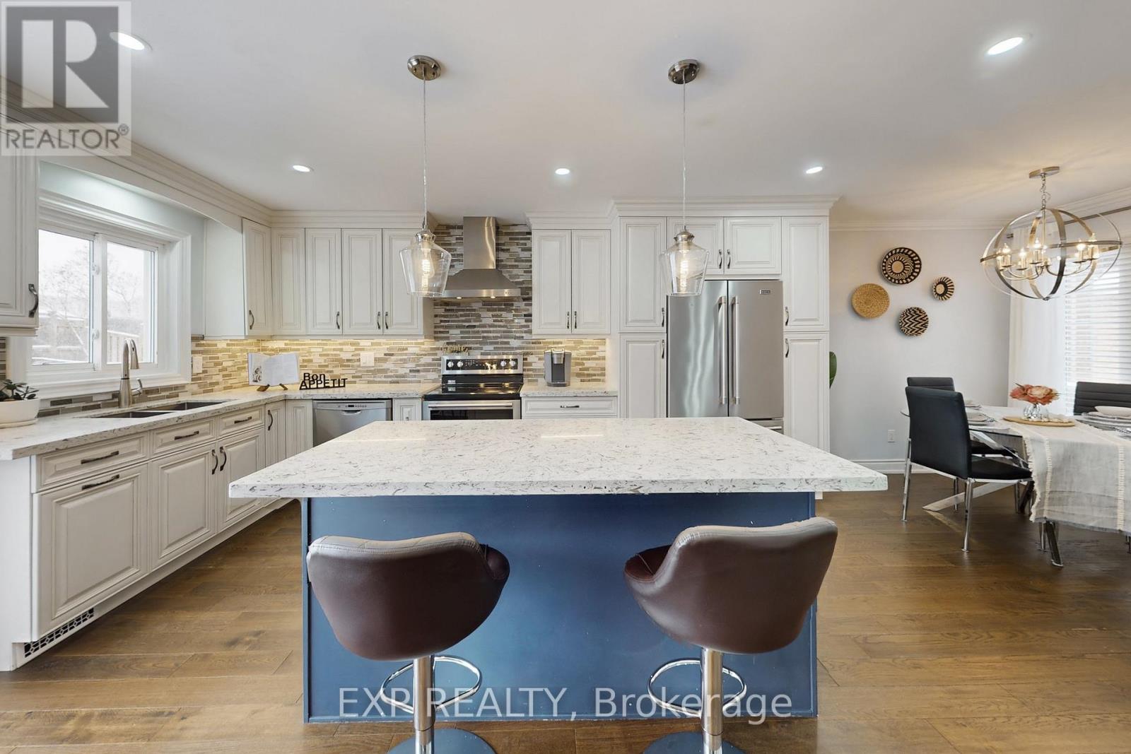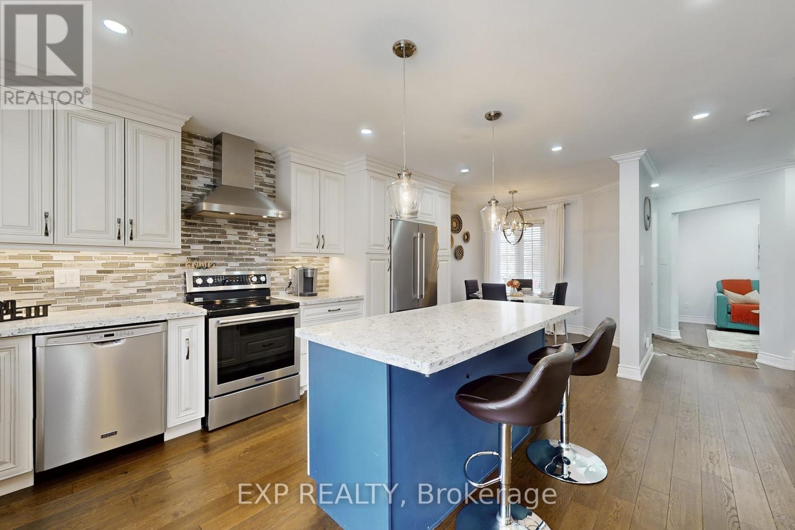 Welcome To This Beautifully Maintained 3+1 Bedroom 4-Bathroom Home Featuring A Custom Kitchen With Quartz Countertops Large Island Stainless Steel Appliances And Elegant Cabinetry *The Open-Concept Layout Is Enhanced By Stylish Flooring And Pot Lights Throughout *The Spacious Primary Bedroom Boasts A Newly Built 3-Piece Ensuite (2025) With A Modern Glass Shower *The Finished Basement Offers A Feature Wall With Built-In Shelving Ample Living Space And Potential For A Separate Entrance *Enjoy Added Security With A 5-Camera System And A Touchpad Key Lock Plus A New Washer And Dryer (2023) *Step Outside To A Private Backyard With A Deck And Shed *No Sidewalk Allows For 4-Car Parking *Situated In A High-Demand School Zone And Just Minutes To Hwy 401 Transit Plazas And Parks *This Home Blends Comfort Style And Convenience! ** This is a linked property.** (id:4555)