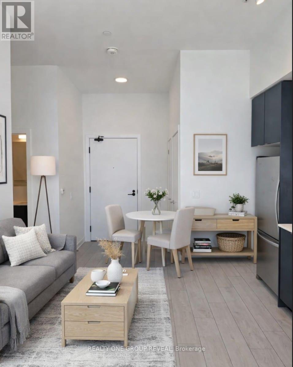 Great Location! Situated steps from the Whitby GO Station and Highway 401 Access, this modern building boasts a Fitness Centre, Yoga Studio, Collaborative Workspaces, Bicycle Wash Station, Dog Wash Station, Event space with Barbeque. This One Bedroom plus Den unit faces South which drenches the unit in fabulous natural light. High ceilings lend to the spacious feeling of the Open Concept Living Space featuring Built in Appliances, in-suite private Laundry, Large Closet in the Principal Bedroom and a separate Den area suitable for a Home Office, Storage or Meditation area. Step onto the Juliette Balcony off the Living Space and Primary. One Parking spot included as well as Internet. (id:4555)