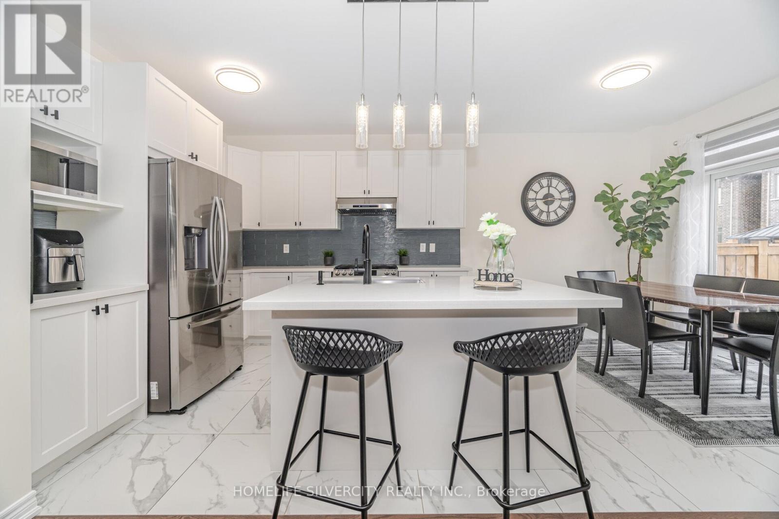 Welcome to this beautifully upgraded detached home, offering 2,150 sq. ft. of bright and functional living space. With a striking stone façade and covered porch, this residence showcases impressive curb appeal. Inside, soaring 9 ft. ceilings on both the main and second levels, paired with oversized windows, fill the home with natural light. The open-concept main floor features a welcoming family room and a gourmet kitchen with quartz countertops. A separate basement entrance and approximately $50,000 in upgrades add exceptional value. Upstairs, spacious bedrooms provide comfort and privacy, designed with today's modern family in mind. Outside, enjoy a large, fully fenced backyard-perfect for entertaining or quiet relaxation. Ideally located near Heber Down Conservation Area, shopping, new schools, and offering quick access to highways and GO Transit, this home blends elegance, convenience, and lifestyle. (id:4555)