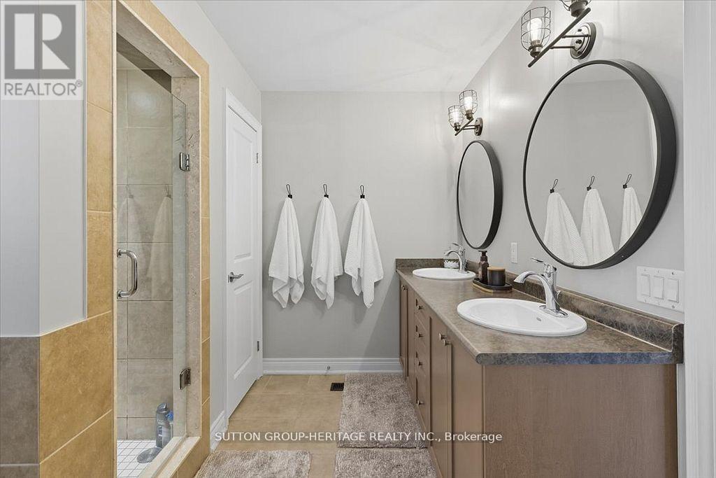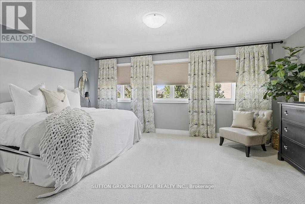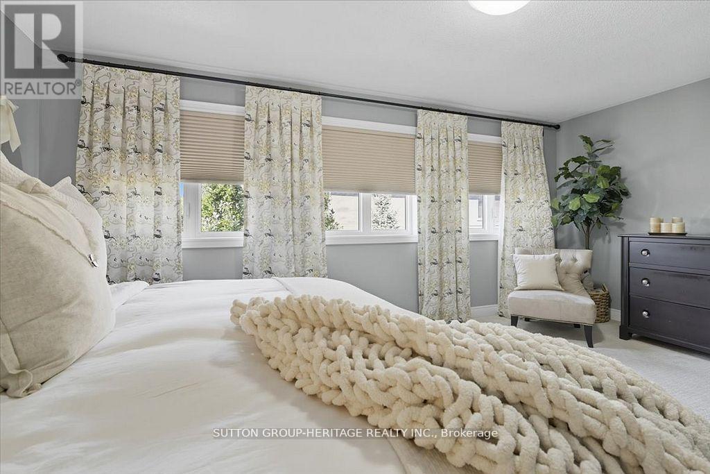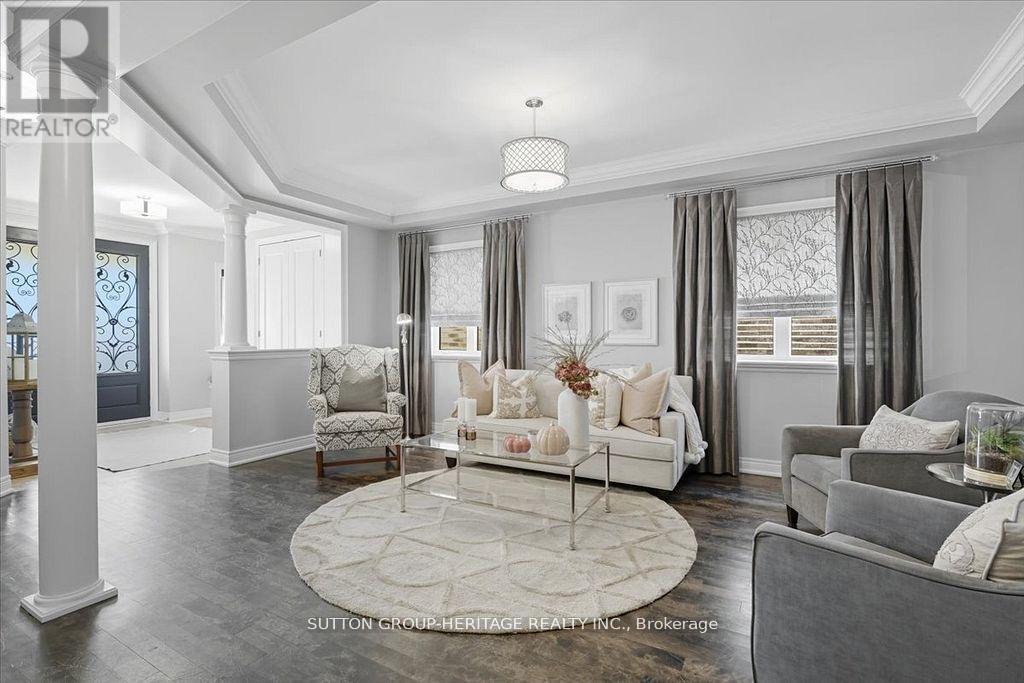 Beautifully crafted Highmark Home - four-bedroom, four-bathroom residence in one of Whitby's most exclusive neighbourhoods. Curb appeal is undeniable with a timeless brick and stone exterior, an asphalt driveway framed with tumbled stone pavers, new garage doors, and thoughtfully designed perennial gardens enhanced by maturing trees including columnar oak, spruce, and a Japanese maple. The fully fenced backyard is ideal for entertaining with a custom deck, pergola, and shed, while natural gas connections for both a barbecue and fire table make it the perfect space to gather year-round. An in-ground sprinkler system ensures the grounds are easy to maintain. Inside, the home showcases elegant details and functional design. The main floor features hardwood flooring throughout, extending up the hardwood staircase and across the upper hallway. Soaring nine-foot ceilings and extended eight-foot doors and doorways enhance the sense of space, while coffered ceilings in the living room and family room add architectural character. The kitchen is both stylish and practical, complete with quartz countertops, pantry, double sink with garburator, pot lights, pendant lighting, and a breakfast bar. The mudroom, with direct access to the garage, offers excellent storage and organization for busy households. Upstairs, the primary suite provides a private retreat with a large walk-in closet and a luxurious five-piece ensuite. The second bedroom includes its own four-piece ensuite, while the third and fourth bedrooms share a spacious five-piece Jack-and-Jill bath. Modern conveniences include electric vehicle readiness with a 240V outlet and breaker space for a level two charger. Located close to Highway 407 for easy commuting, and minutes to schools, parks, and shopping, this home offers the perfect blend of luxury, convenience, and community living. Detailed features room by room is attached. (id:4555)