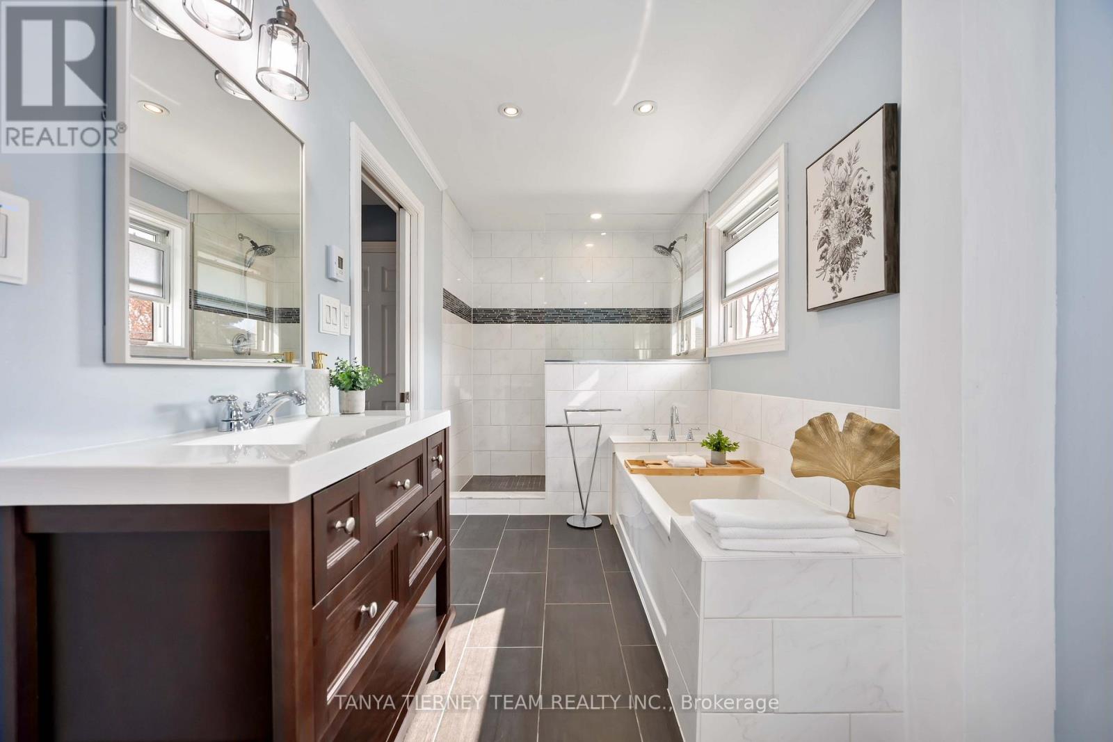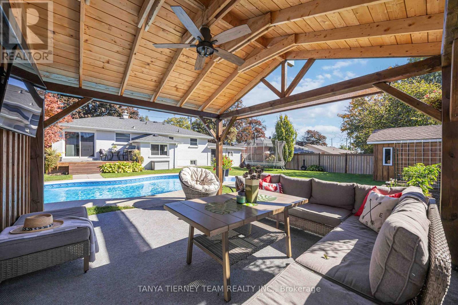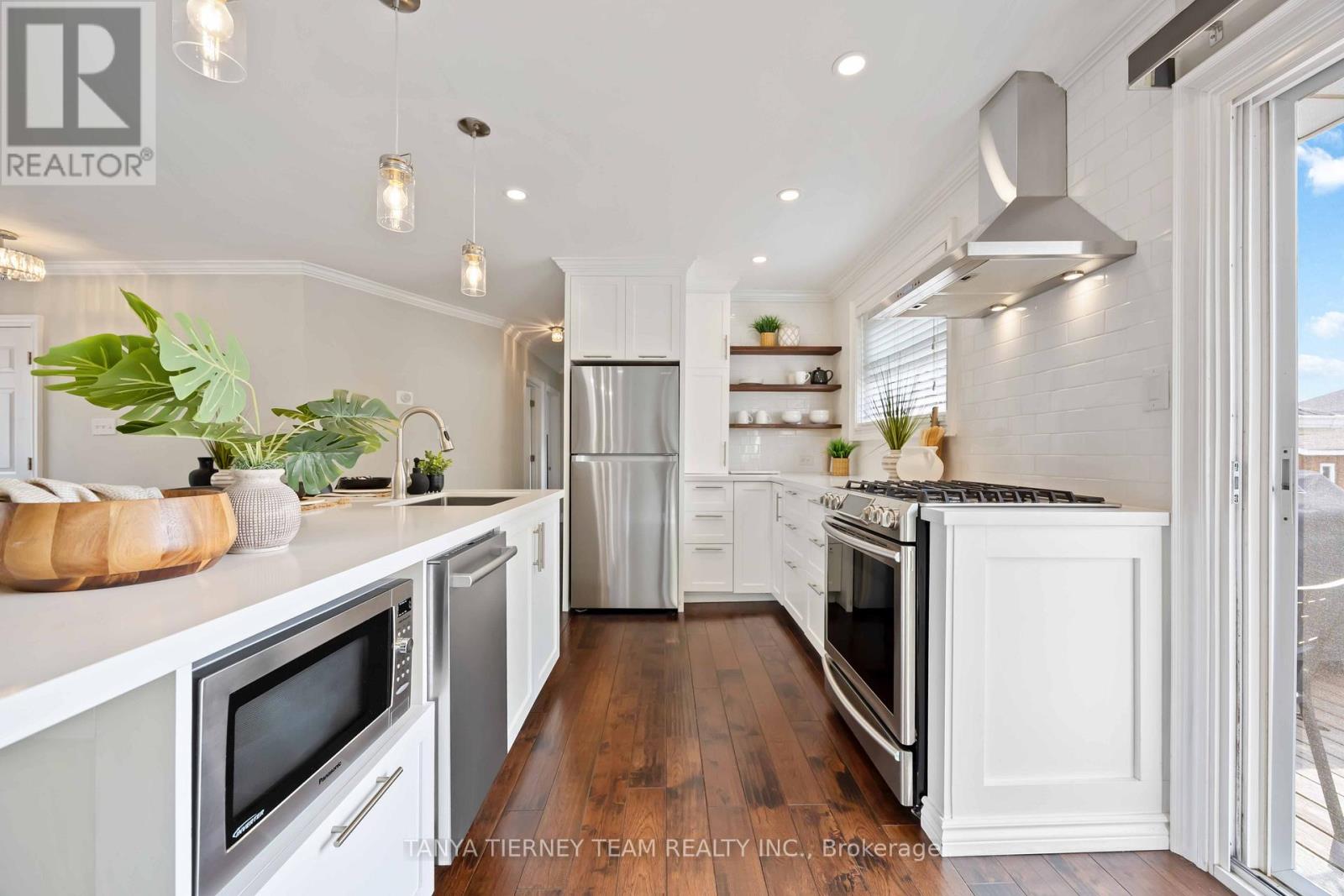 Rarely offered Old Brooklin bungalow nestled on a mature 75x108 ft lot with inground pool & hot tub! This beautifully updated family home features a sun filled open concept design featuring extensive hardwood floors, crown moulding, large windows & more. The spacious family room is open to the renovated kitchen complete with quartz counters, centre island with breakfast bar & pendant lighting, subway tile backsplash, stainless steel appliances including gas stove. The breakfast area offers a sliding glass walk-out to the private backyard oasis with an entertainers deck, relaxing hot tub, inground saltwater pool, gas BBQ hookup, large garden shed with hydro, gazebo with additional shed with hydro, interlocking walkway, lush raised garden beds & convenient access to the garage & mudroom. The primary retreat boasts his/hers closets & 4pc semi ensuite with heated floors. Additional living space in the fully finished basement with above grade windows, spacious rec room with wainscotting, laundry area, 3pc bath & 3rd bedroom. Drywalled & insulated garage with 2 separate entries & race track flooring to house all your toys! Situated steps from schools, parks, transits, downtown Brooklin shops, the new Longos plaza & easy hwy 407/412 access for commuters! (id:4555)