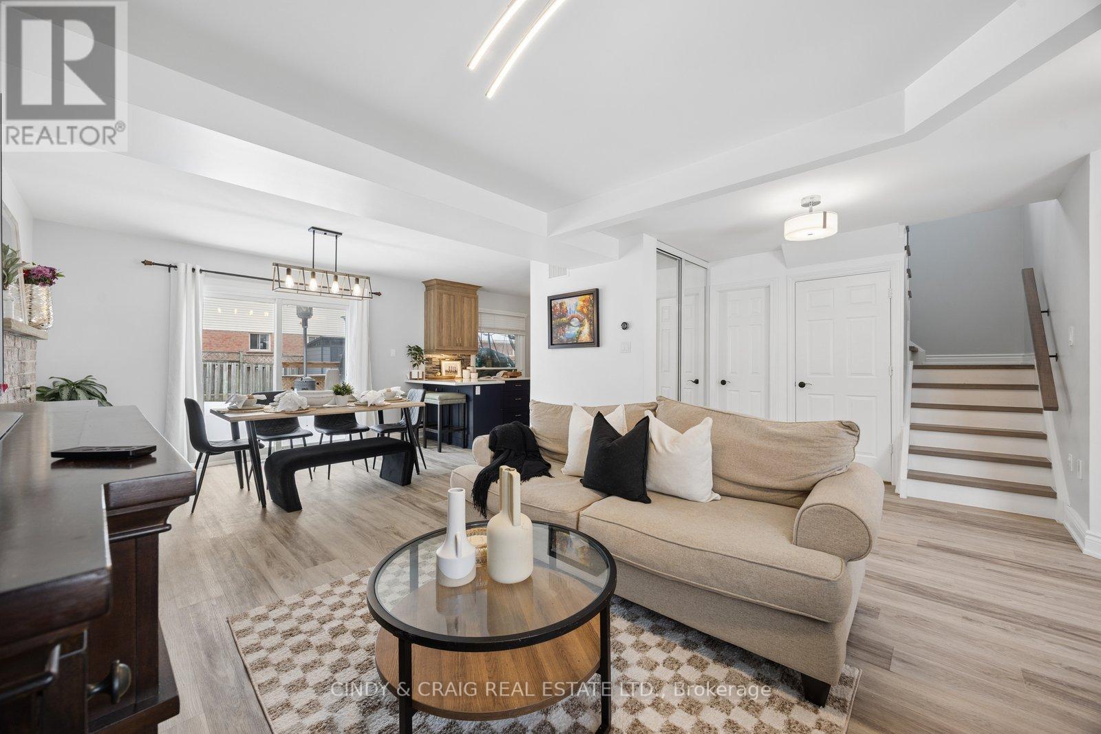 Set in a quiet, established, family-friendly neighbourhood, this updated detached home offers 3+1 bedrooms and 3 bathrooms complemented by a partially finished basement. The main floor features an open-concept layout with smooth ceilings and updated flooring, creating a seamless flow through the principal rooms and excellent natural light. This home delivers $200K in upgrades (2022): a brand-new designer kitchen, three custom-designed bathrooms, new stairs and flooring, and a custom primary bedroom closet. The home was repainted (2025) and the roof replaced (2022). The kitchen serves as a functional centerpiece with quartz countertops, large pantry storage cabinets, a brand-new stove (2026). Updated appliances include a KitchenAid refrigerator (2020) and a Bosch dishwasher (2020) - well-equipped for everyday cooking and entertaining. Outdoor living extends the home's versatility with interlocking stone in the front and back, a lawned backyard, a 14x20 deck (2022), a 10x12 gazebo, and a brand-new shed (2022) - organized, usable areas for dining, play, and seasonal enjoyment. Brand new Garage door (2019). The partially finished basement provides additional flexible living space - ideal for a recreation area, media room, home office, gym, or playroom - and is adaptable to evolving household needs. Mechanicals: furnace, water heater, and air conditioner are owned in full. With its open-concept main floor, designer finishes, and thoughtfully upgraded interior and exterior spaces, 107 Hemingford Place presents a move-in-ready opportunity in a desirable Whitby community - offering a combination of modern design and practical function. (id:4555)