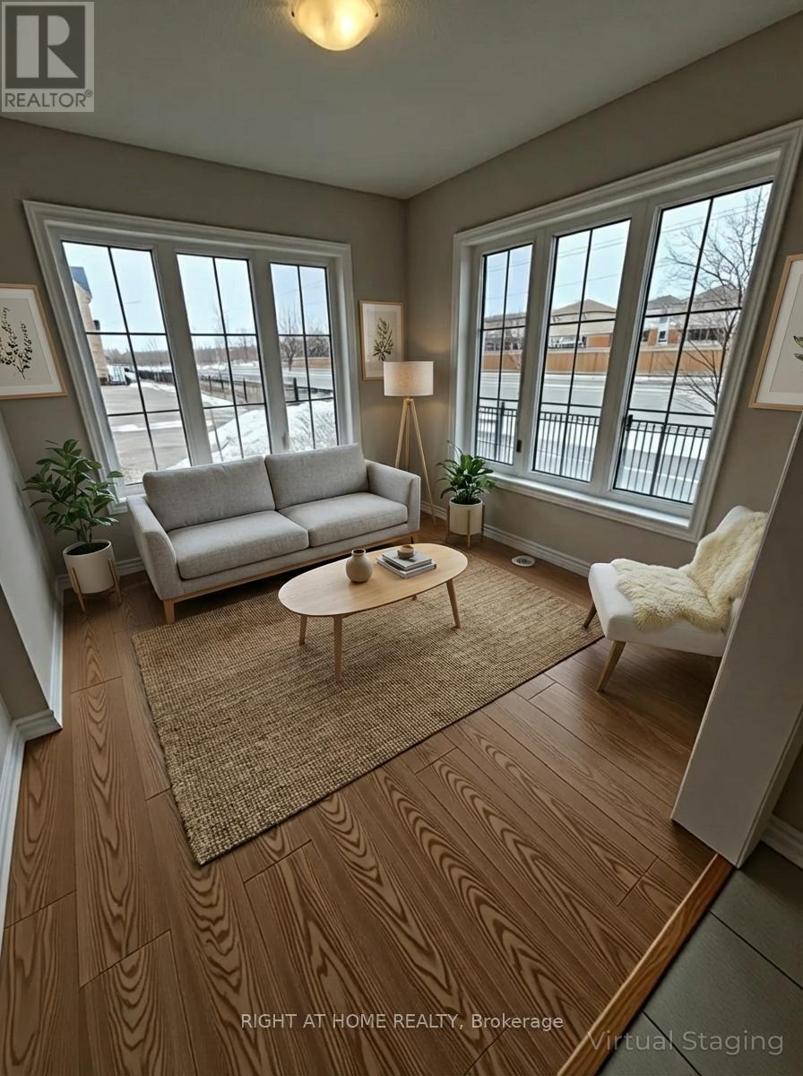 Welcome to this beautifully maintained freehold end-unit townhome in the heart of Whitby, located in the highly sought-after Rolling Acres community. This 3-storey home offers a bright, thoughtfully designed layout that perfectly balances comfort and modern living, featuring engineered hardwood flooring throughout. The main floor includes a versatile office space-ideal for remote work, studying, or a family room-along with a conveniently located laundry room. Head up to the second floor and you'll find an open-concept living and dining room filled with natural light from multiple windows. The kitchen truly shines with its elegant cabinetry, quartz countertops, center island, stainless steel appliances, and a walkout to a private balcony-perfect for morning coffee or relaxing evenings. A handy 2-piece powder room completes this level. The top floor offers a spacious primary bedroom with a walk-in closet and ensuite, while the second bedroom features charming arched windows that add character and warmth. A third bedroom provides the flexibility you need-whether for family, guests, or a home office. Ideally located close to schools, parks, shopping, restaurants, and with quick access to Hwy 412/401 and Whitby GO Station, this home offers comfort, style, and exceptional convenience. Please note that the images in this listing are artistically rendered using AI and advanced digital imaging tools to help visualize the property's potential and design. (id:4555)