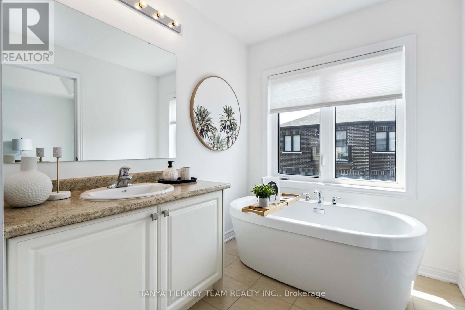 Lakeside living at Whitby's luxurious Waterside Villas! Fieldgate-built 3-storey, 3 bed, 3 bath family home featuring a rare double car garage. The open-concept main floor offers 9 ft ceilings, hardwood flooring in the living/dining area, and a spacious kitchen with stainless steel appliances, breakfast bar, and breakfast area with a walk-out to a private balcony. The upper level includes 3 generous bedrooms, including a primary retreat with elegant tray ceilings, walk-in closet, private balcony, and a spa-like 4-pc ensuite with a standalone soaker tub. The lower-level den provides flexibility-perfect as a home office, additional bedroom, or extra family room. Located just minutes from the GO Station, Highway 401, parks, and waterfront trails-an ideal home for commuters seeking a vibrant lakeside community. Minimal POTL fee includes grass cutting, snow removal, and maintenance of common areas. (id:4555)