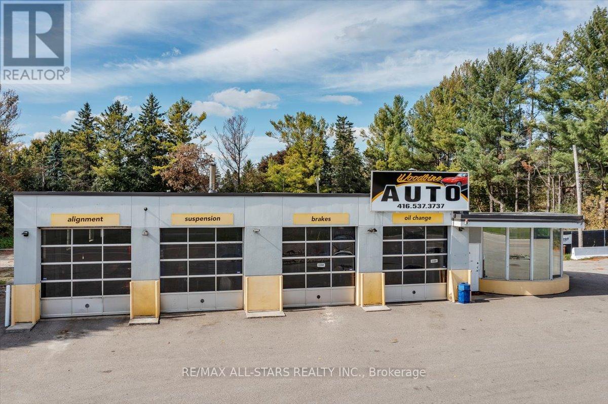 Standalone automotive commercial property on high-exposure Woodbine Ave with approx. 175 ft frontage and a versatile 0.799-acre lot. Featuring 4 drive-in bays, an extra-deep service bay, office/reception area, ample parking, and a secure fenced compound ideal for vehicle storage, contractor use, or equipment. Approx. 2,300-2,400 sq.ft. building with excellent visibility and signage opportunities. Flexible CV zoning permits automotive repair, sales, car wash, gas bar, retail, restaurant, studio, office, and more. Located minutes to Hwy 404, Aurora Rd, and Stouffville. Property was formerly used as a gas station with known soil contamination. A rare opportunity to secure a full standalone site with strong commercial potential, yard space, and long-term redevelopment flexibility. (id:4555)