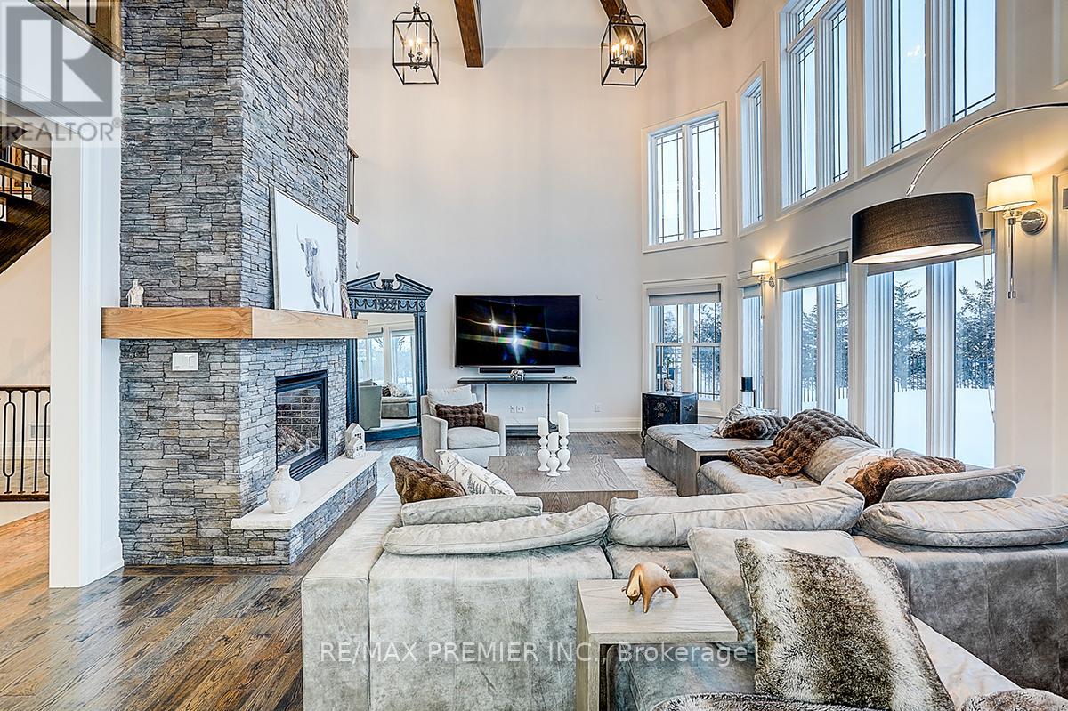 This is the one! Set on 13 acres of private land, this exceptional estate offers unmatched space, privacy, and lifestyle. Located in a prestigious area of Stouffville, just minutes from shopping, schools, amenities and a 10-minute drive to Highway 404. The home features a gourmet chef's kitchen, perfect for entertaining or daily culinary enjoyment. The soaring 2-story great room showcases a floor-to-ceiling 2 sided stone fireplace and a dramatic wall of windows overlooking the lush grounds. The primary suite serves as a serene retreat, complete with a built-in dressing room and a spa like ensuite. Originally 4 bedrooms, can be converted back. Designed for recreation and wellness, the residence includes a sauna and a spacious basement ideal for a games room, exercise area, and recreation space. Car enthusiasts will value the oversized 3-car garage with tons of space for storage. Geothermal heating and cooling provides savings on utilities. Outdoors, enjoy the heated in-ground saltwater pool or take a short walk to the horse paddocks with two run-in shelters. A seamless blend of leisure and equestrian lifestyle. A rare opportunity to own a private estate that combines refined living, luxury amenities, and expansive land in one exceptional property. (id:4555)