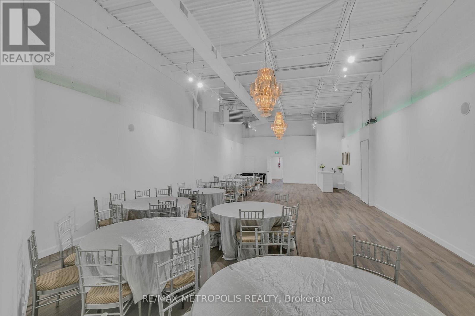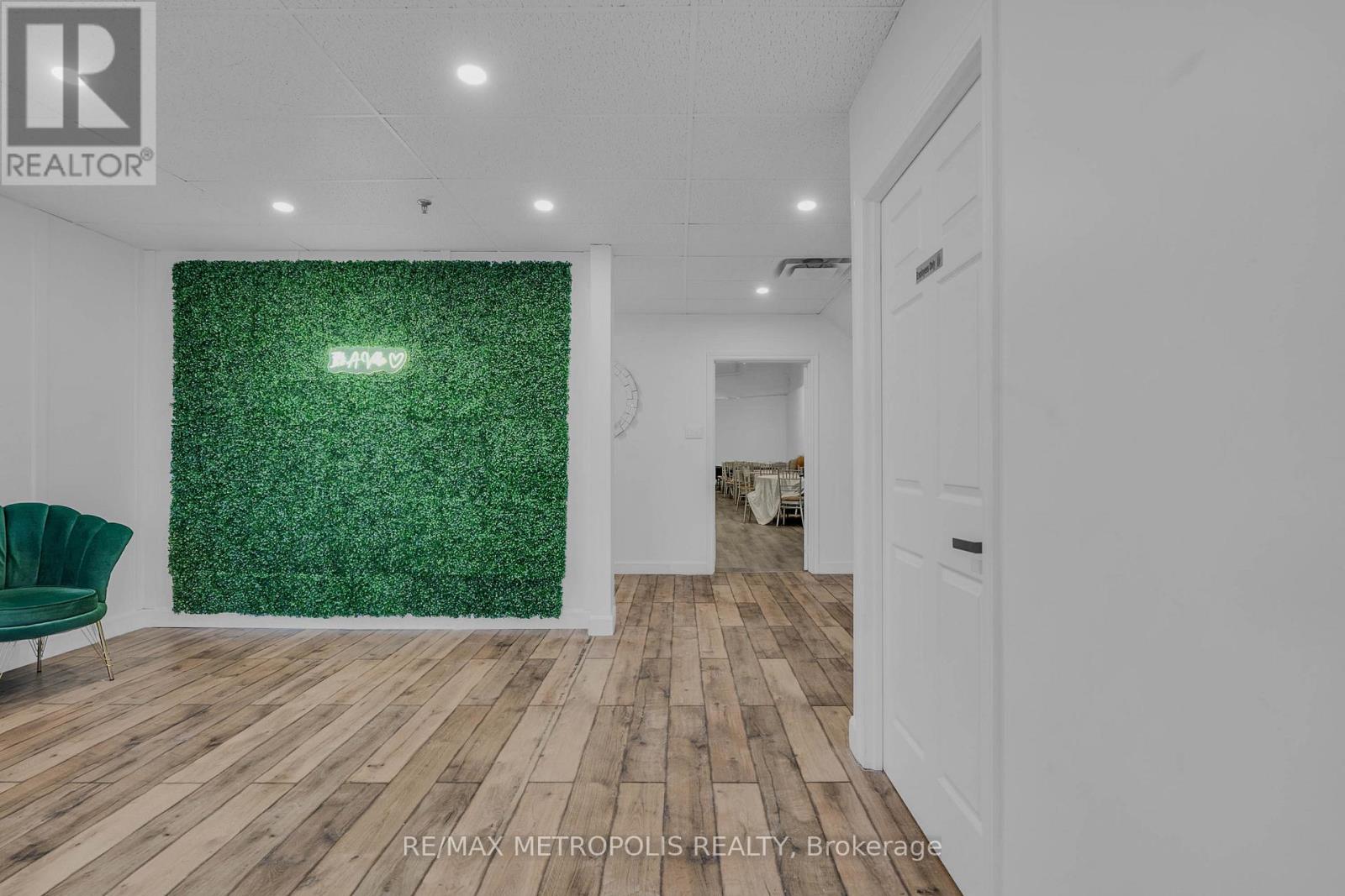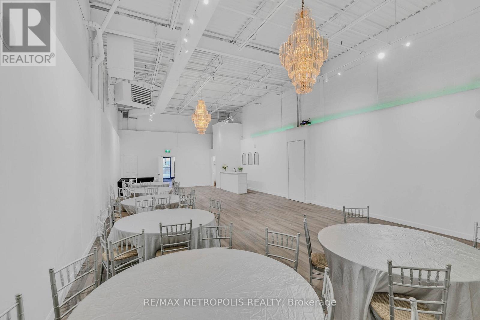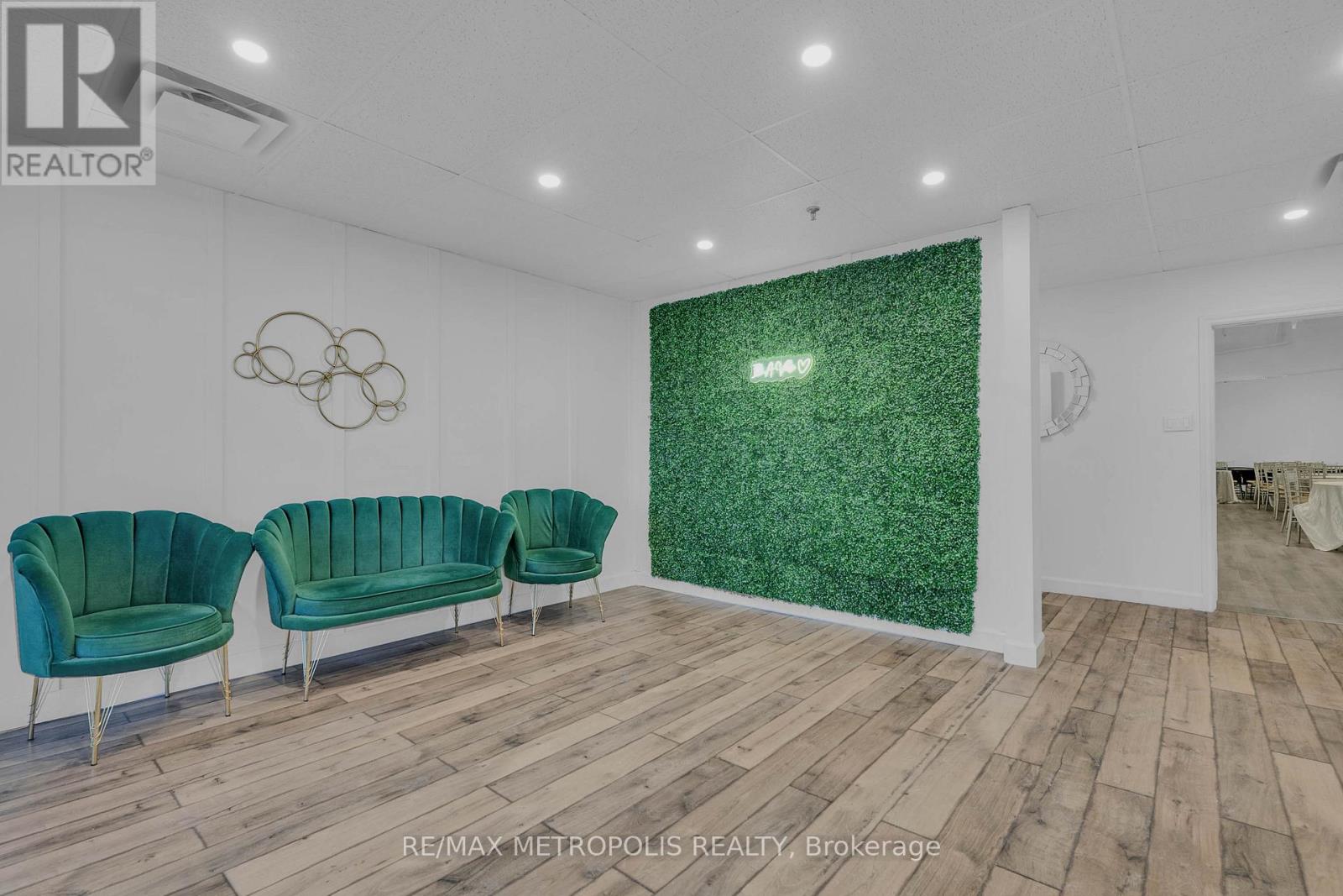Turnkey Event Space & Cash-Flowing Business for Sale - Vibe Event Space. Approximately 2,400 sq ft featuring a premium 1,400 sq ft main party room(Seating for 80) with 18-ft ceilings, engineered hardwood flooring, two grand ballroom chandeliers, eco-friendly track lighting, and a built-in surround sound system with Bluetooth connectivity. Includes a 10-ft wet bar with fridge, sink, and microwave, plus perimeter lighting ideal for upscale events. A stylish 400 sq ft front lobby with private entrance, faux grass feature wall, and eco-friendly potlights creates a strong first impression. Space includes two washrooms, storage room, and ample parking. Sale includes all furniture and equipment: 8 round 6-ft tables, 8 rectangular 6-ft tables, Chiavari chairs, mirrors and wall accents, sofas, and table coverings-allowing immediate operation with no additional capital required. Major upgrades completed: brand new furnace and air conditioner (June 2025) and new roof (August 2025). Business comes with confirmed 2026 bookings included in the sale, providing immediate forward cash flow. Additional income upside with four offices upstairs available for new owner to lease out as individual offices or to use themselves. Sale also includes website, email, phone number, and social media accounts for seamless brand continuity. Owner willing to provide training for an easy transition. Ideal for investors or owner-operators seeking a proven, turnkey event business with existing revenue and growth potential. Lease Approx $5368.27 for this year 2026 including Base Rent, TMI and HST. Low Utilities however based on usage. Water Included in Condo Fee Paid by Landlord. Lease has 2 Years left Plus option to renew for 3 years. (id:4555)