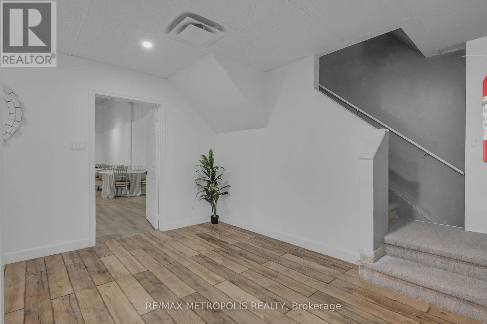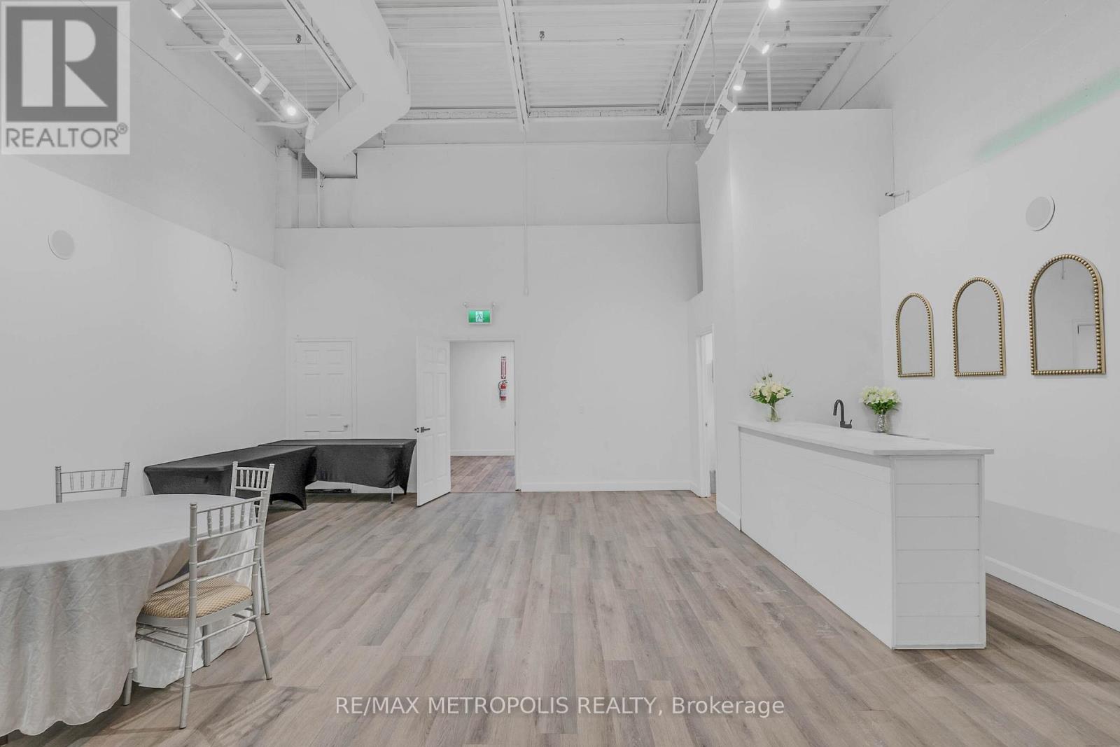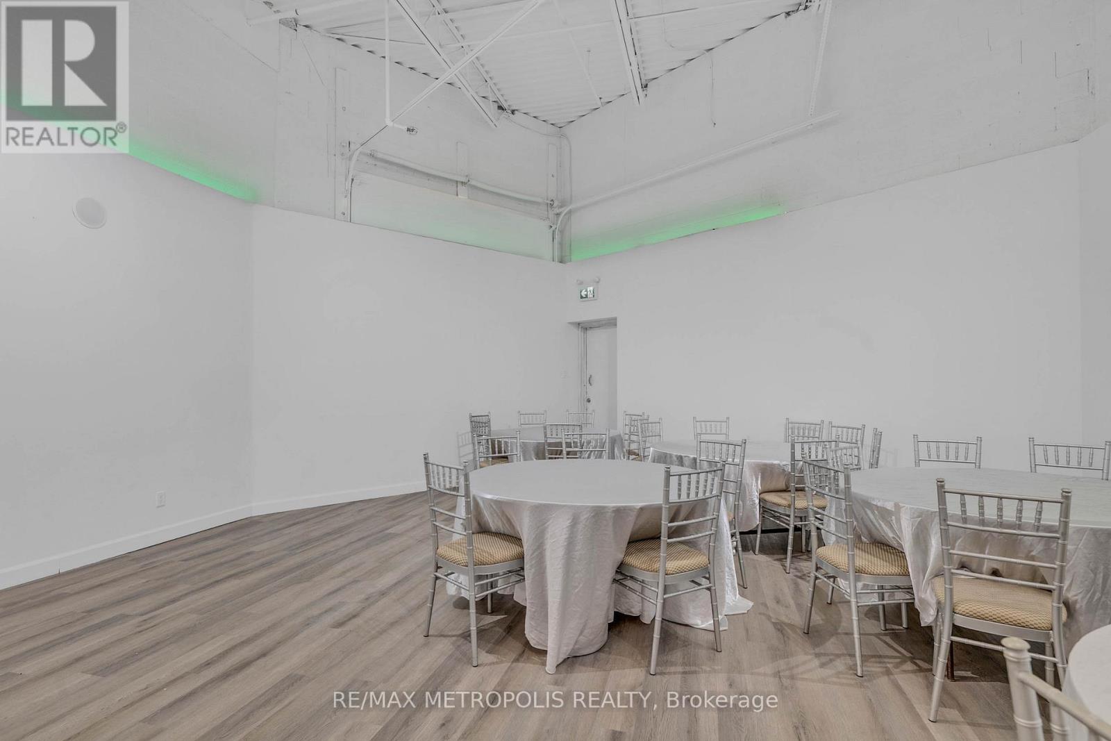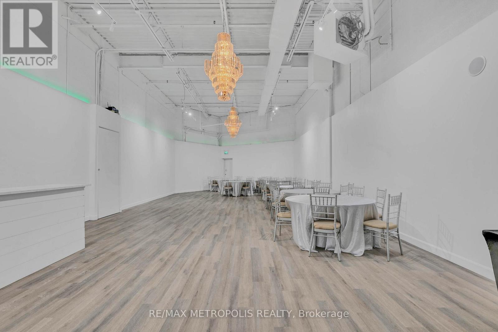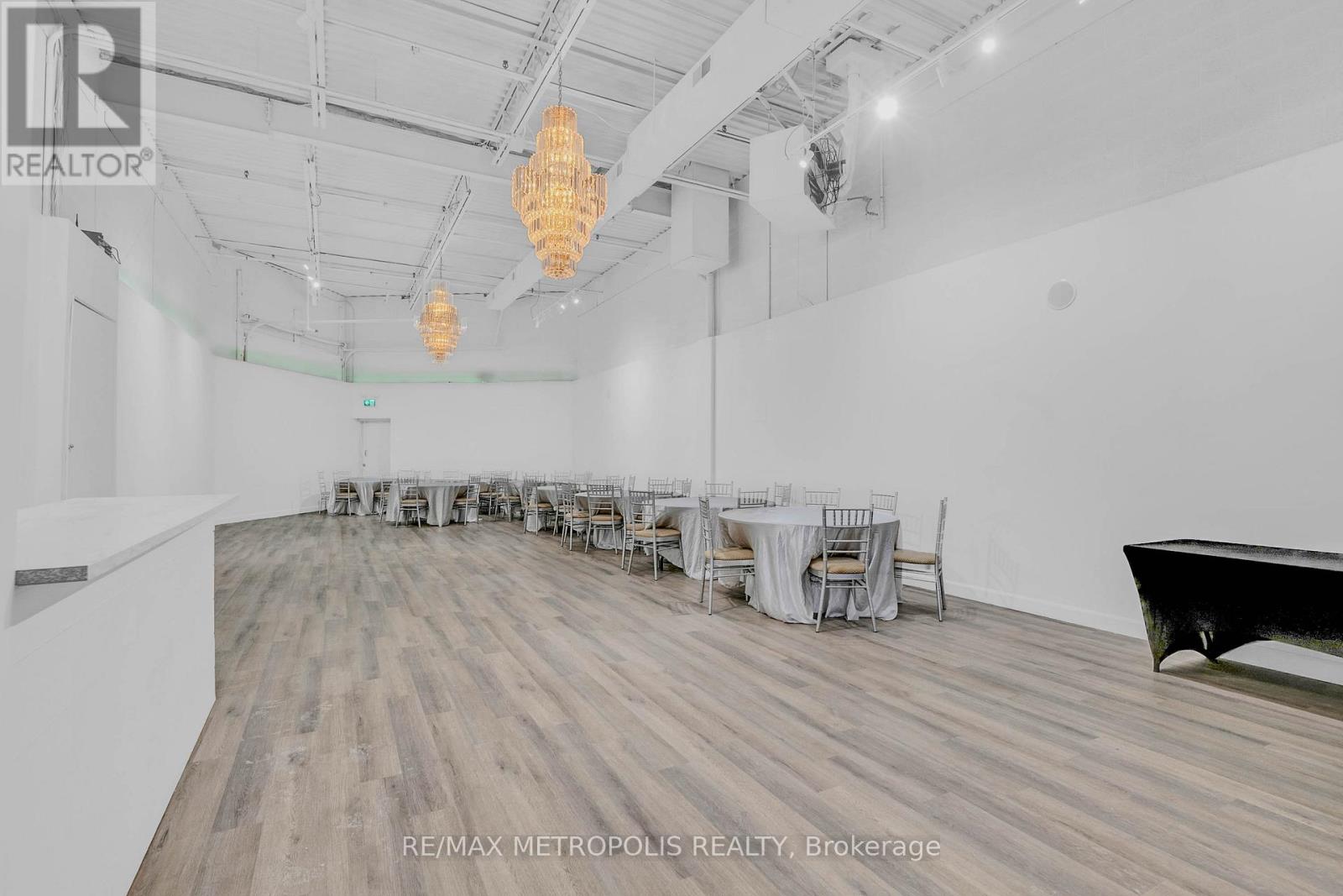 Turnkey Event Space & Cash-Flowing Business for Sale - Vibe Event Space. Approximately 2,400 sq ft featuring a premium 1,400 sq ft main party room(Seating for 80) with 18-ft ceilings, engineered hardwood flooring, two grand ballroom chandeliers, eco-friendly track lighting, and a built-in surround sound system with Bluetooth connectivity. Includes a 10-ft wet bar with fridge, sink, and microwave, plus perimeter lighting ideal for upscale events. A stylish 400 sq ft front lobby with private entrance, faux grass feature wall, and eco-friendly potlights creates a strong first impression. Space includes two washrooms, storage room, and ample parking. Sale includes all furniture and equipment: 8 round 6-ft tables, 8 rectangular 6-ft tables, Chiavari chairs, mirrors and wall accents, sofas, and table coverings-allowing immediate operation with no additional capital required. Major upgrades completed: brand new furnace and air conditioner (June 2025) and new roof (August 2025). Business comes with confirmed 2026 bookings included in the sale, providing immediate forward cash flow. Additional income upside with four offices upstairs available for new owner to lease out as individual offices or to use themselves. Sale also includes website, email, phone number, and social media accounts for seamless brand continuity. Owner willing to provide training for an easy transition. Ideal for investors or owner-operators seeking a proven, turnkey event business with existing revenue and growth potential. Lease Approx $5368.27 for this year 2026 including Base Rent, TMI and HST. Low Utilities however based on usage. Water Included in Condo Fee Paid by Landlord. Lease has 2 Years left Plus option to renew for 3 years. (id:4555)