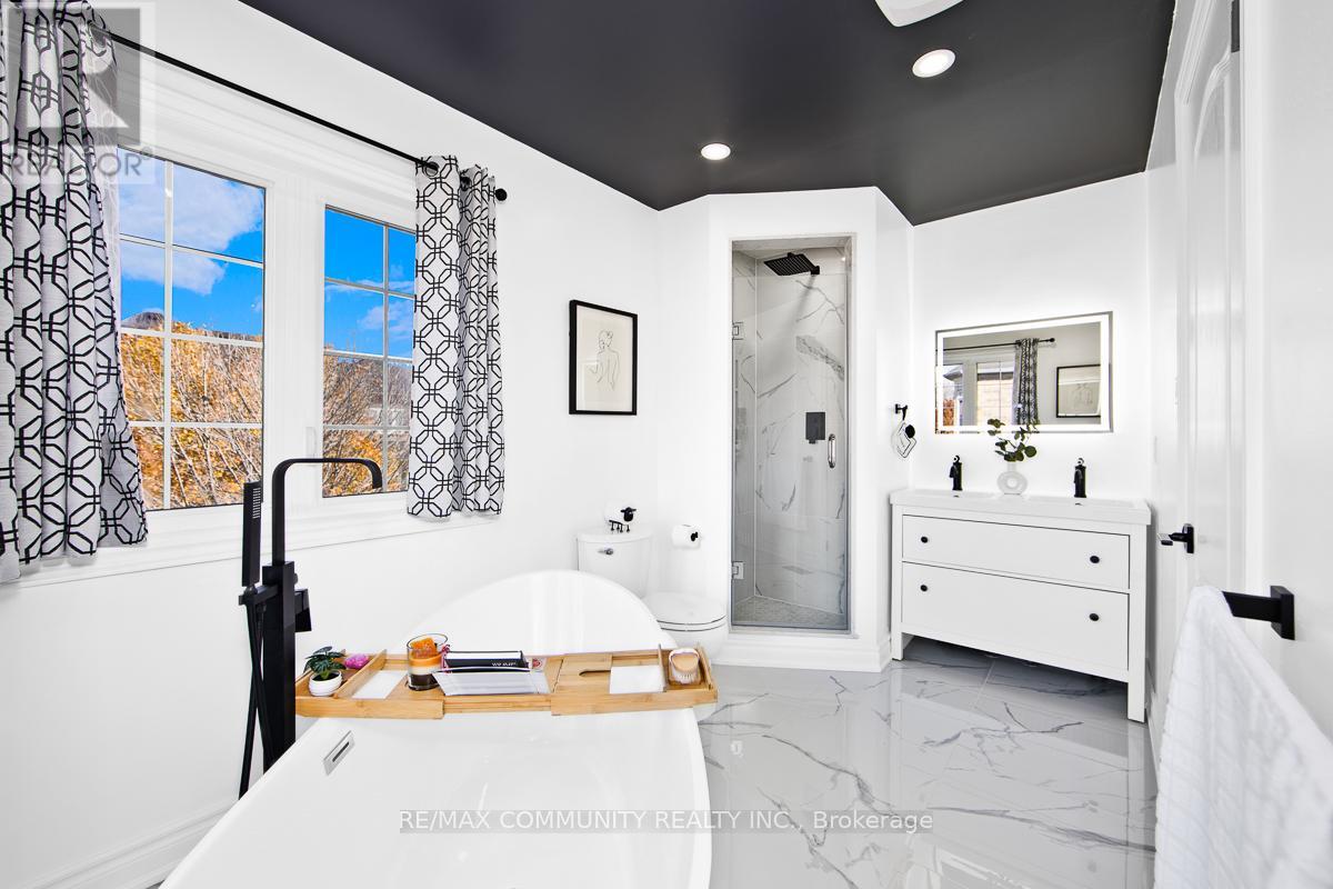 Stunning Detached Home in High-Demand Stouffville! This beautifully upgraded home offers a professionally finished basement, with over $200K spent in recent renovations. Featuring 4 bedrooms and 4 bathrooms, 9-ft smooth ceilings, hardwood floors throughout (vinyl in basement), LED and pot lights in most areas, a cozy gas fireplace in the family room, and a modern kitchen with quartz countertops, backsplash, and stainless steel appliances. All bathrooms have been fully upgraded with quartz counters and modern finishes. The primary suite offers a large closet and a luxurious 5-piece ensuite with a soaker tub, double vanity, and rainfall shower. The finished basement includes a 4th bedroom, 4-piece bath, and vinyl flooring perfect for extended family or guests. Outside boasts interlocking stonework, a wrap-around veranda, an oversized garage, parking for 3 cars, and a pool-sized lot. Located close to top-rated schools, Leisure Centre, Memorial Park, Stouffville GO, YRT, Highways 404 & 407, shopping, and dining. You don't want to miss this one. It will truly wow you! (id:4555)