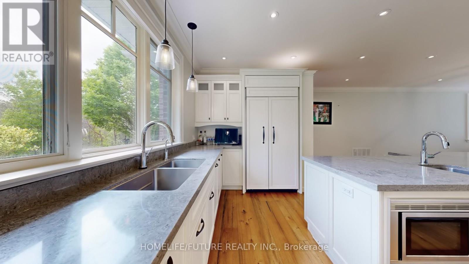 Welcome To Your Private Woodland Oasis, This Beautifully Renovated Home With A Spacious Extended Driveway Offers 11 Parking Spaces, Ideal For Hosting Family And Friends. Step Inside To Discover A Cozy Family Room Complete With A Fireplace And Serene Views Of The Backyard. Pot Lights Throughout The Main Level Add Warmth And Modern Flair. The Heart Of The Home Is The Open-Concept Chefs Kitchen, Featuring A Large Center Island, High-End Finishes, And A Seamless Flow Into The Dining And Family Rooms, All Overlooking A Stone Patio And Stunning Forest Views. Upstairs, You'll Find Spacious Bedrooms, Each Filled With Natural Light Through Large Windows. The Home Features Wide Plank Elm Floors And Modern Bathrooms, Designed For Both Comfort And Style. A Nanny Or Teenage Suite On The Ground Floor Offers Flexible Living Arrangements, While The Lower Level Includes A Second Family Room Perfect For Entertaining Or Relaxing. An Oversized Mudroom With A Separate Entrance And Ample Storage Adds Everyday Convenience. The Grounds Are Beautifully Landscaped. (id:4555)