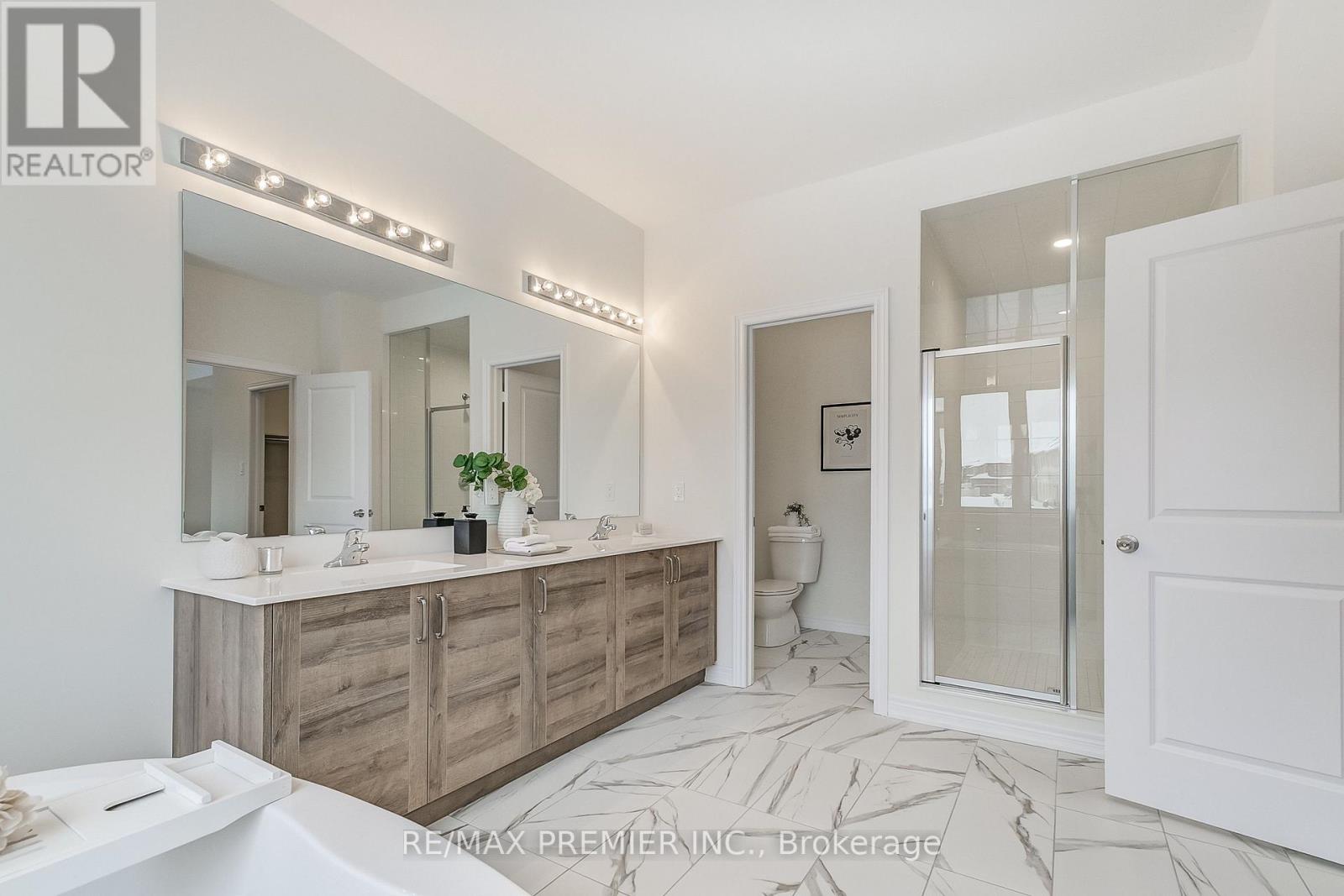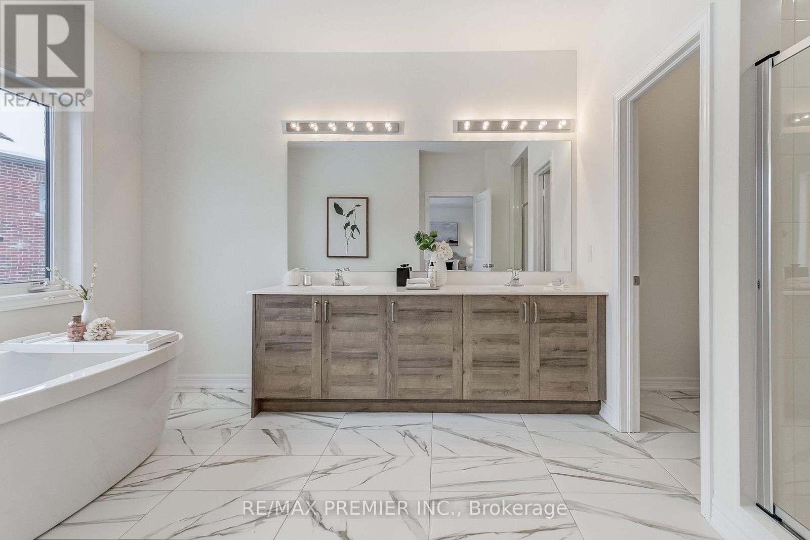 Welcome to this exceptional 5 bedroom, 3.5 bathroom detached residence, perfectly positioned on a premium 40-ft corner lot with no sidewalk - maximizing parking, privacy and curb appeal. Designed with both elegance and functionality in mind, this home showcases soaring 10-foot ceilings on the main level and 9-foot ceilings upstairs, creating a grand and airy atmosphere throughout. Expansive windows flood the space with natural light, highlighting the rich hardwood floors and thoughtfully designed open-concept layout ideal for modern family living. At the heart of the home is a stunning custom chef's kitchen featuring premium KitchenAid stainless steel appliances, upgraded cabinetry and a generous breakfast area overlooking the backyard. Whether hosting intimate dinners or large gatherings, the seamless flow into the inviting family room with fireplace makes entertaining or everyday comfort. Upstairs, the luxurious primary retreat offers dual walk-in closets and a spa-inspired 5 piece ensuite complete with a freestanding soaker tub and glass-enclosed shower. Four additional spacious bedrooms and the convenience of second floor laundry complete the upper level. Location in one of Stouffville's most desirable communities, this beautifully appointed corner lot offers space, style and sophistication all in one. A rare opportunity you won't want to miss. (id:4555)