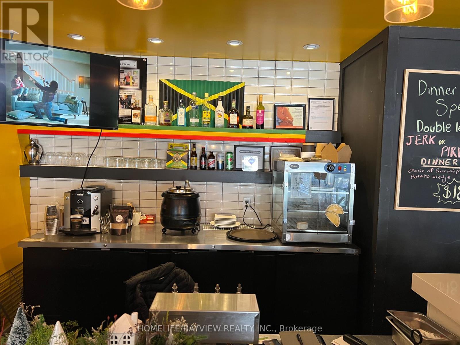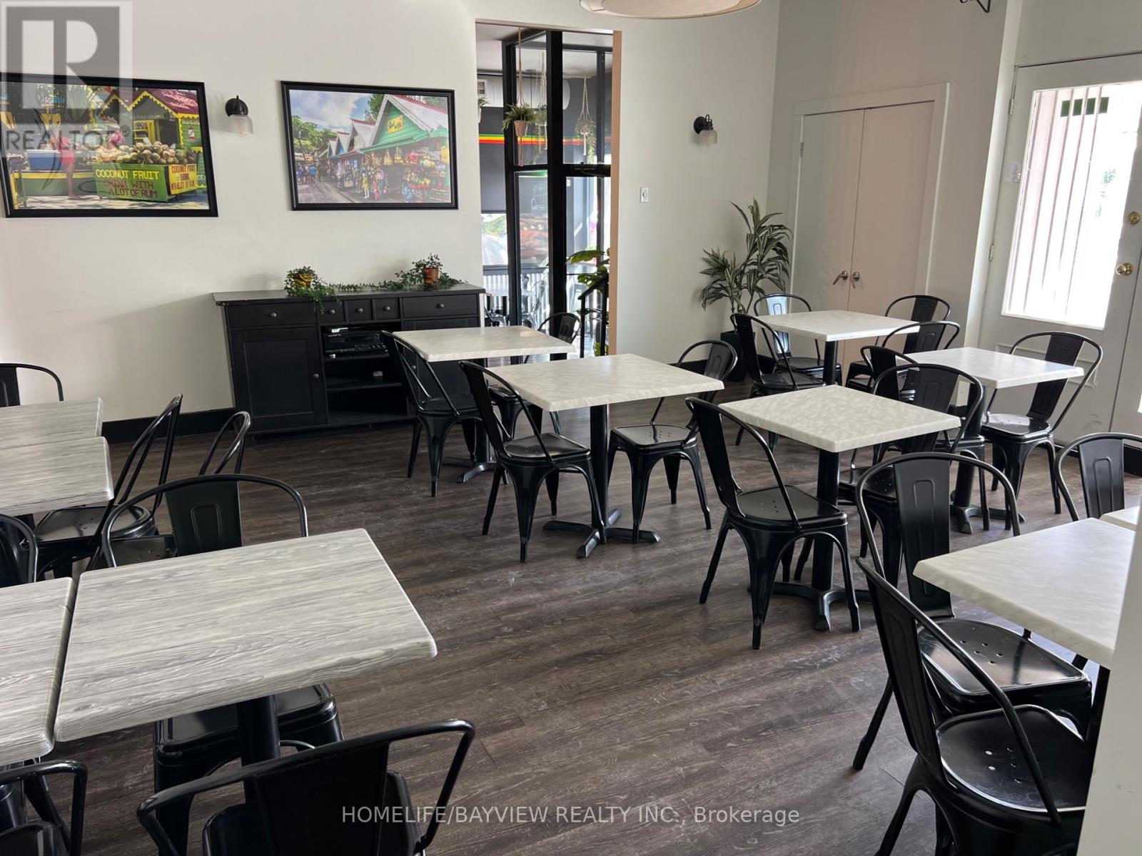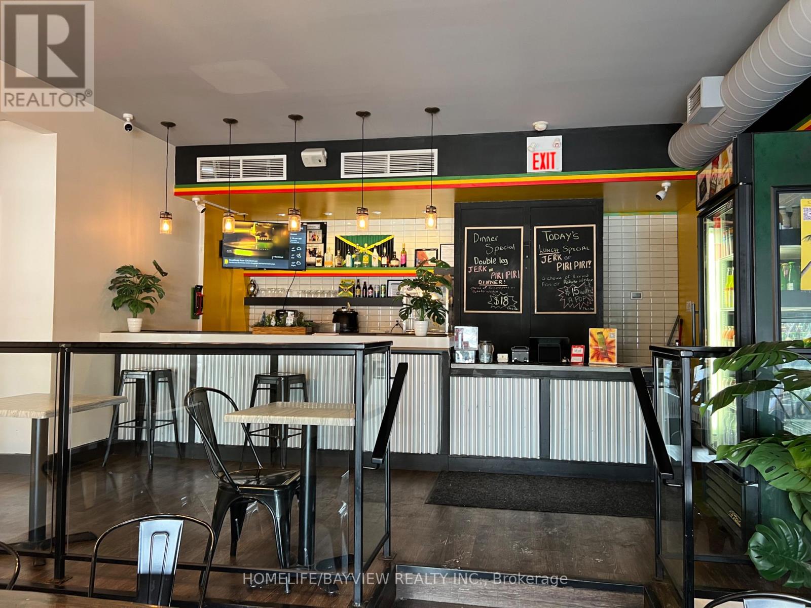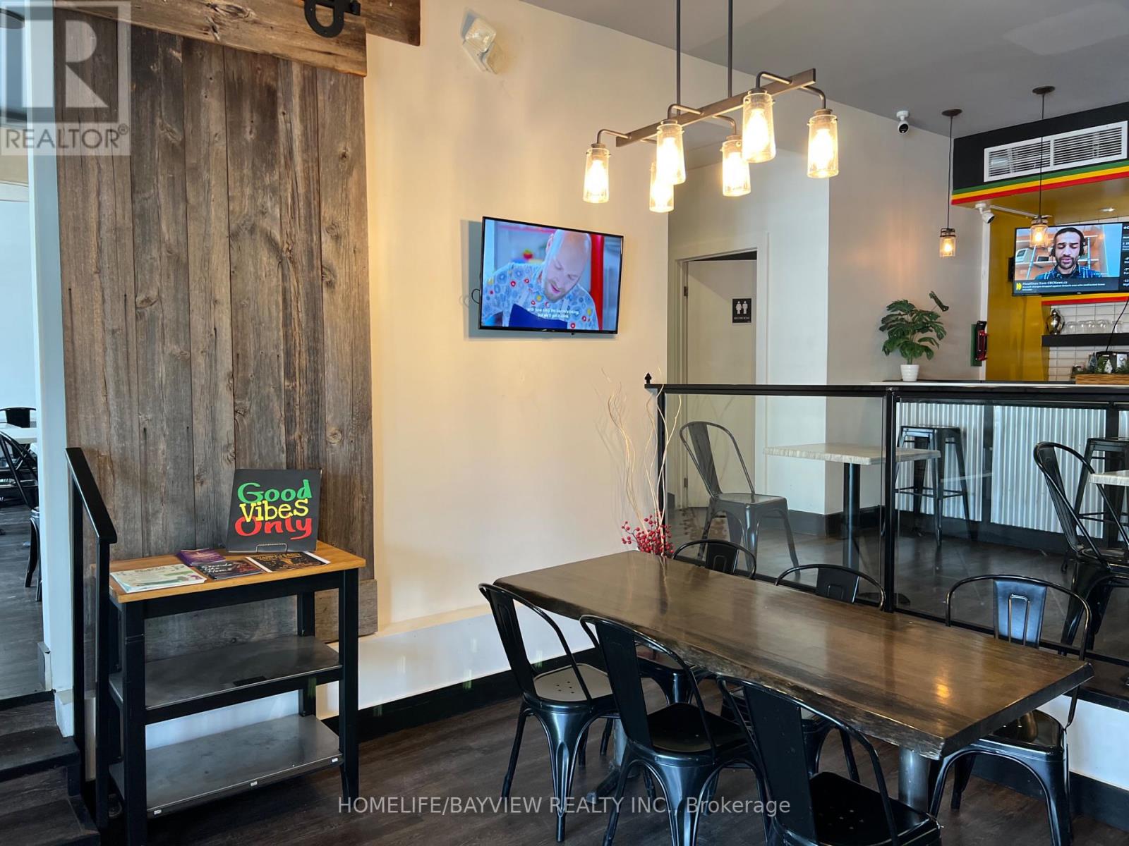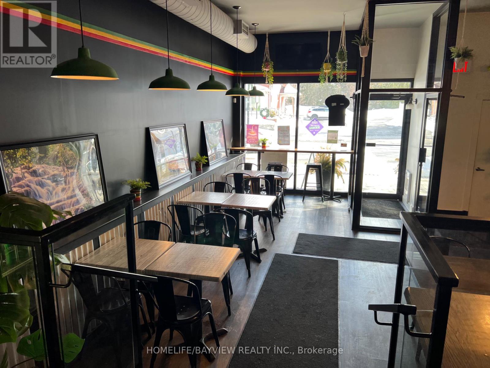 Amazing opportunity to take over this established restaurant located on popular Main St in downtown Stouffville. Fully-equipped restaurant and bar complete with grill, exhaust hood, prep tables, freezers, etc. L.L.B.O. for 56 seats. Currently serving best-tasting Jamaican BBQ cuisine including jerk chicken. Could easily be converted to any type of cuisine. Bright, spacious, & modern decor. Includes 700 SF basement with storage, office, & walk-in cooler. Lease until 2027 + 5 years option to renew. Rent $4844/month includes TMI & HST. Strong & steady sales. Owner will train. Don't miss this fantastic opportunity to have a profitable, turn-key restaurant in a high-demand area. (id:4555)