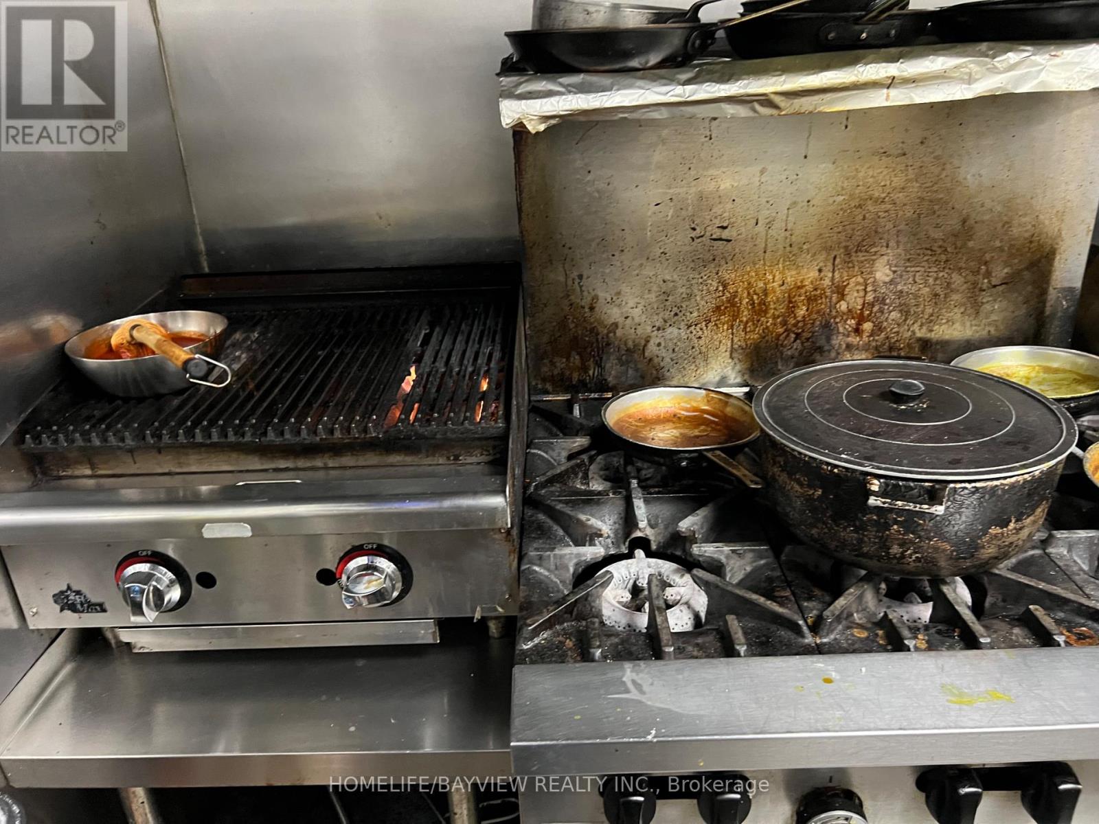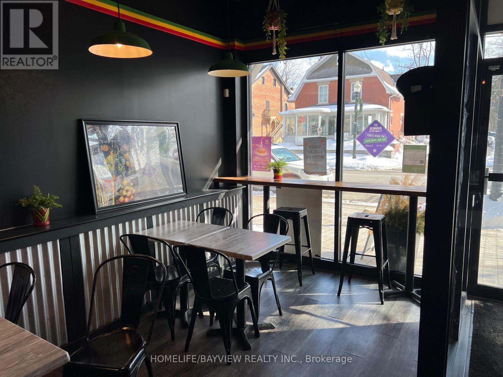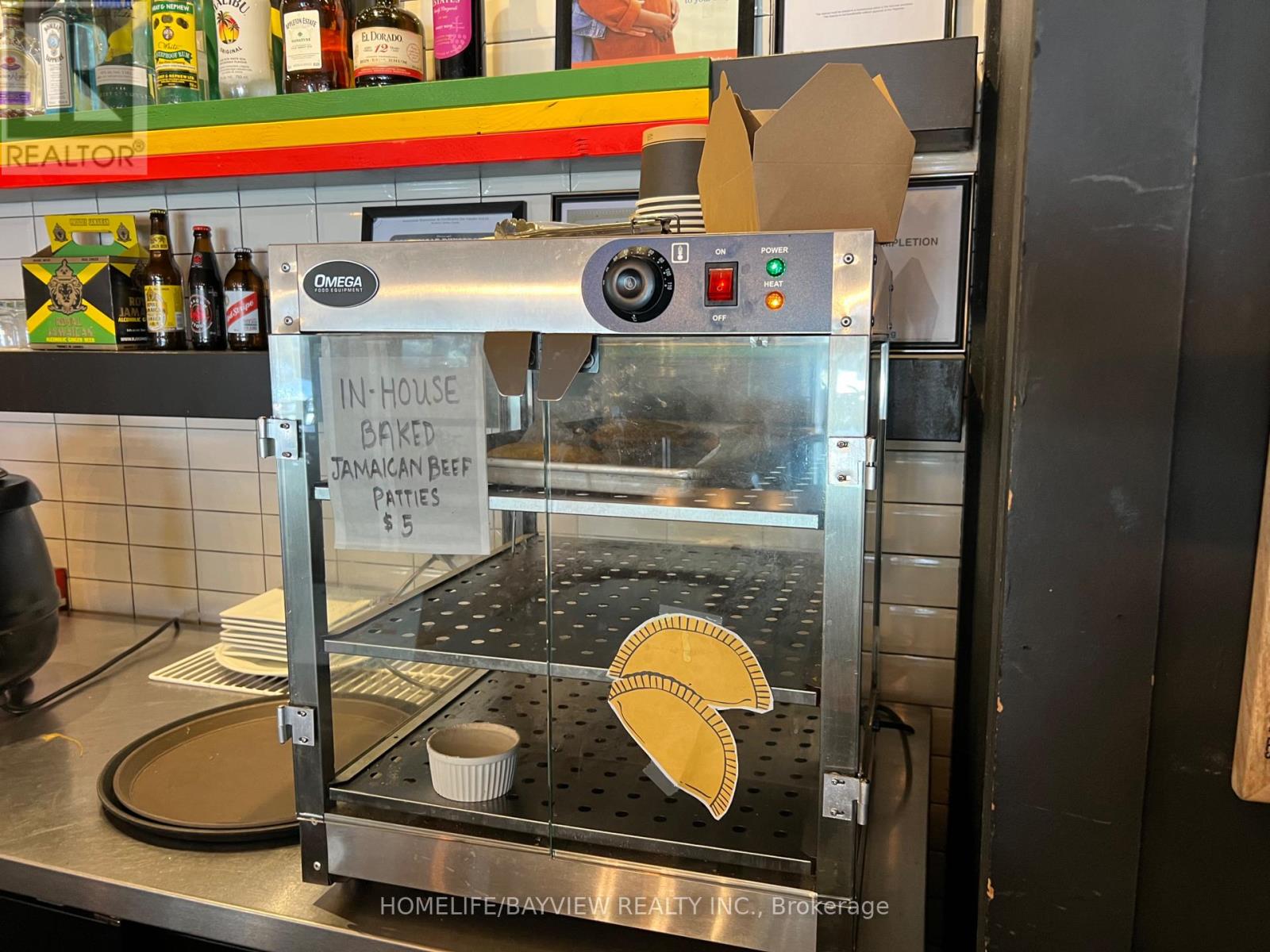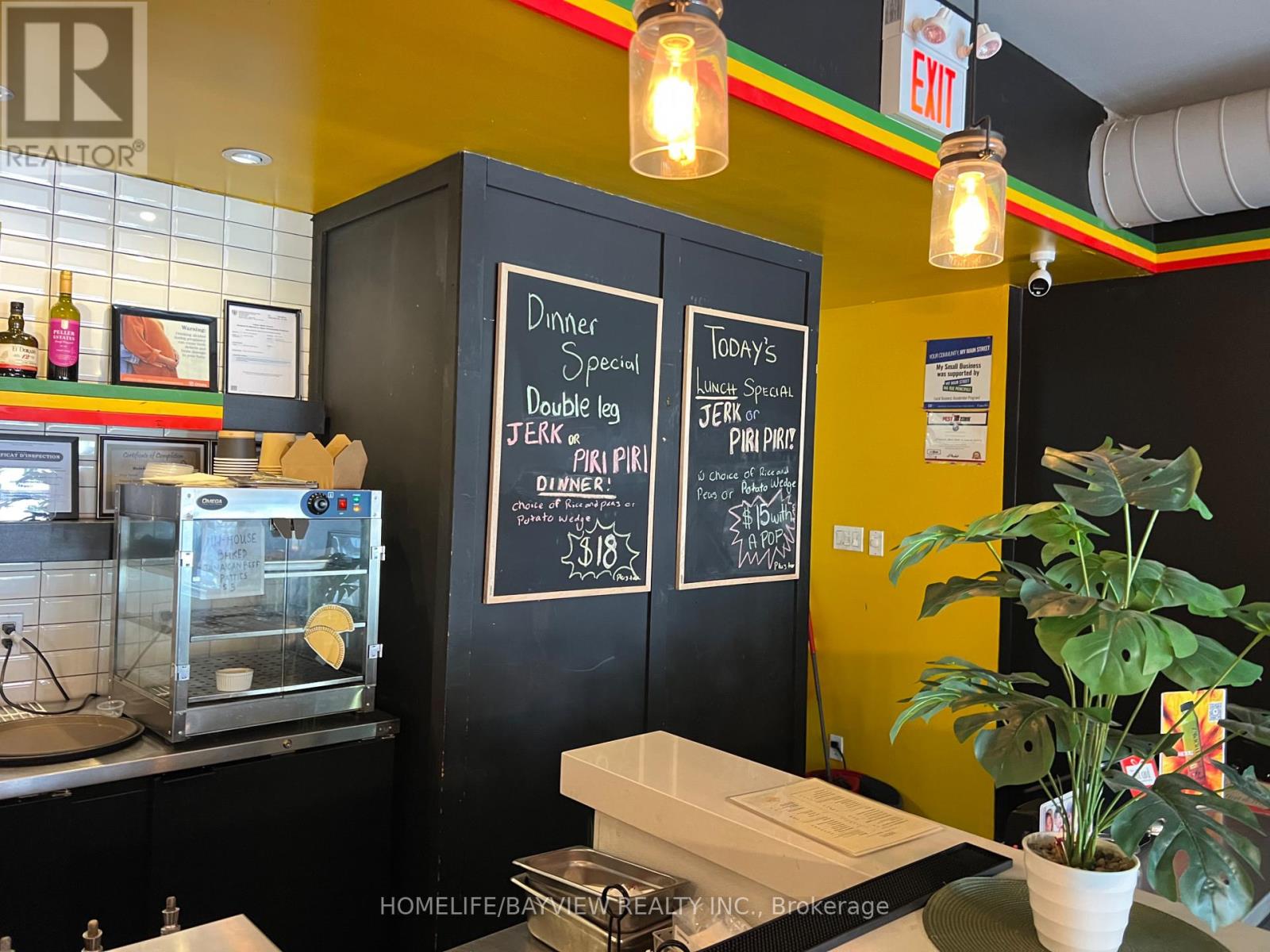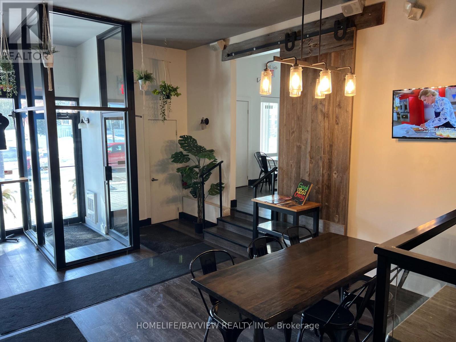 Amazing opportunity to take over this established restaurant located on popular Main St in downtown Stouffville. Fully-equipped restaurant and bar complete with grill, exhaust hood, prep tables, freezers, etc. L.L.B.O. for 56 seats. Currently serving best-tasting Jamaican BBQ cuisine including jerk chicken. Could easily be converted to any type of cuisine. Bright, spacious, & modern decor. Includes 700 SF basement with storage, office, & walk-in cooler. Lease until 2027 + 5 years option to renew. Rent $4844/month includes TMI & HST. Strong & steady sales. Owner will train. Don't miss this fantastic opportunity to have a profitable, turn-key restaurant in a high-demand area. (id:4555)