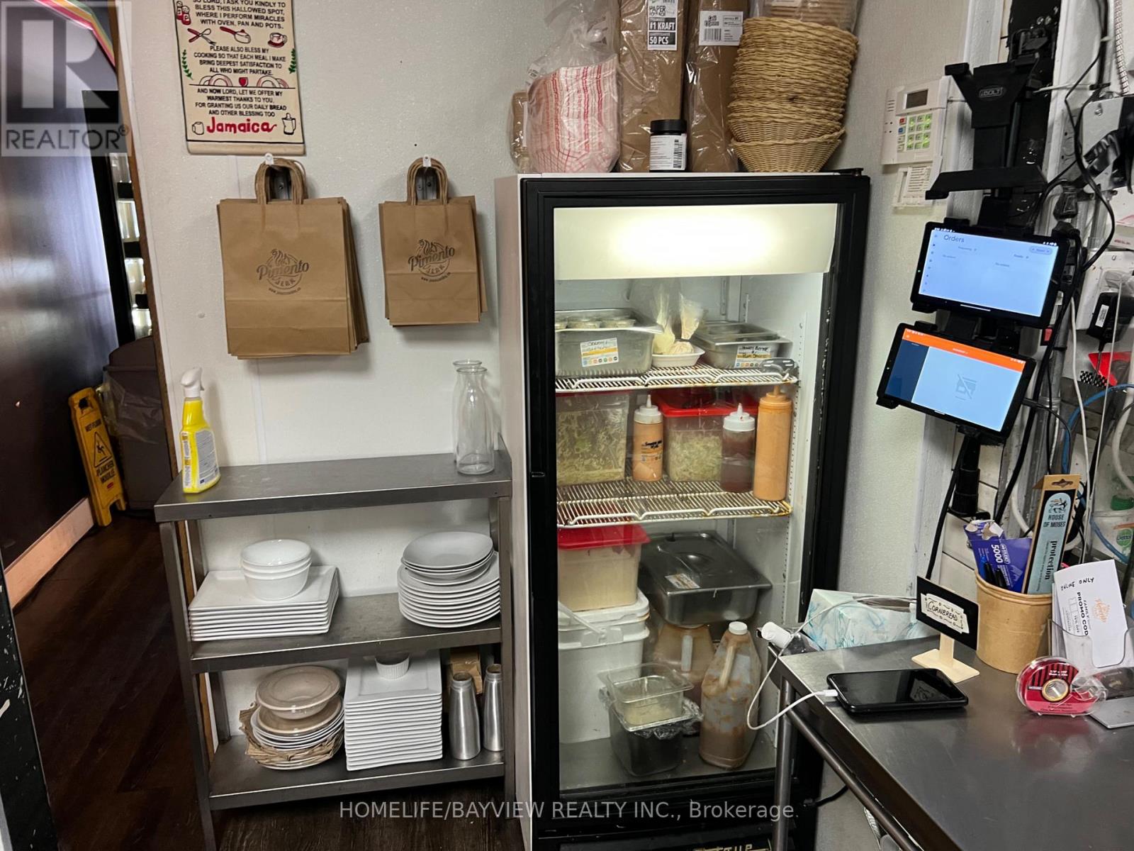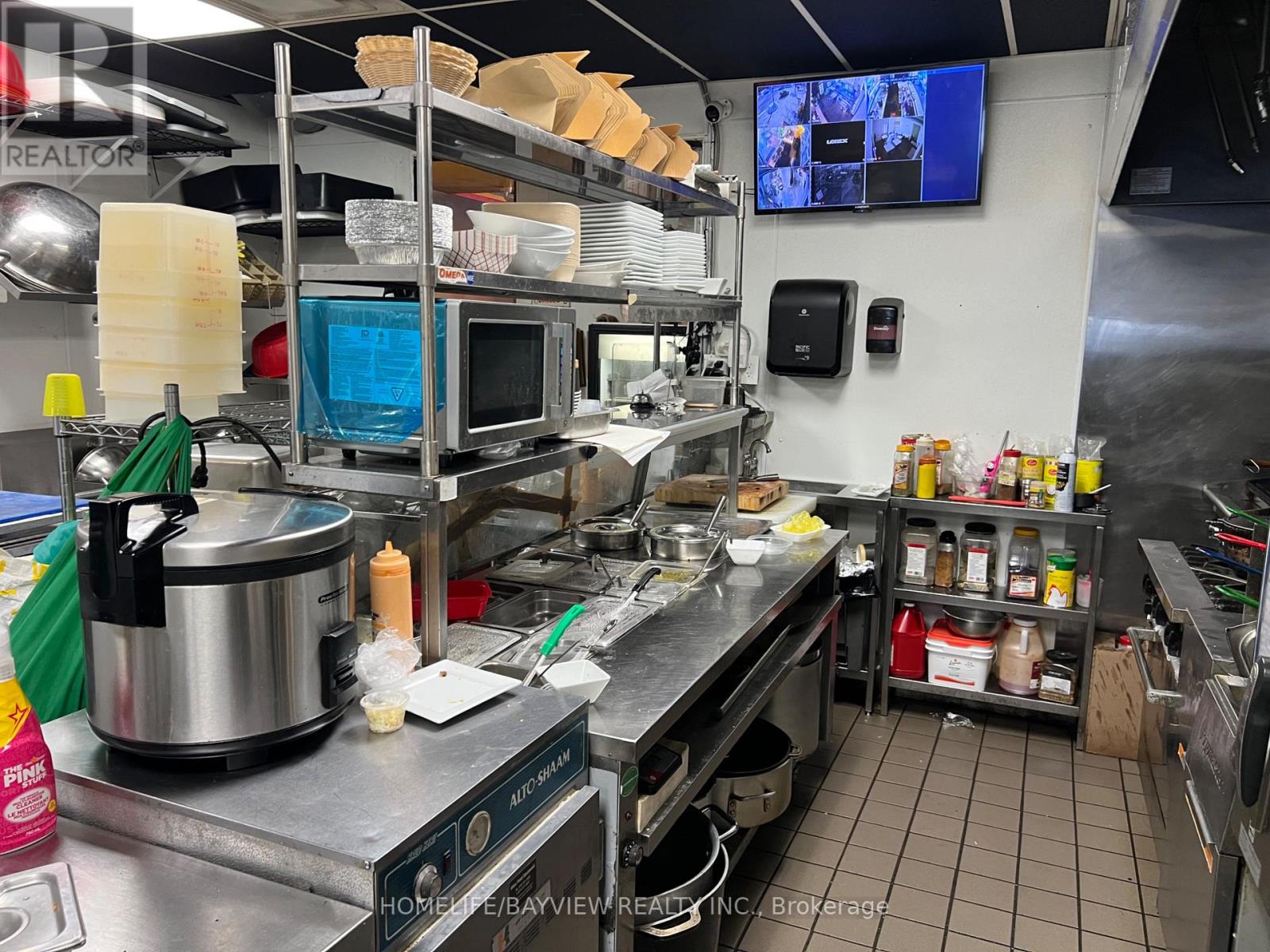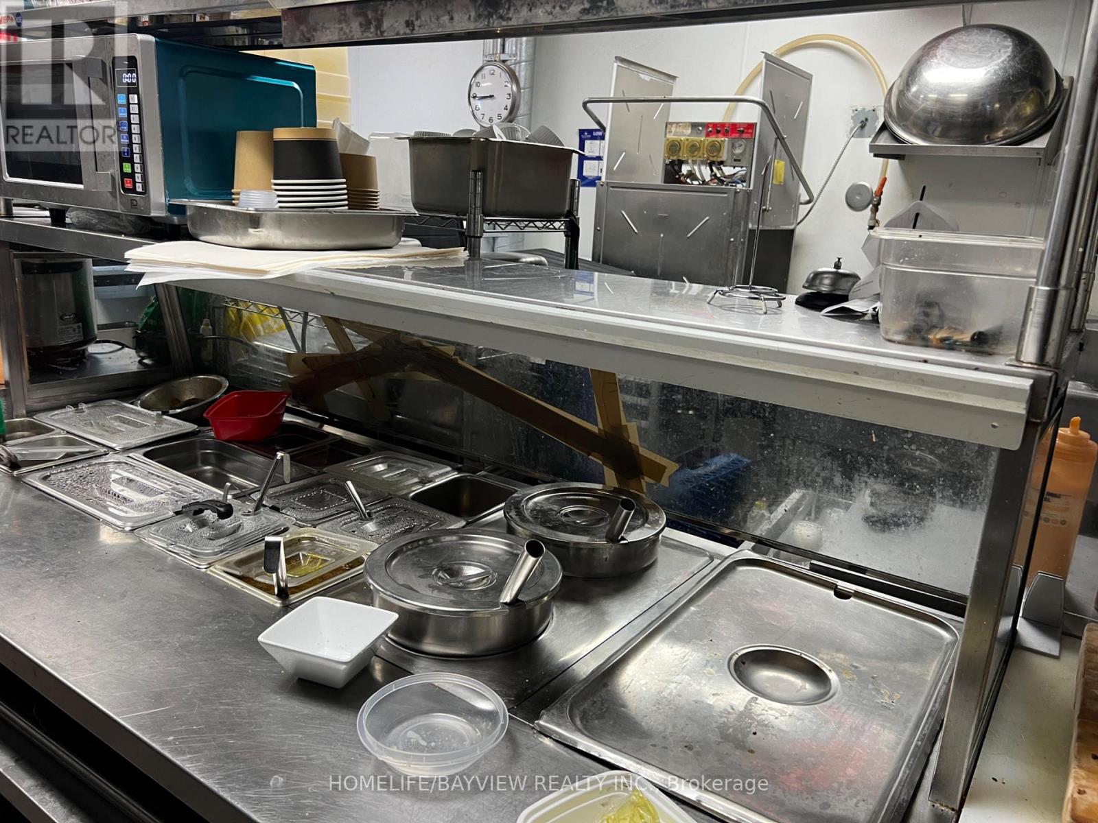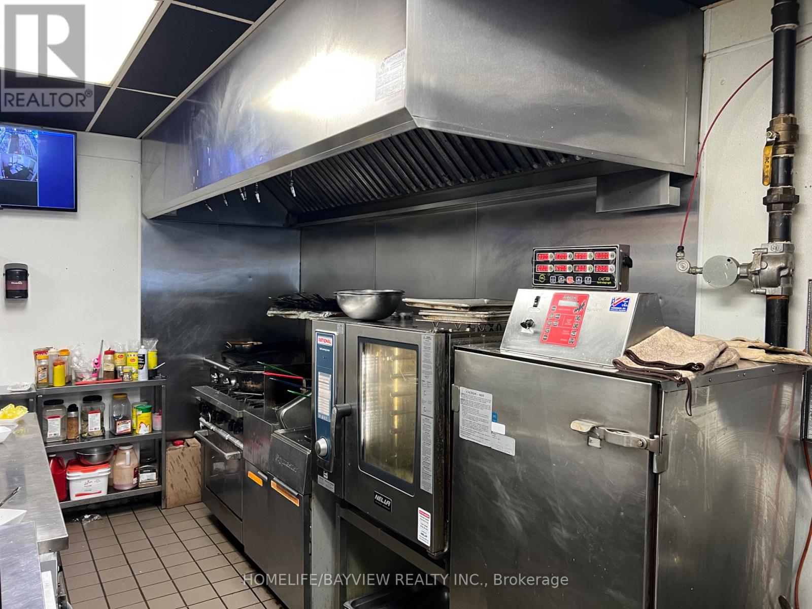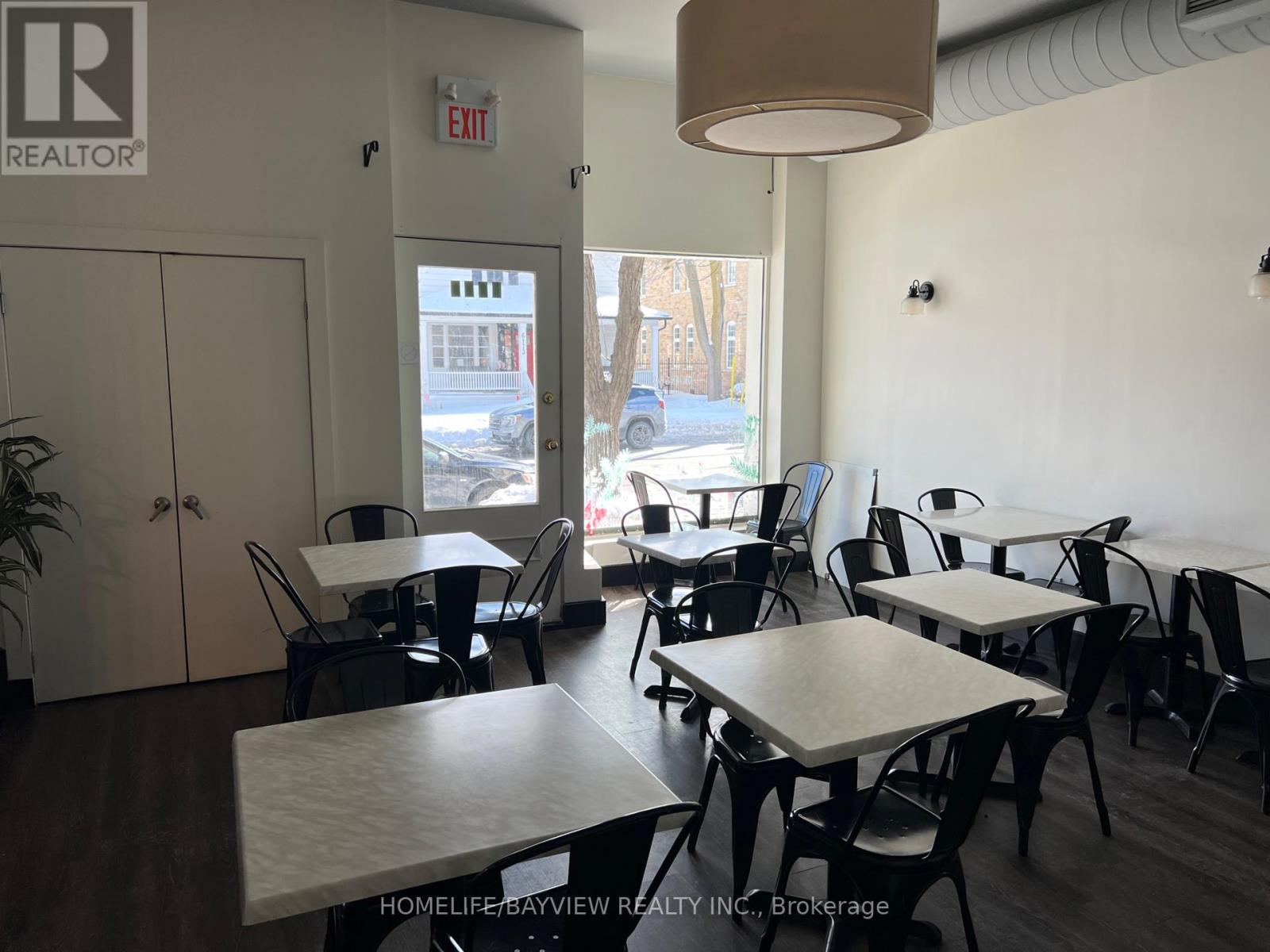 Amazing opportunity to take over this established restaurant located on popular Main St in downtown Stouffville. Fully-equipped restaurant and bar complete with grill, exhaust hood, prep tables, freezers, etc. L.L.B.O. for 56 seats. Currently serving best-tasting Jamaican BBQ cuisine including jerk chicken. Could easily be converted to any type of cuisine. Bright, spacious, & modern decor. Includes 700 SF basement with storage, office, & walk-in cooler. Lease until 2027 + 5 years option to renew. Rent $4844/month includes TMI & HST. Strong & steady sales. Owner will train. Don't miss this fantastic opportunity to have a profitable, turn-key restaurant in a high-demand area. (id:4555)